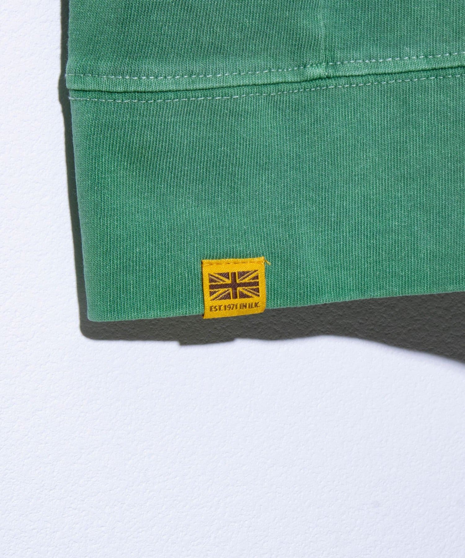 スウェットディテールを意識した裾リブにピグメント加工がいい雰囲気をプラスしたルーズシルエットのリラックスサイジング。