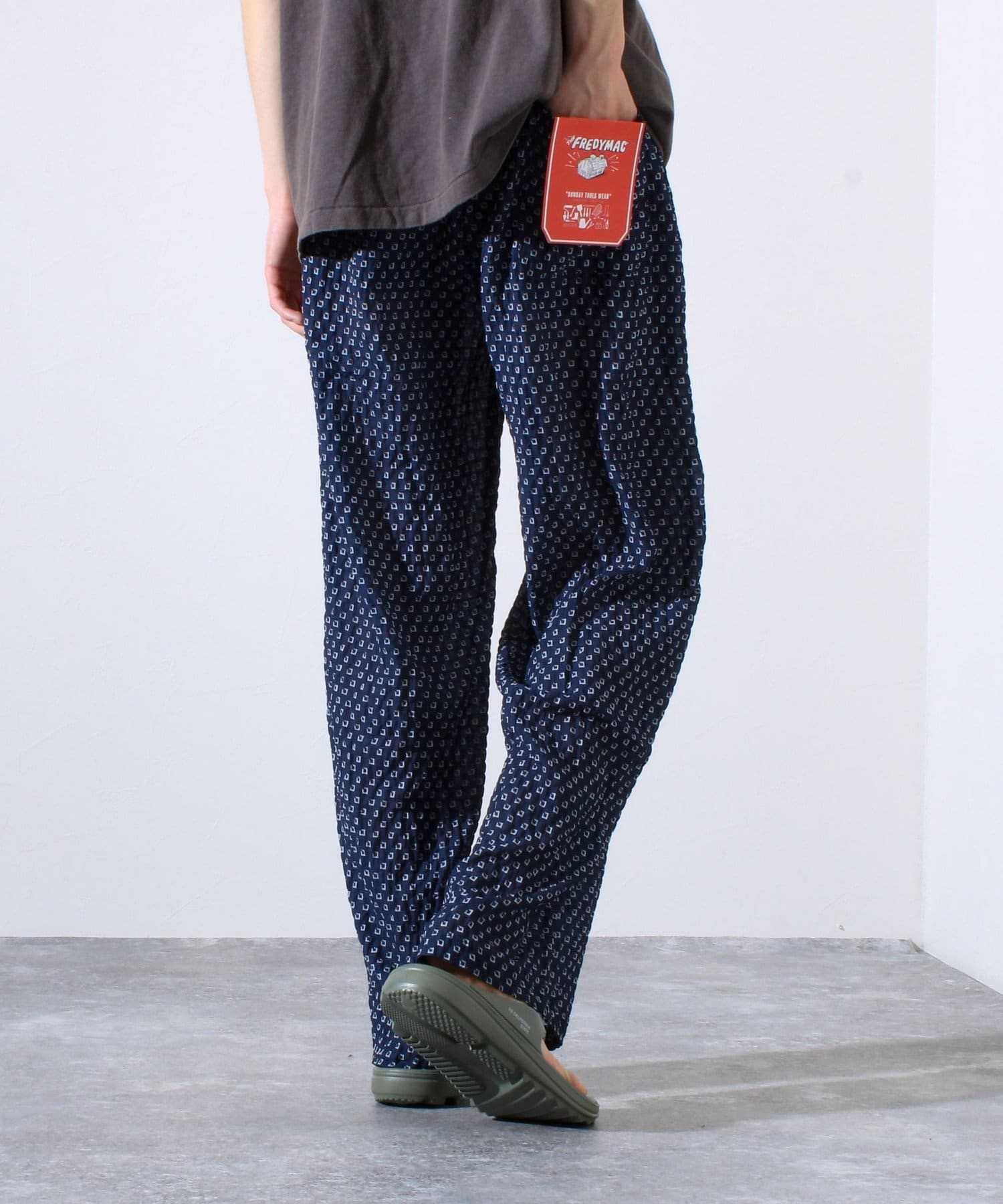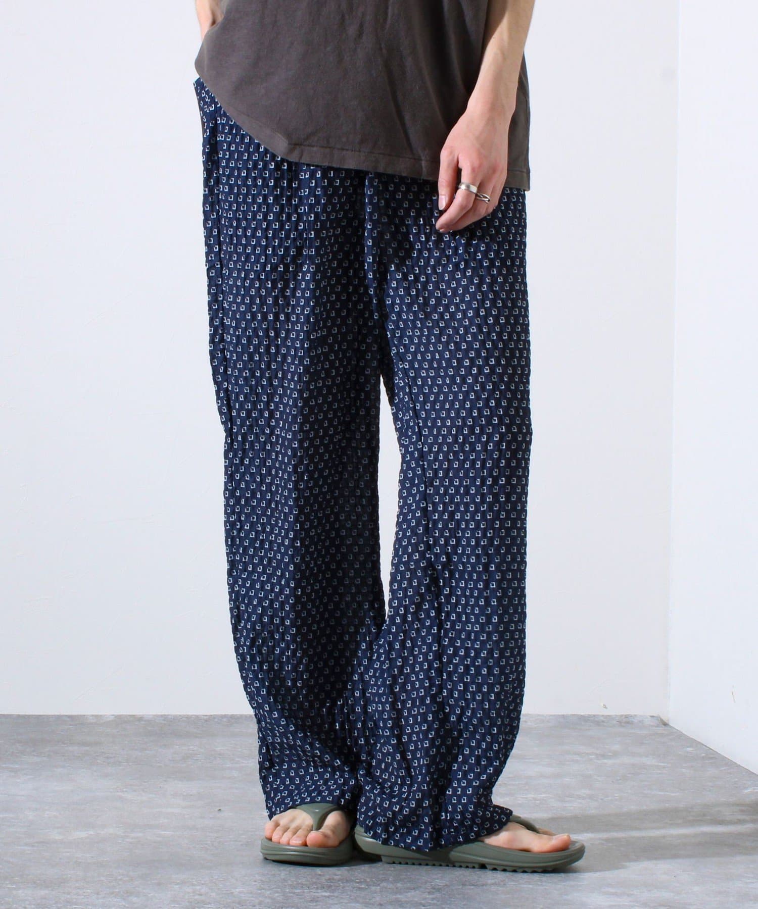 【FREDYMAC】シアサッカー素材 総柄 イージーパンツ