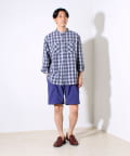 ②チェックシャツ&革靴で“はずし”を効かせた休日スタイルに
