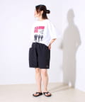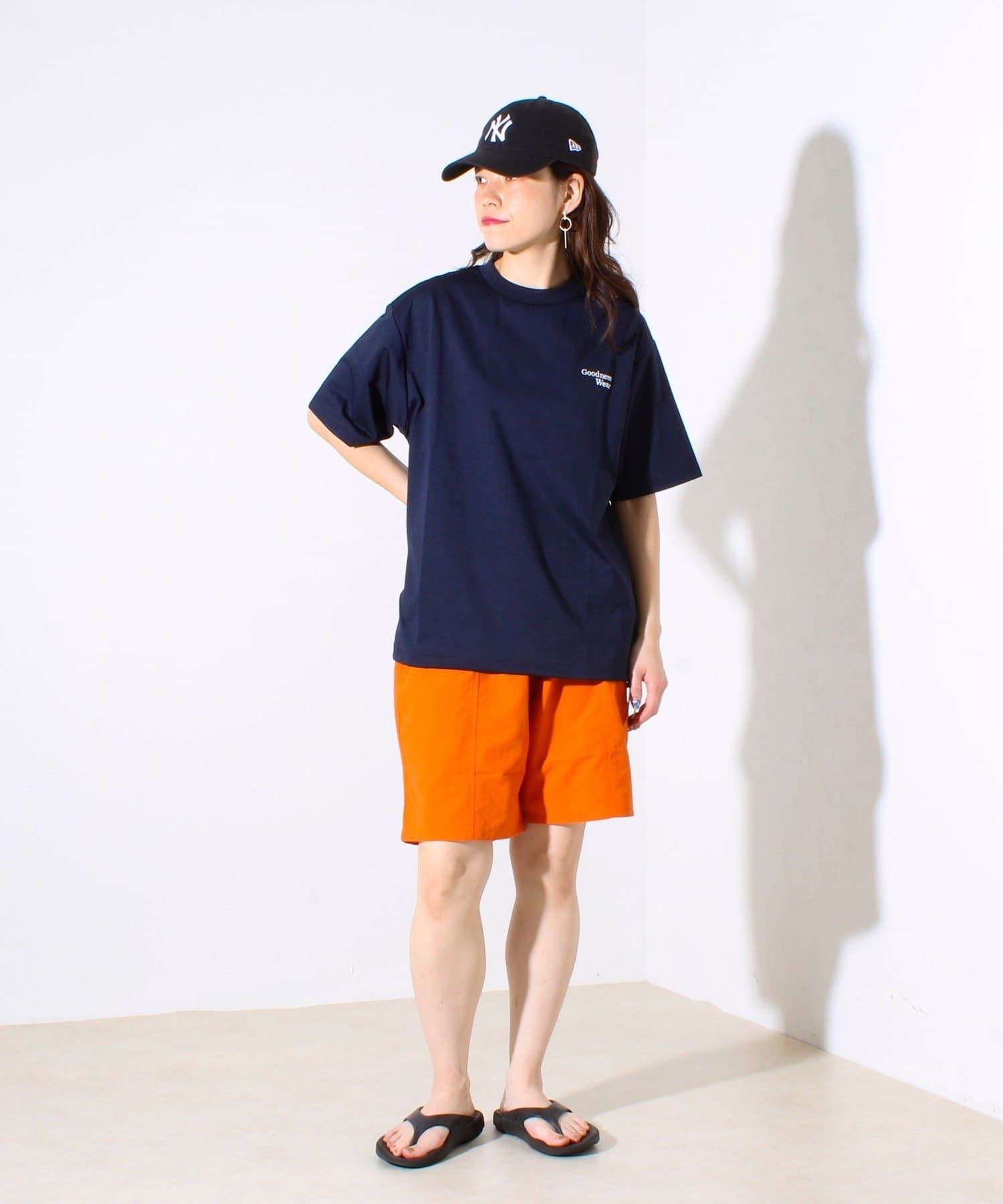 ①ロゴTシャツ+ビーサンで抜け感あるワンマイルコーデ