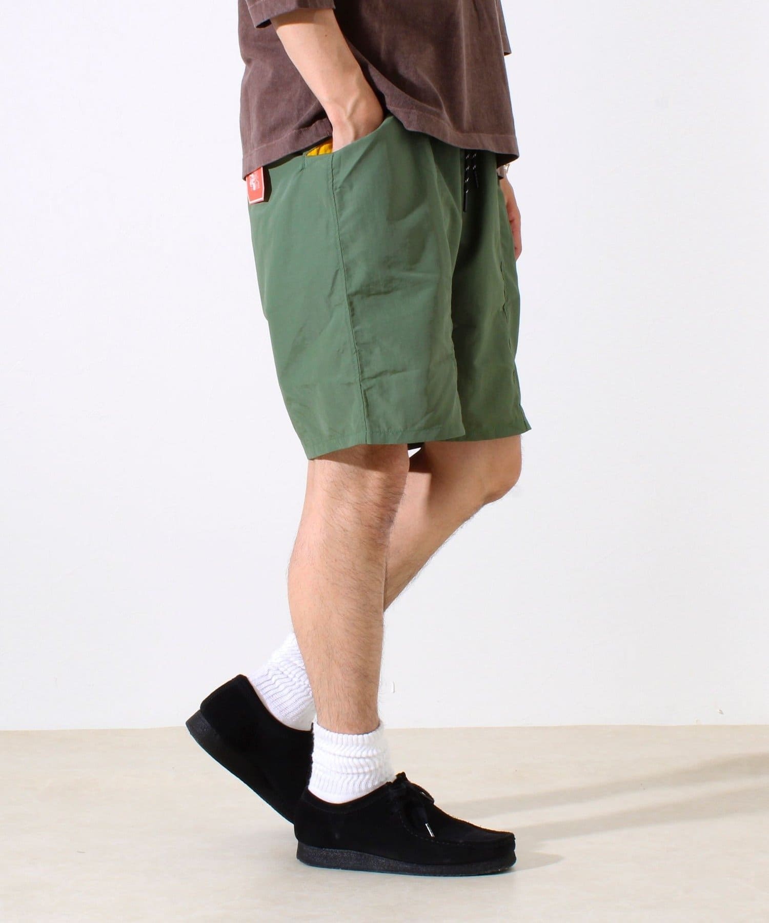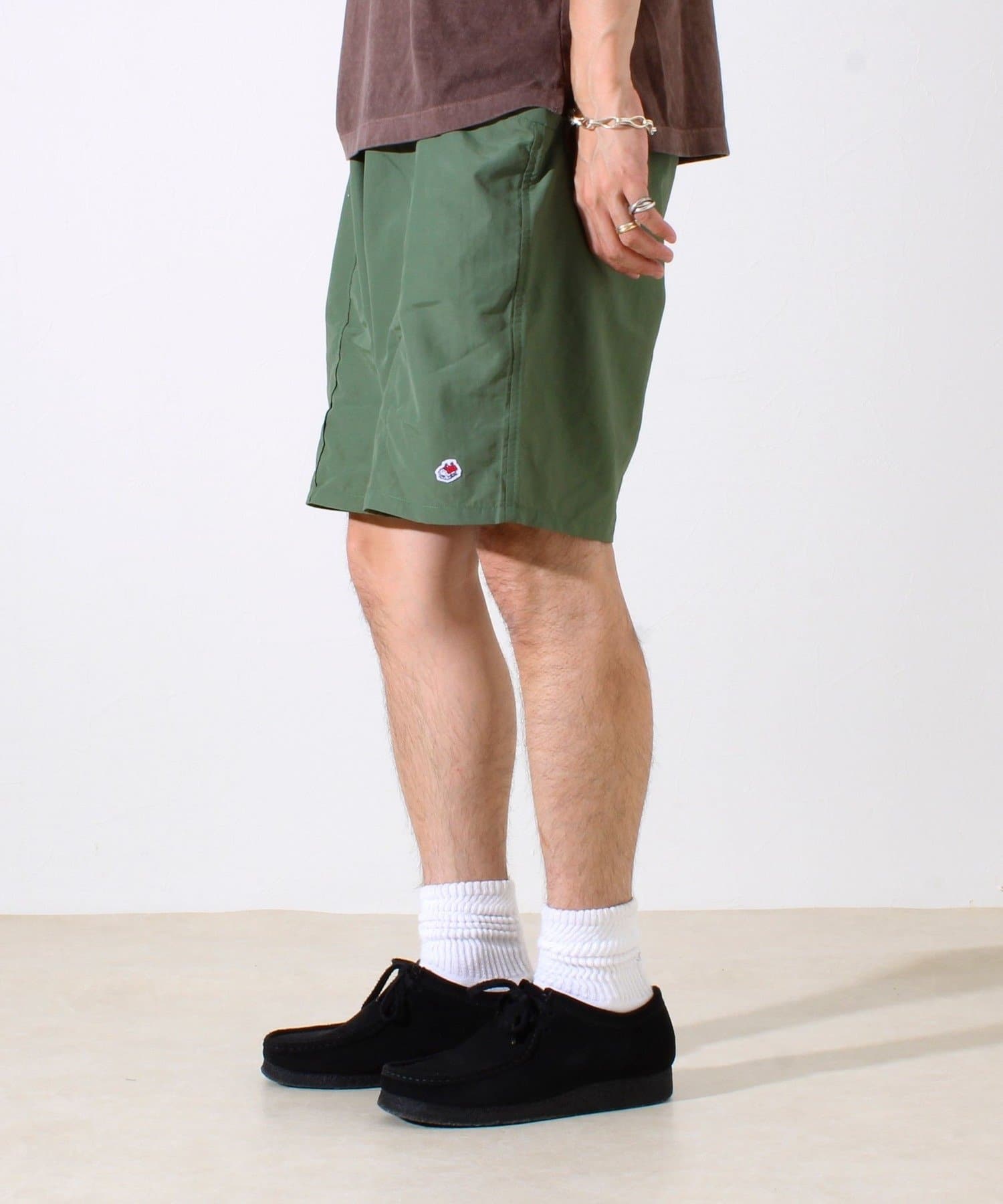 小屋ロゴがアクセント。ラフに使える軽量ナイロンショーツ