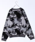 犬のシルエットを迷彩風にデザインした遊び心あるグラフィック。個性的ながらも落ち着いた配色で大人カジュアルに着こなせます。
