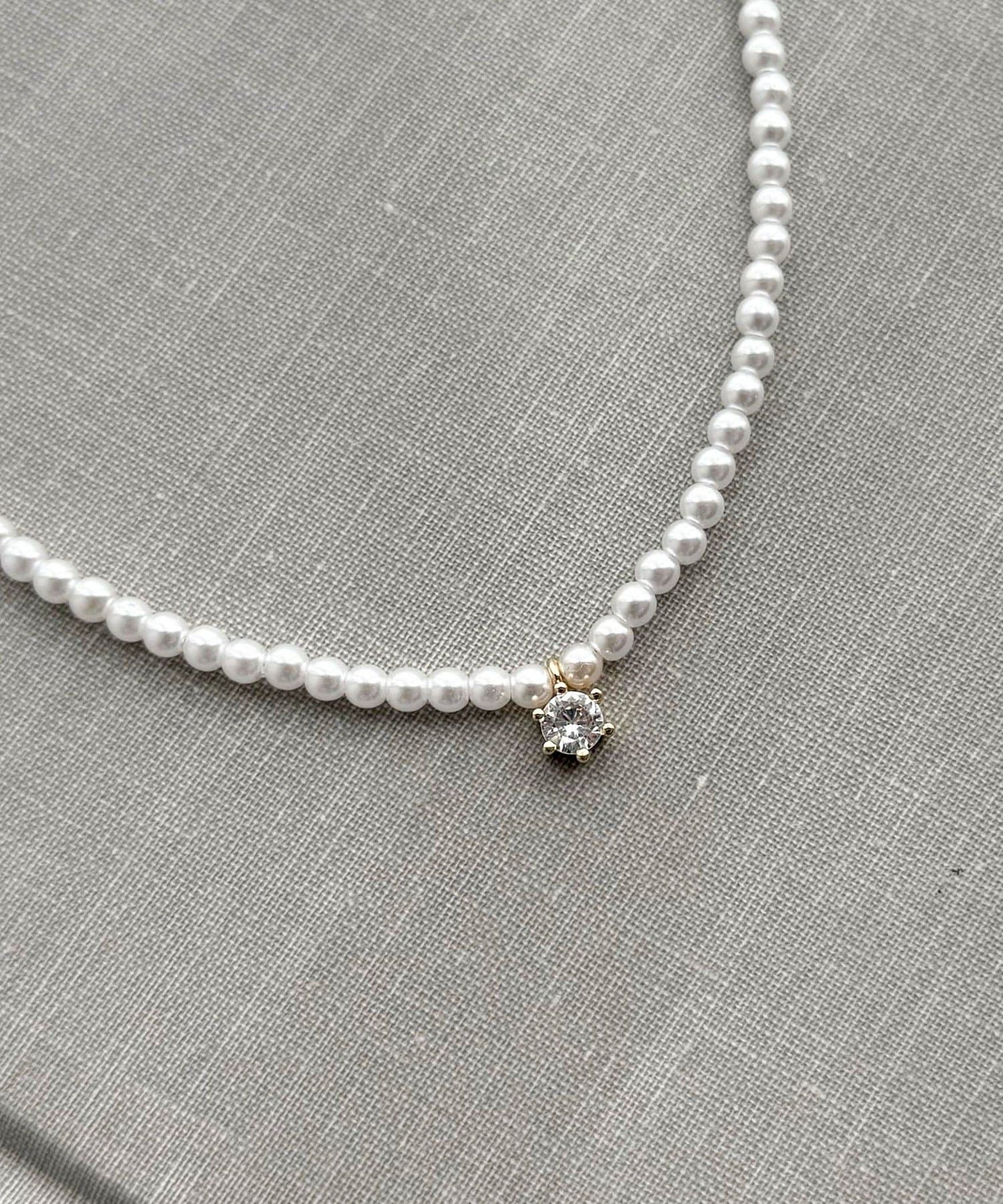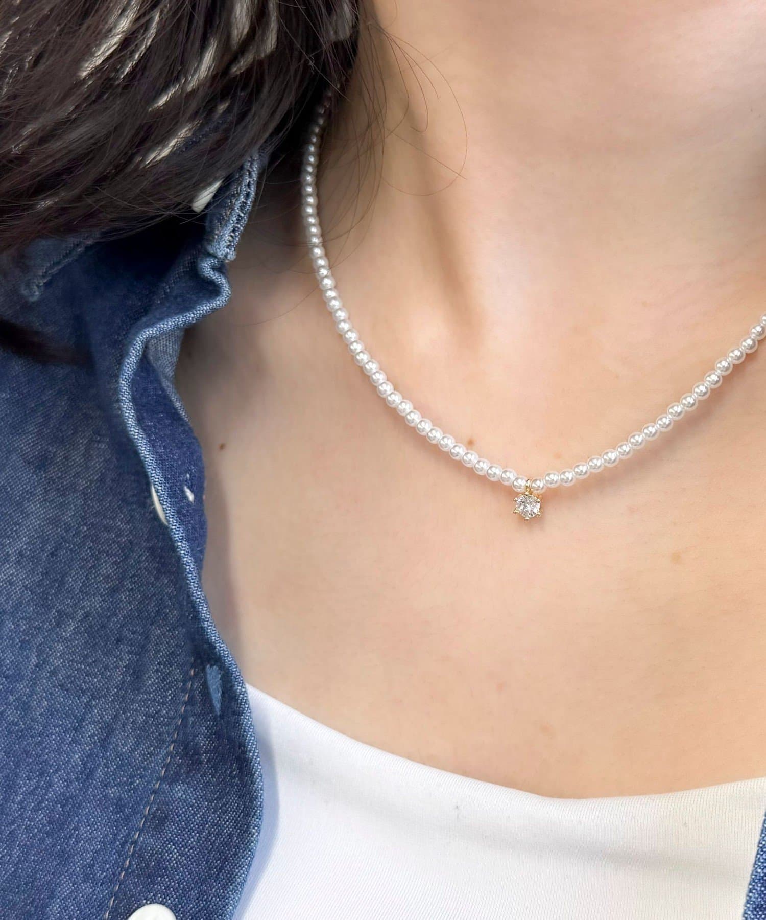 ・ミニサイズのトップのモチーフがアクセントになったパールネックレスです