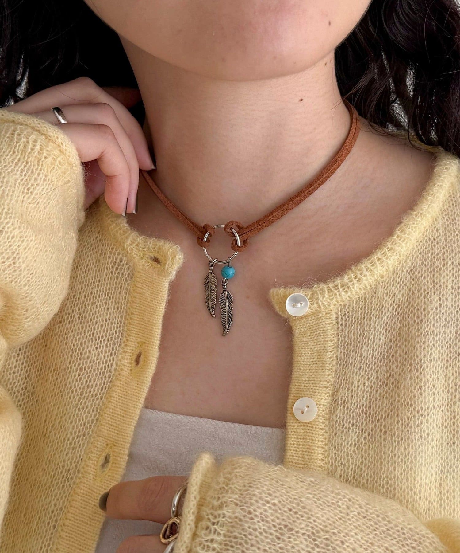 ・フェザーモチーフをあしらったトップデザインが印象的なチョーカー