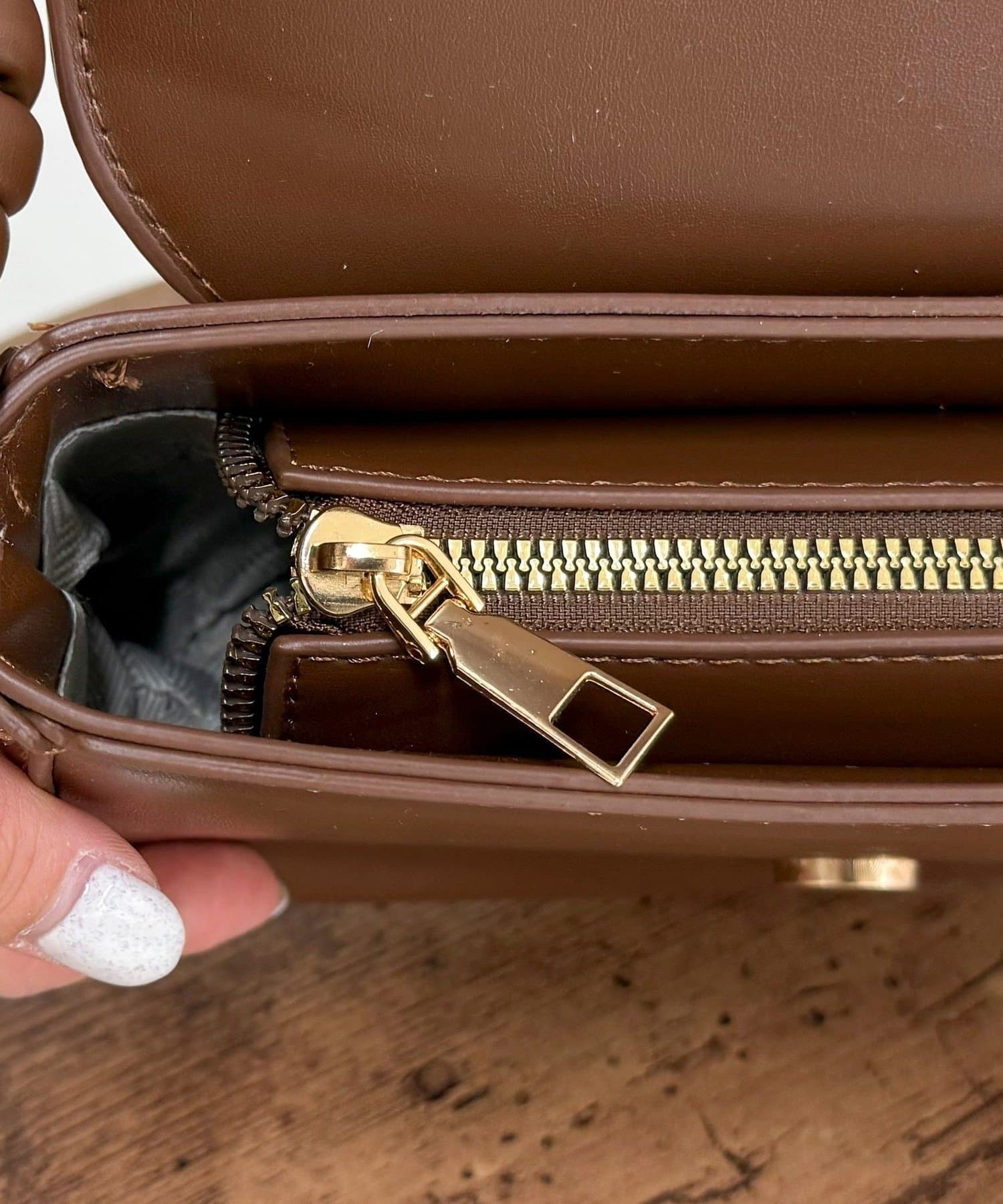 ・フラップデザイン×ファスナー付きで中身が見えにくく安心して持てます
