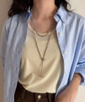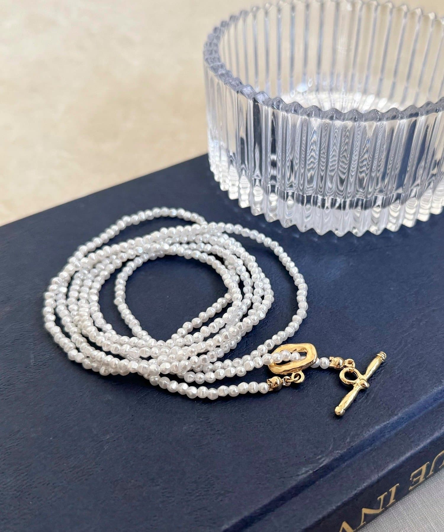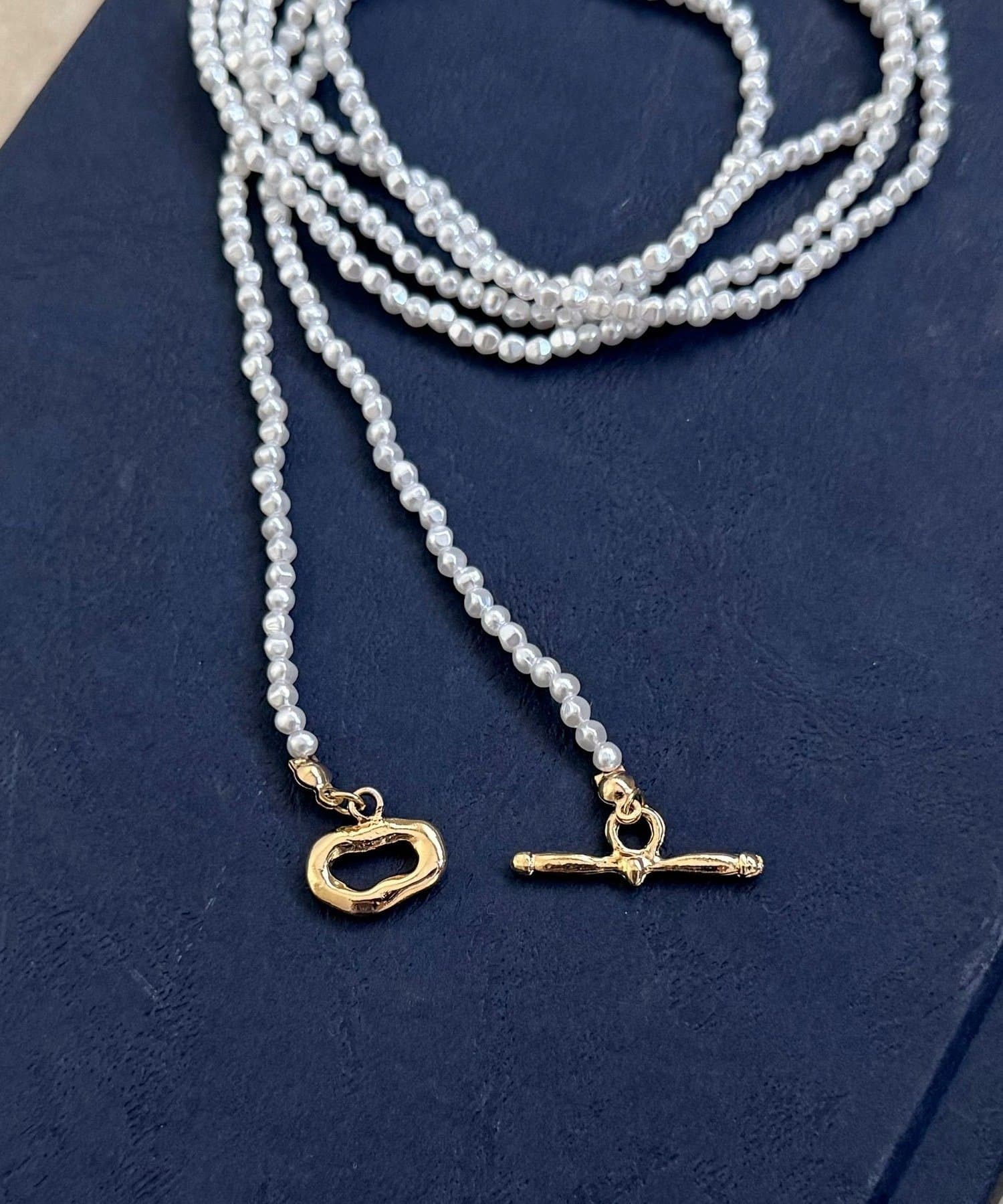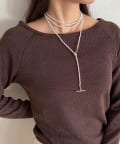 ・艶のある小粒ビーズをあしらったマンテルタイプのロングネックレス