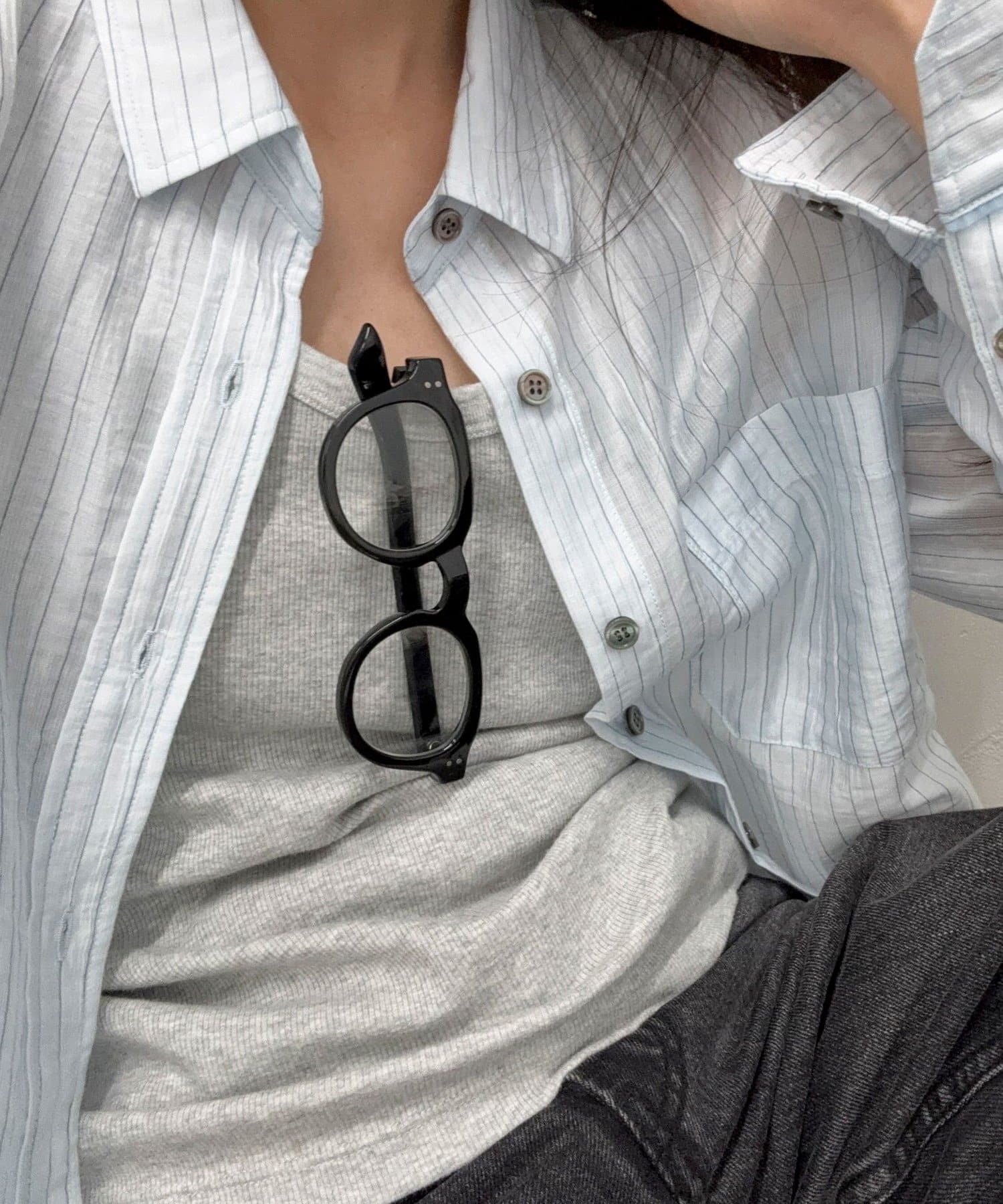 ・コーデにアクセントを与えてくれるトレンド感たっぷりのブラック太フレームメガネです