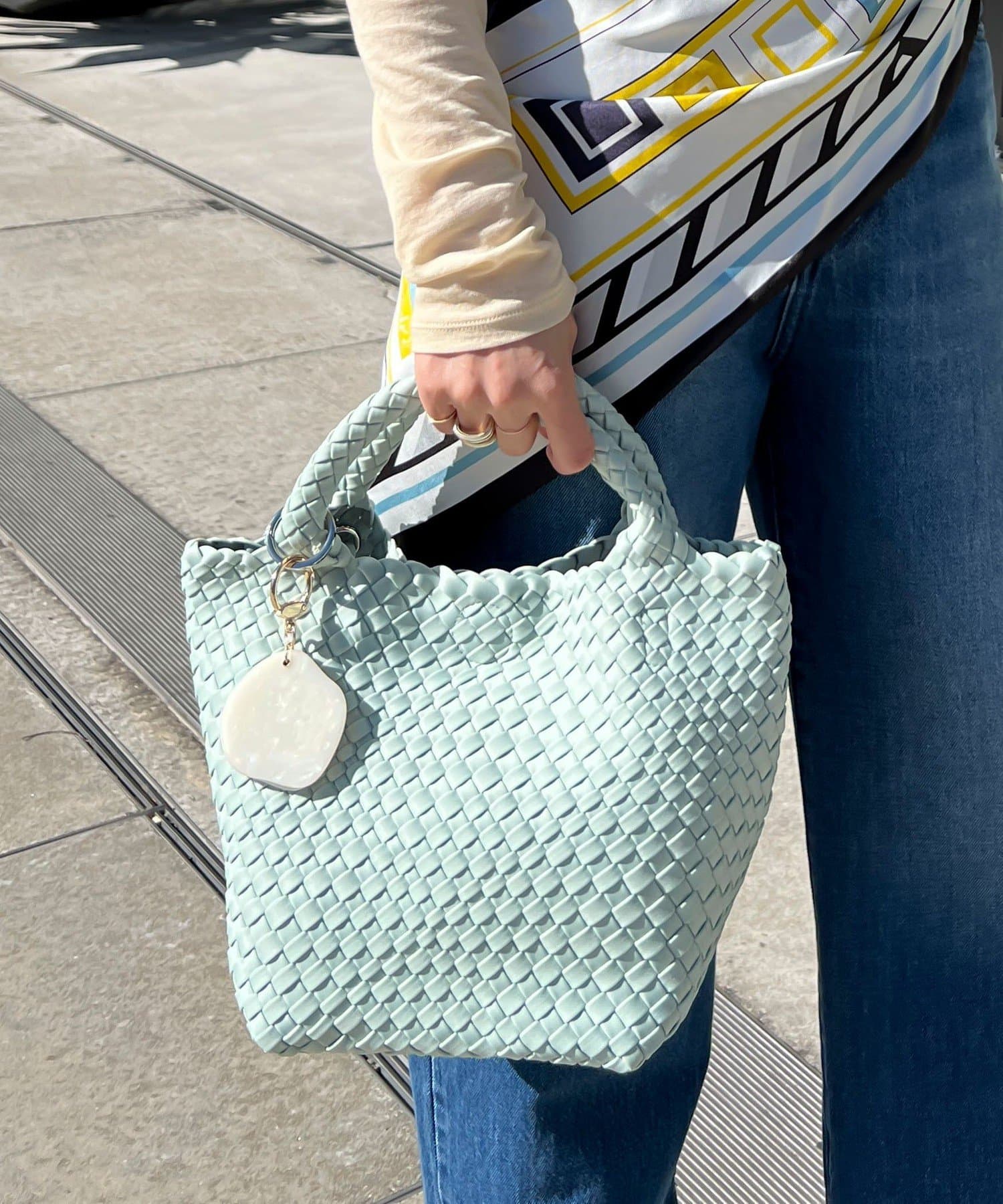 ・細めのショルダーで、キレイめスタイルにもマッチします。