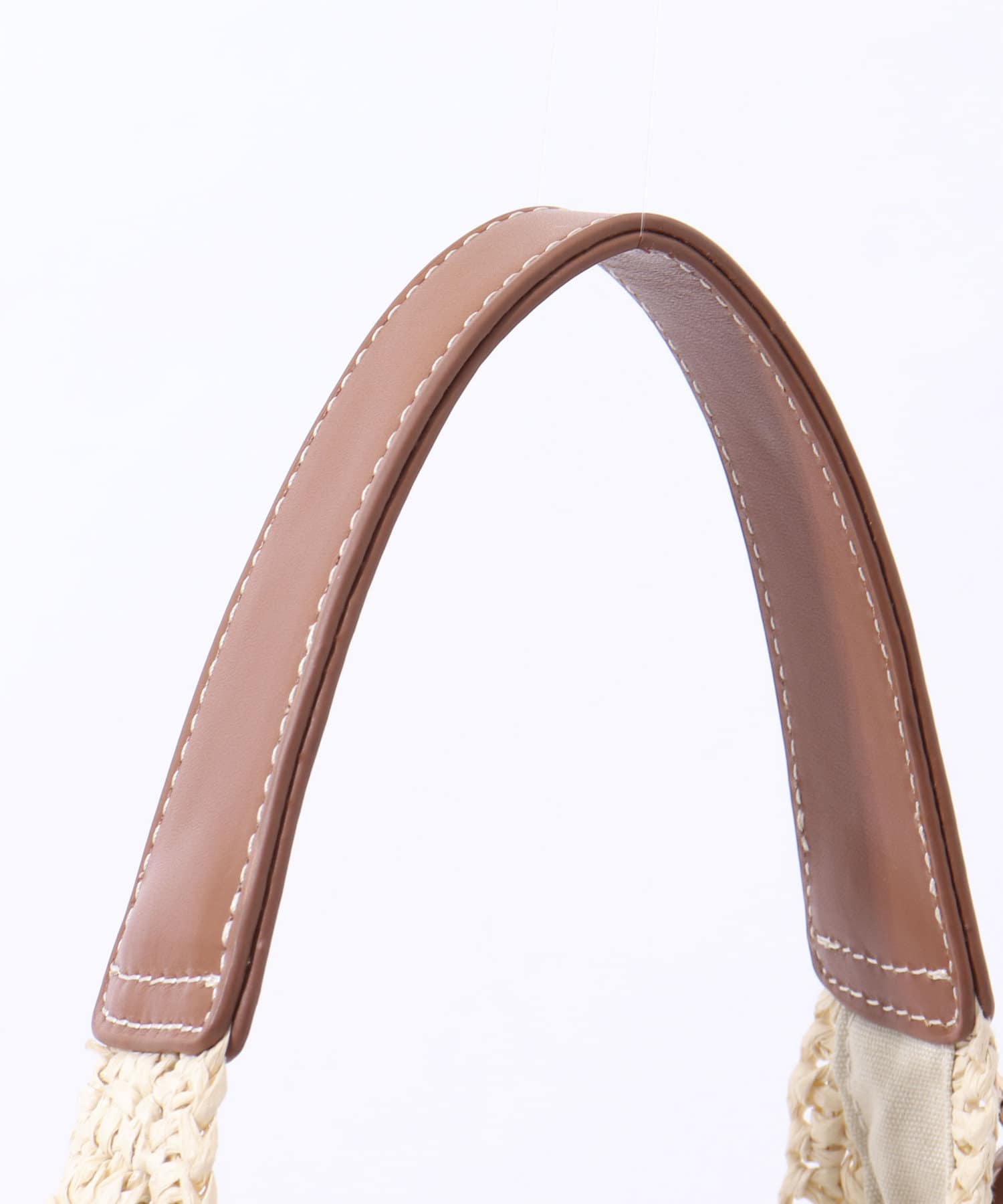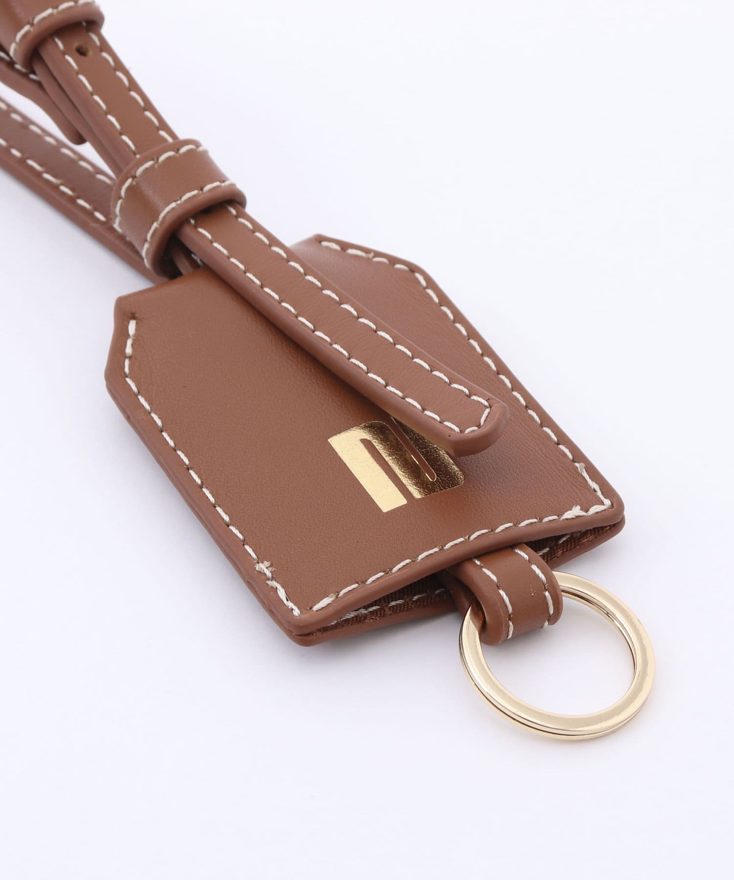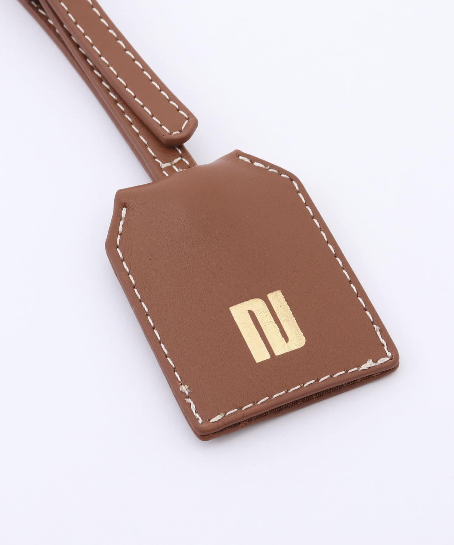 ・レザー持ち手に、同素材のキーチャーム付きで、上品で高級感のある仕上がりに。