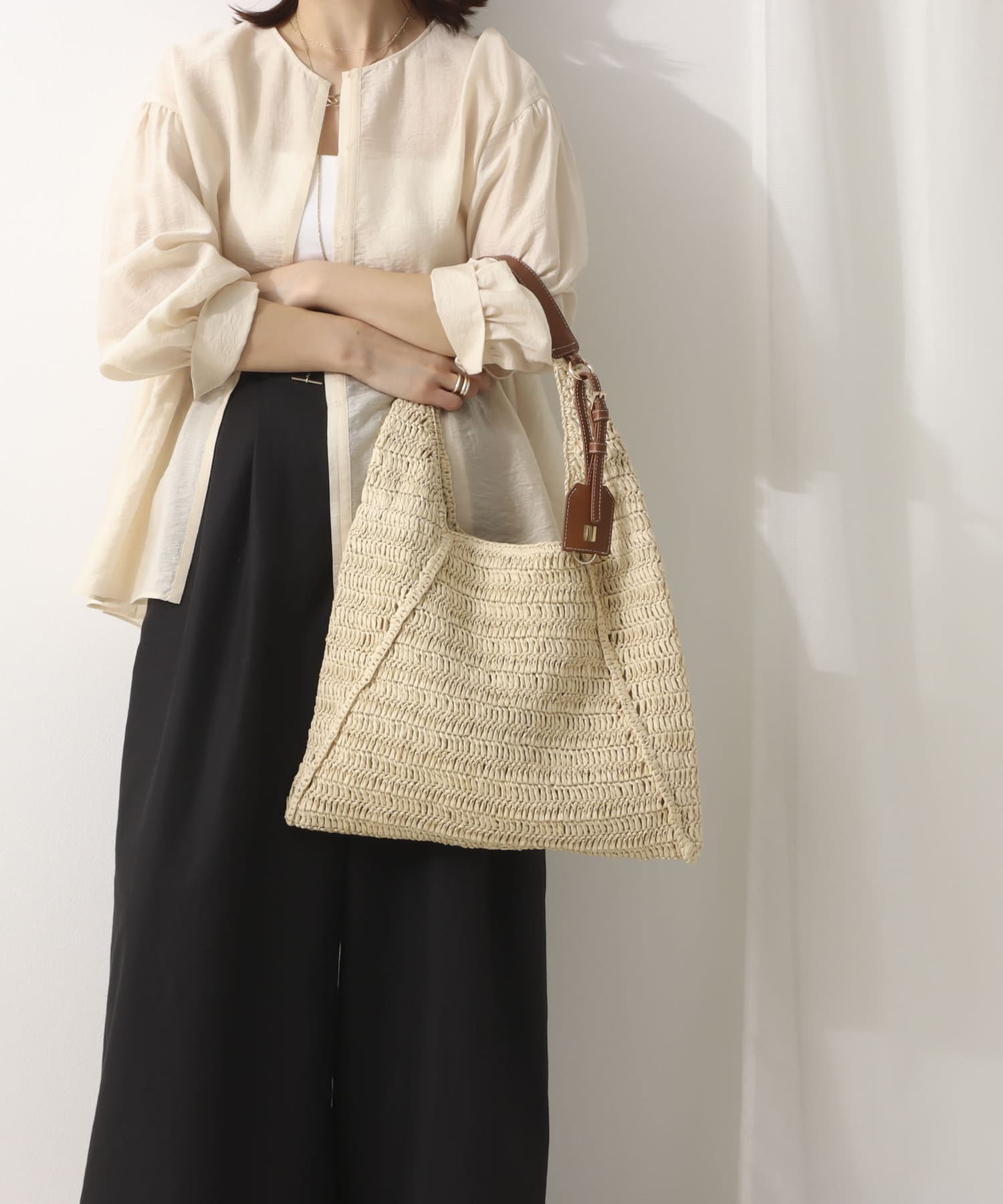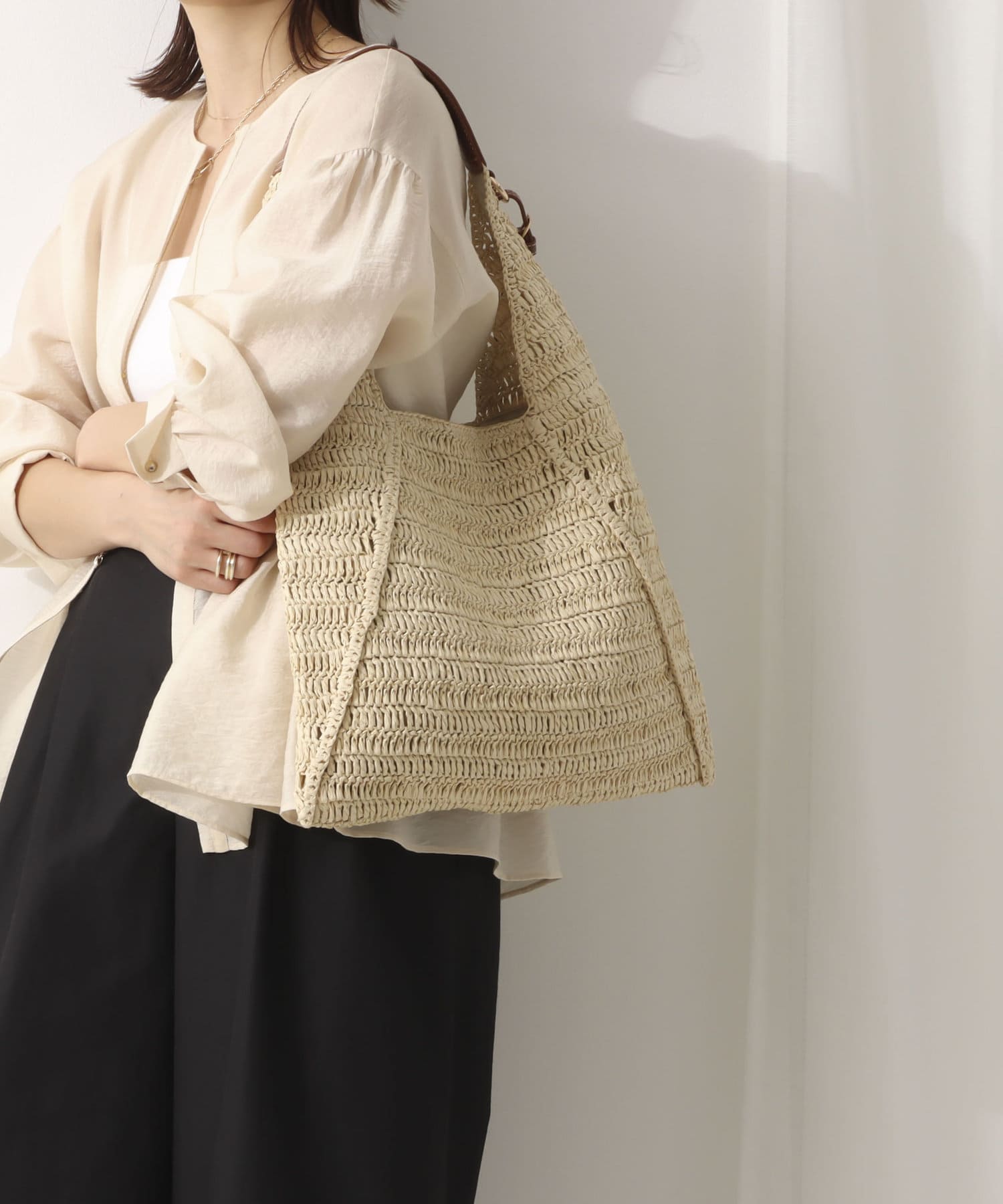・涼やかなペーパー素材のボディがシーズンムードを高めるショルダーバッグ