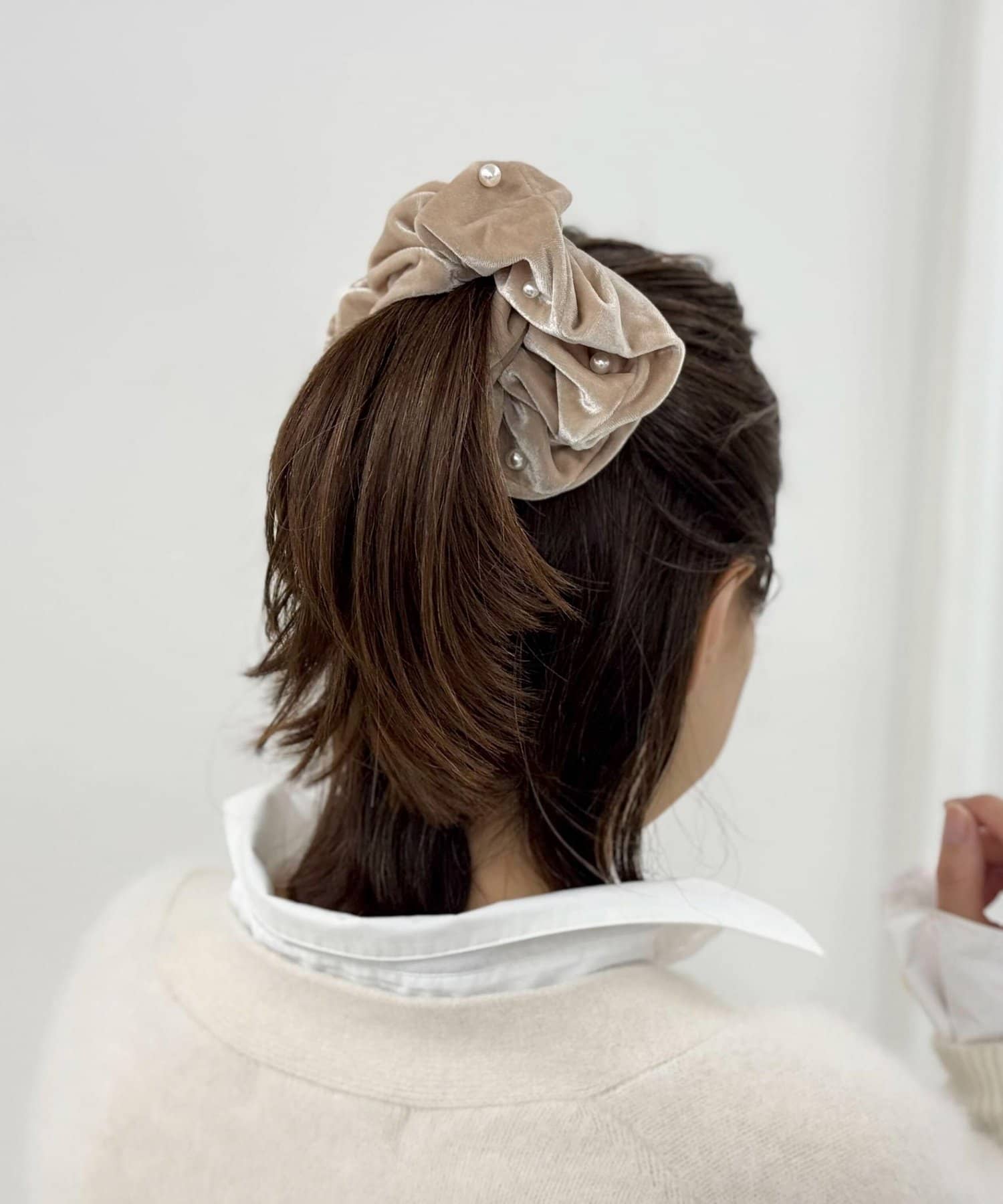 ・ベロア特有のなめらかな光沢が、動くたびに繊細な表情を生み出し、さりげない華やかさをプラス