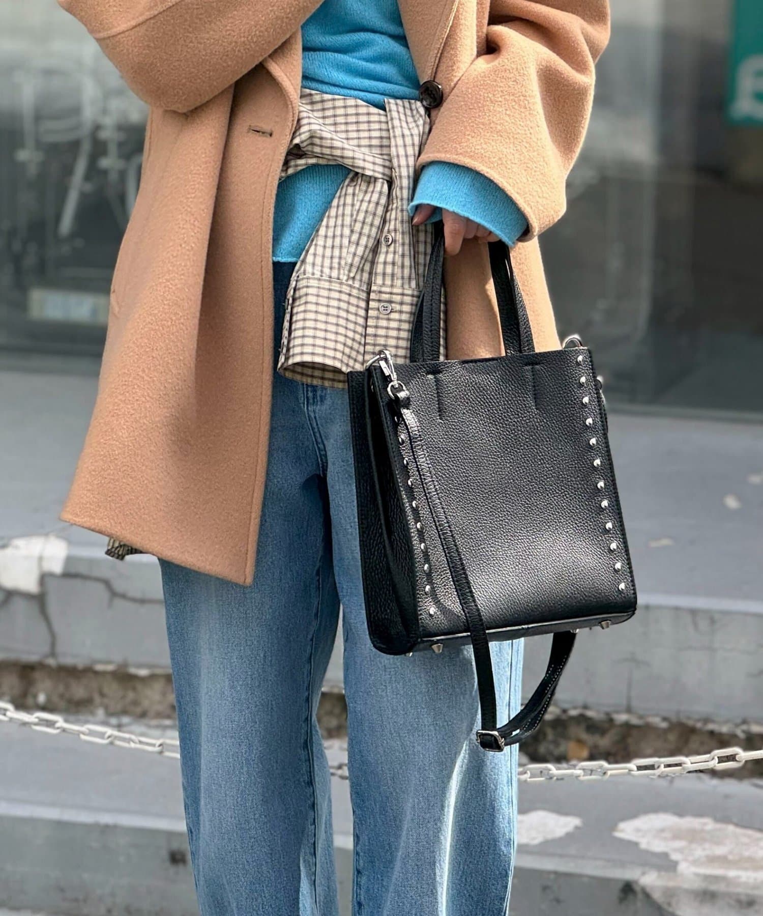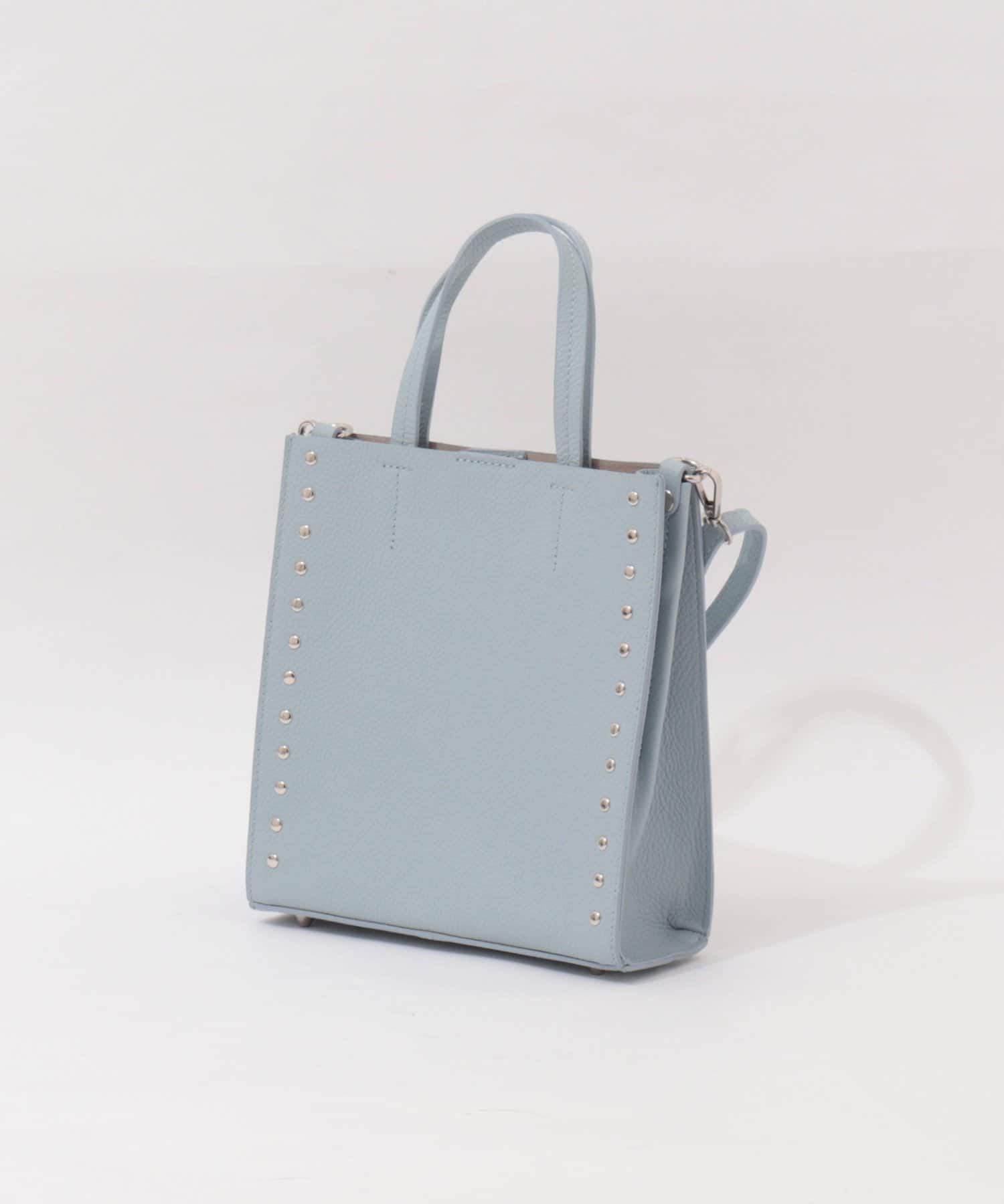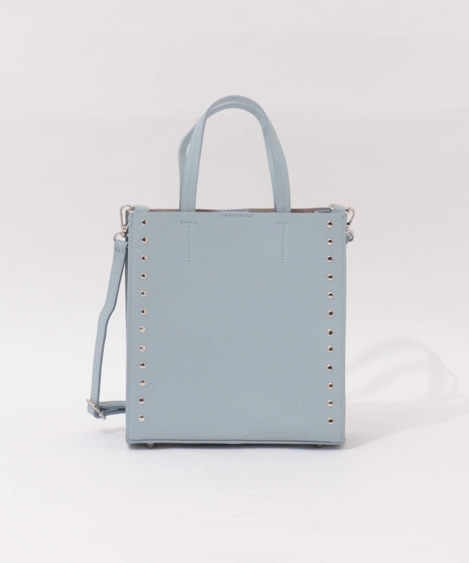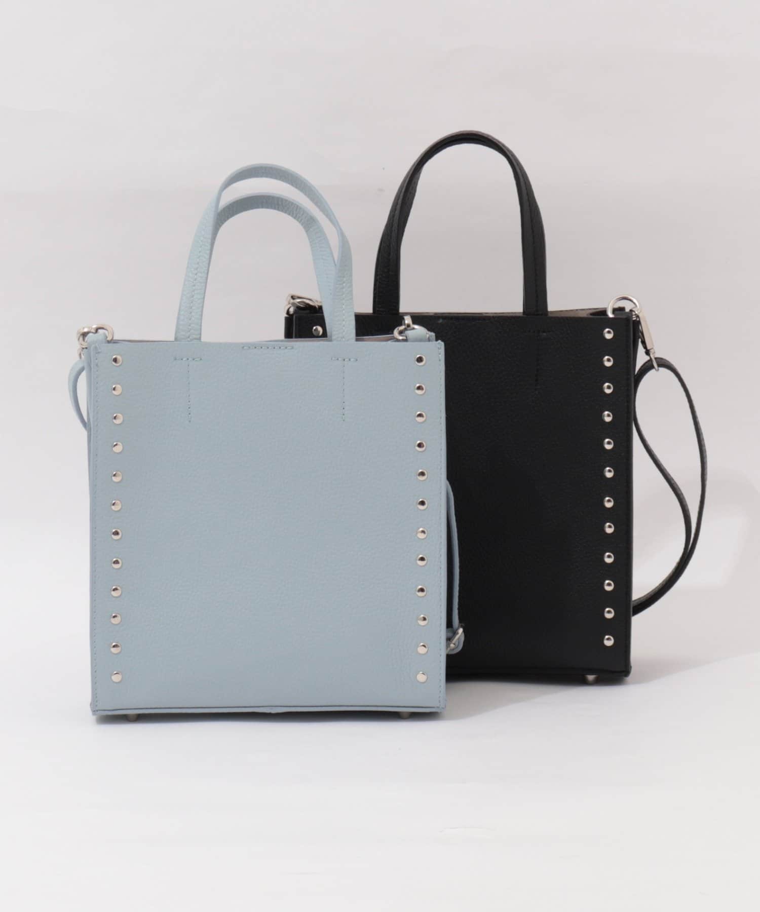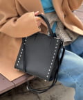 ・サイドのスタッズがポイントのスクエアトートバッグ