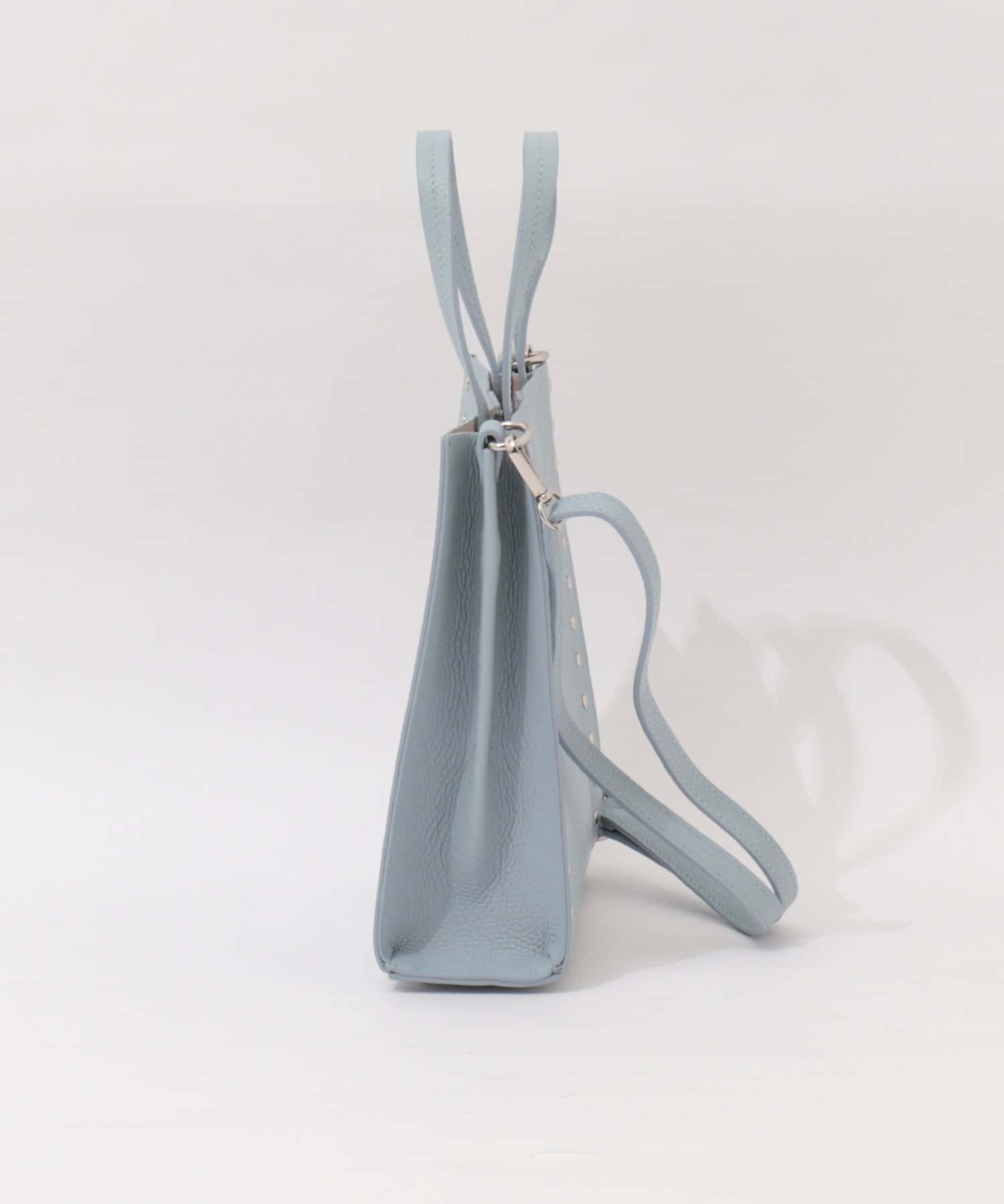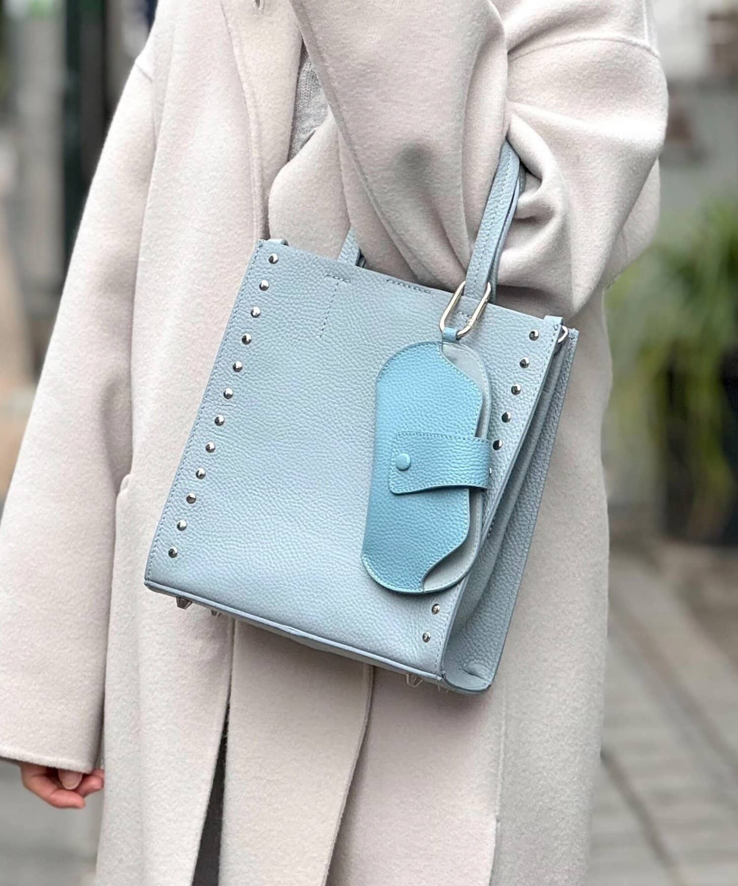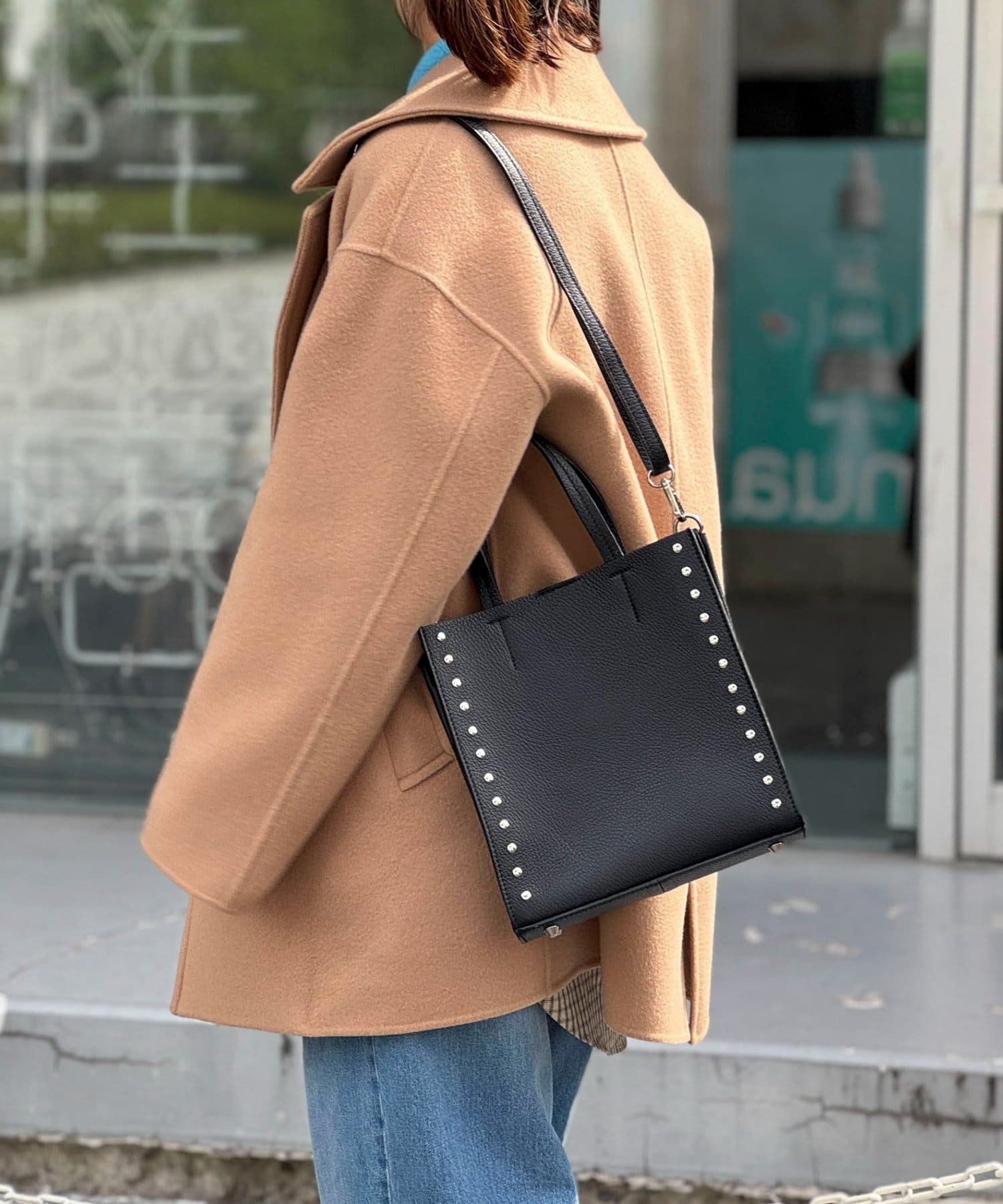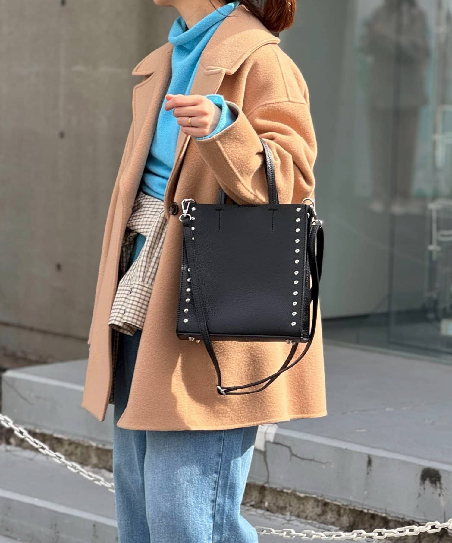 ・サイドのスタッズがポイントのスクエアトートバッグ