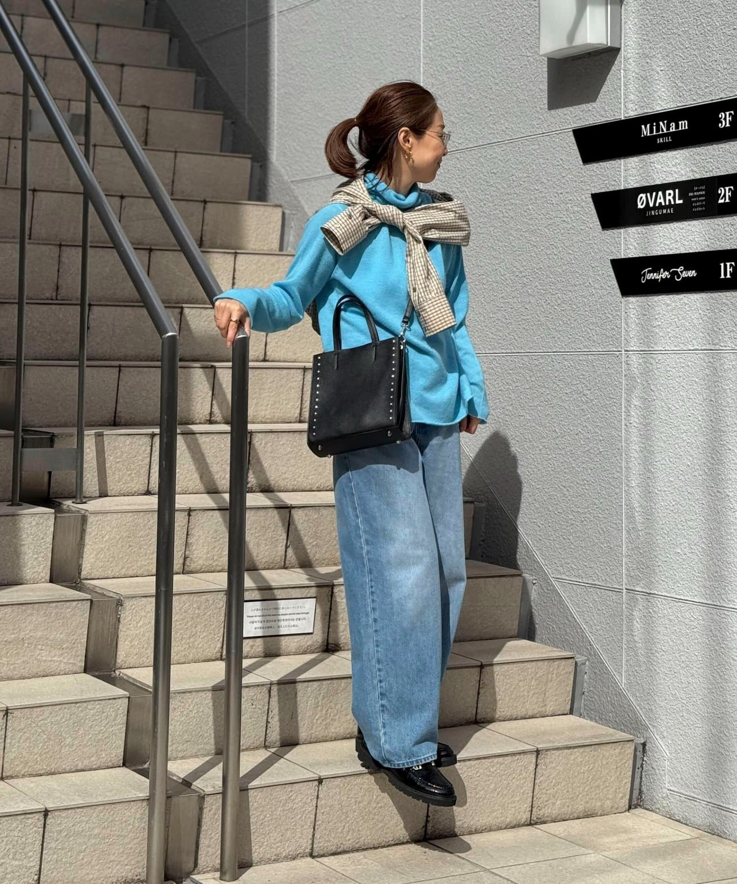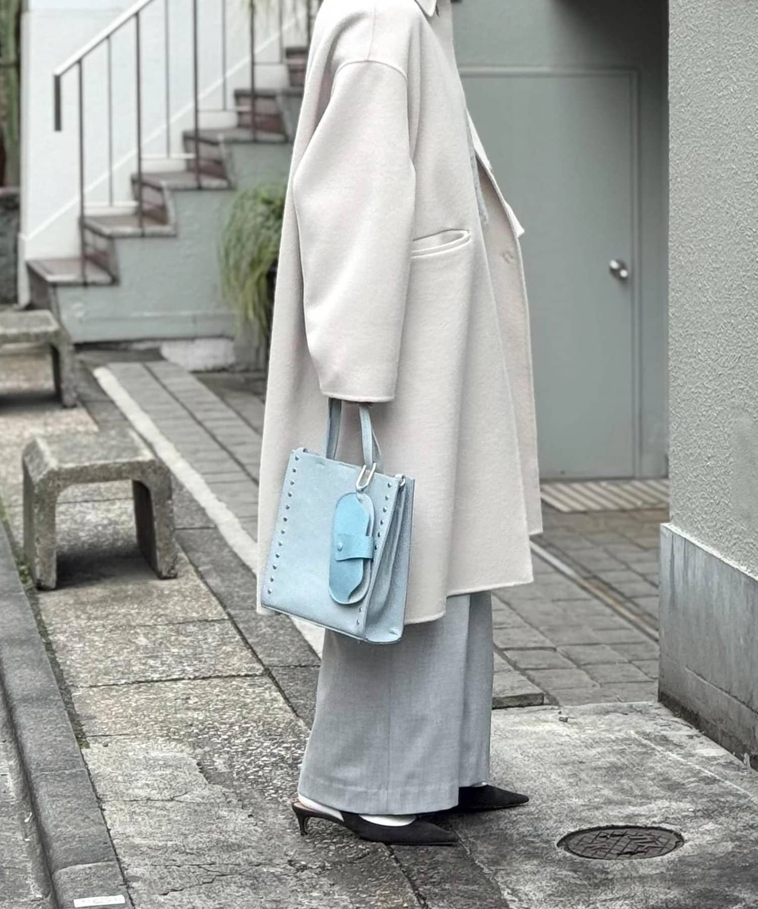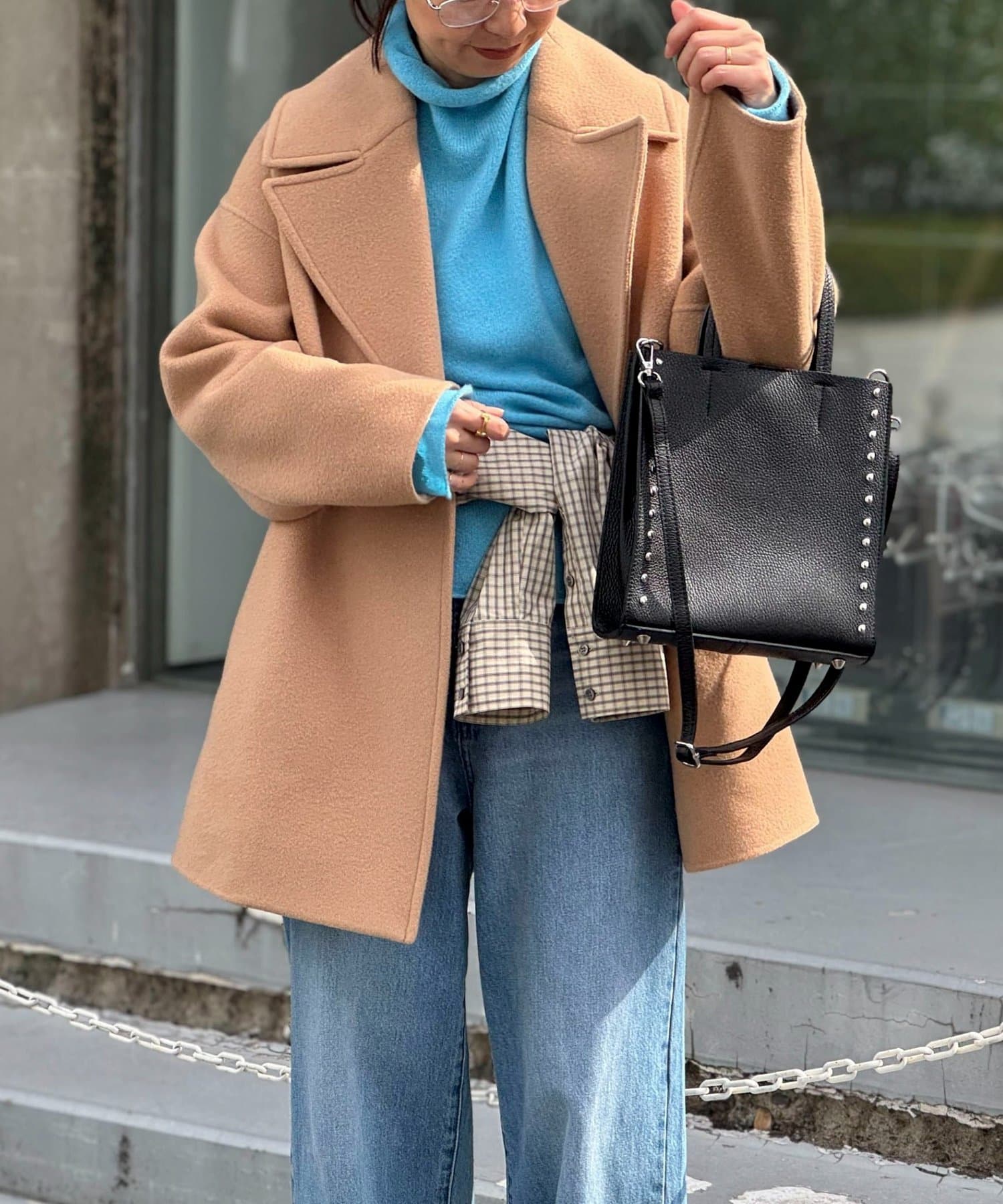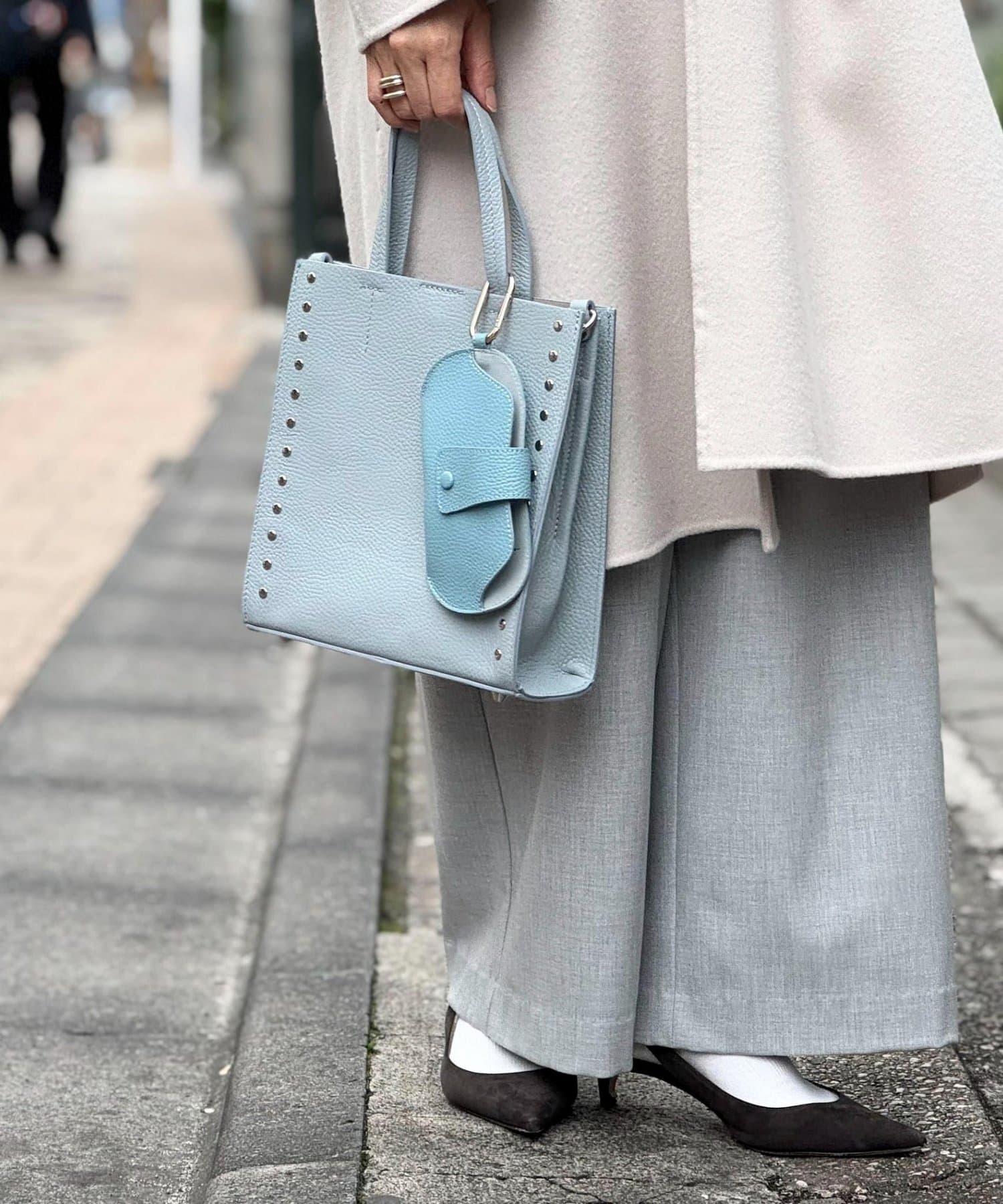 ・サイドのスタッズがポイントのスクエアトートバッグ
