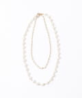 ・淡水パールネックレスに細めのゴールドチェーンを組み合わせたコンビネックレス