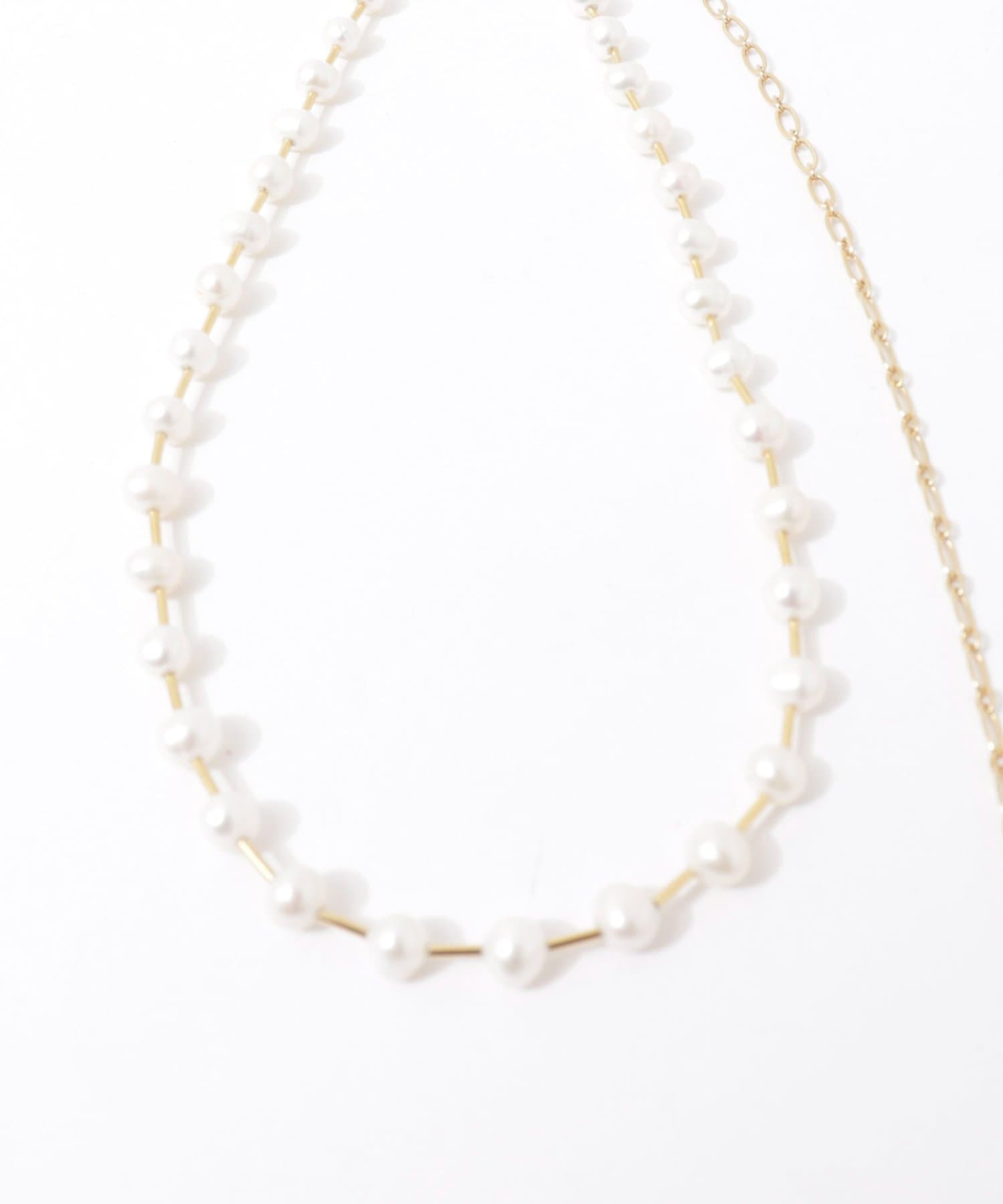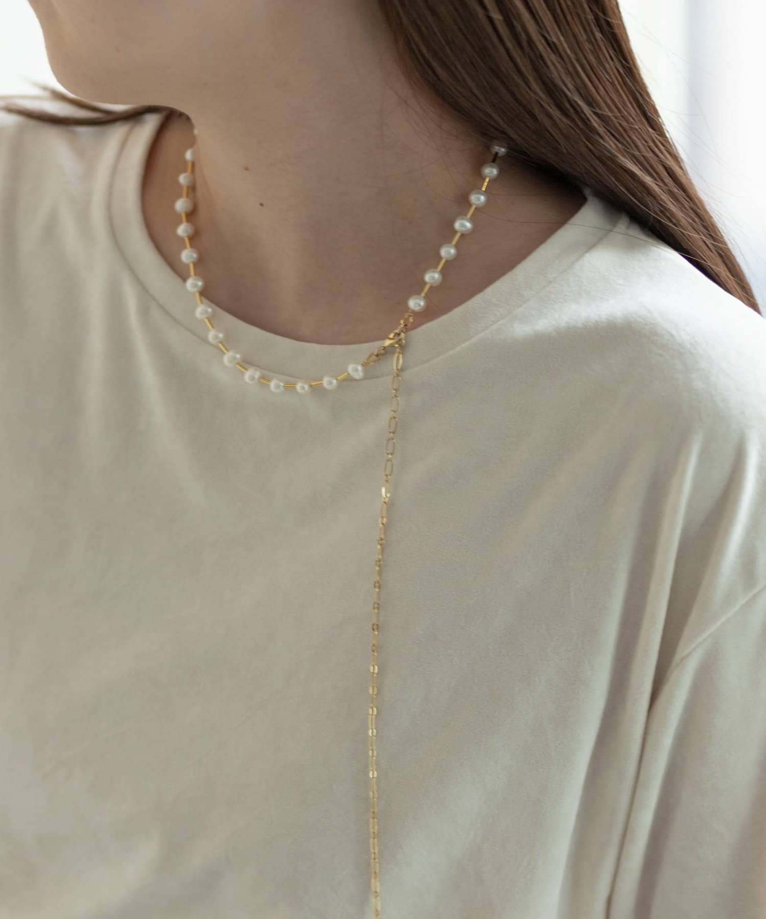・淡水パールネックレスに細めのゴールドチェーンを組み合わせたコンビネックレス