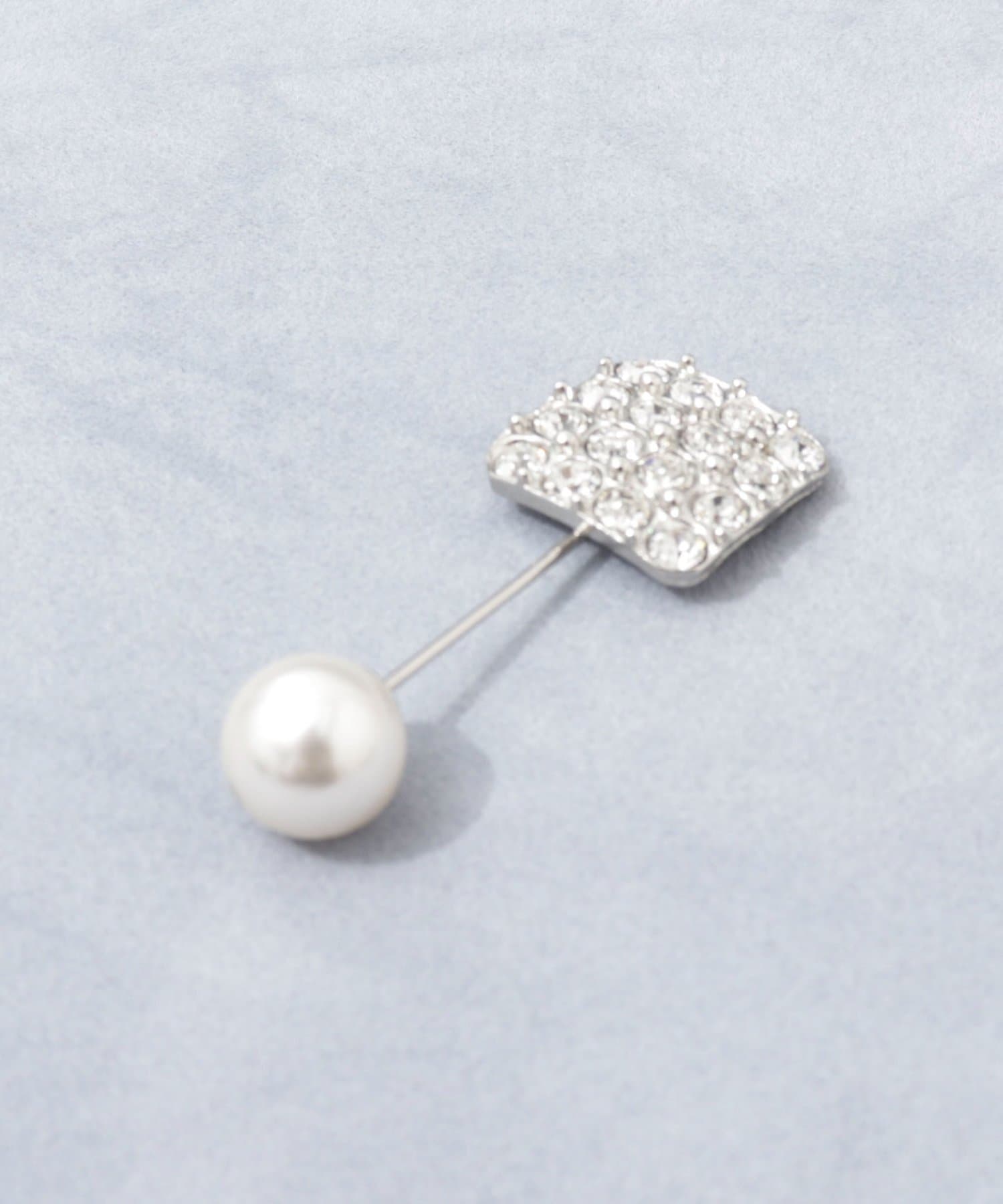 ・スクエア型のビジューパーツに、パールキャッチがポイントに。