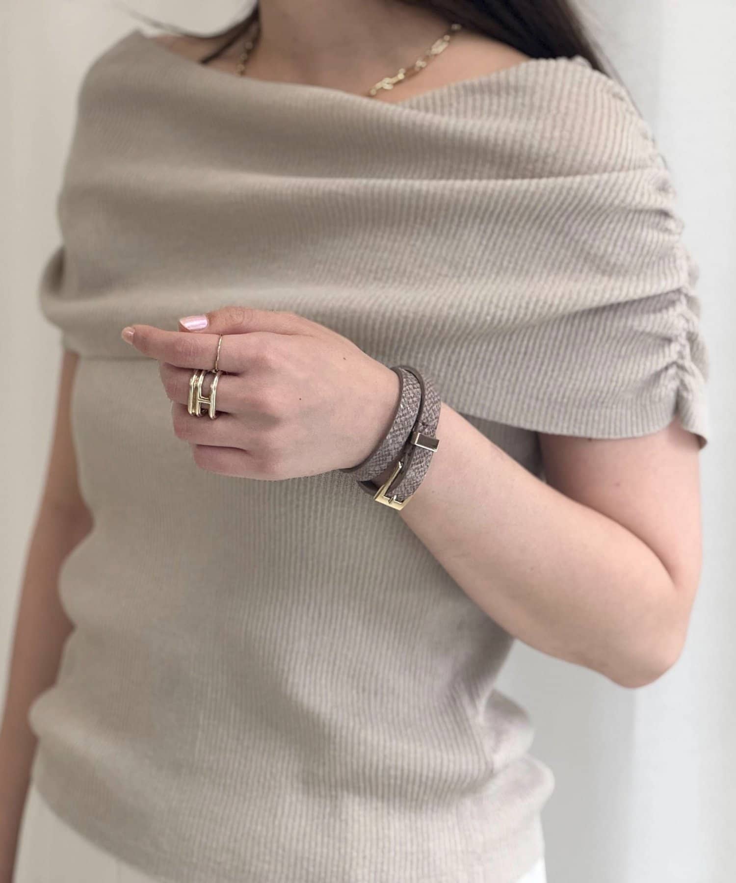 ・いつものコーデに、さりげないアクセントになるベルト型ブレスレット