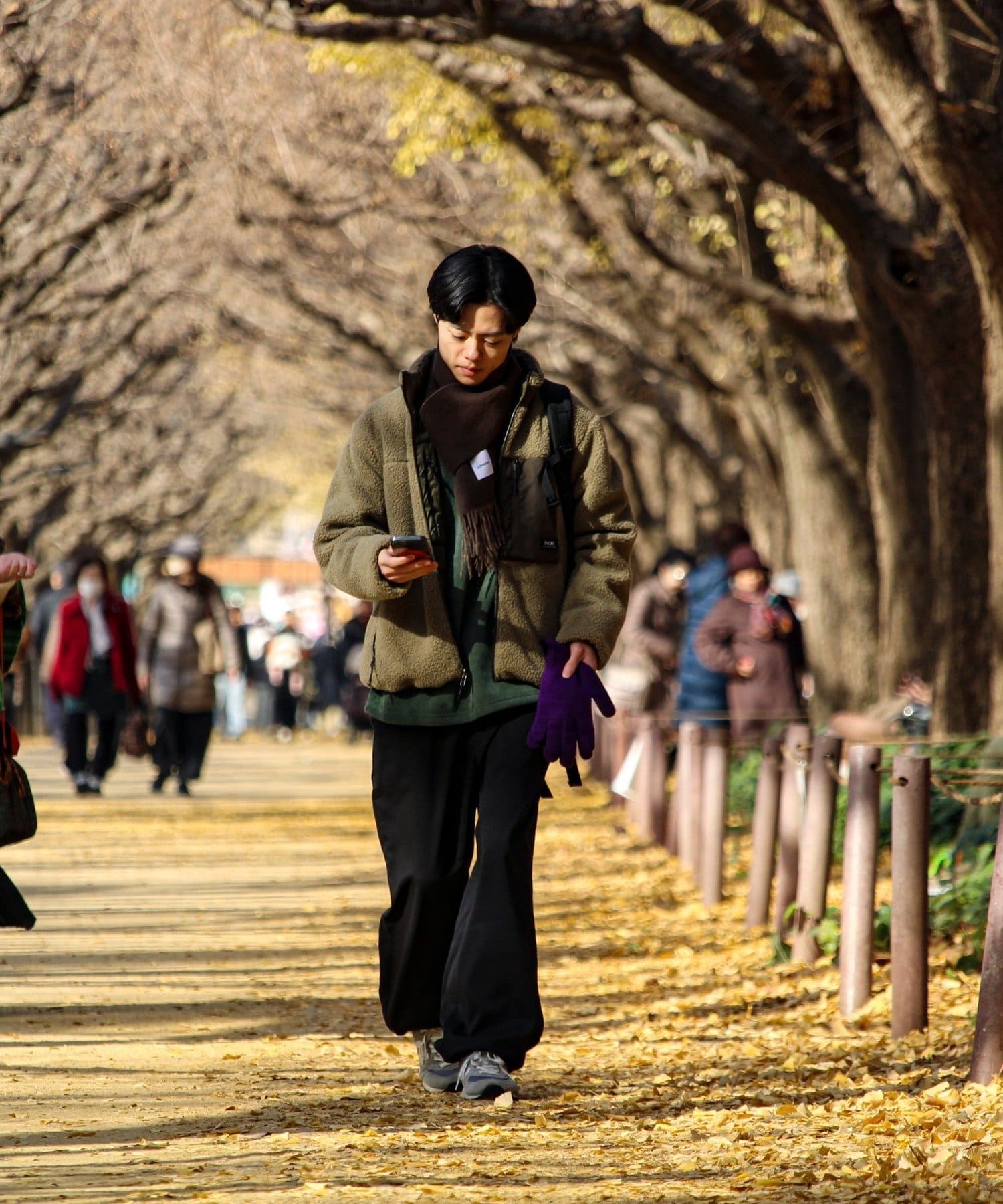 ● 大人カジュアルに:チェスターコート × ニットに巻けば、冬の定番キレイめスタイルが完成