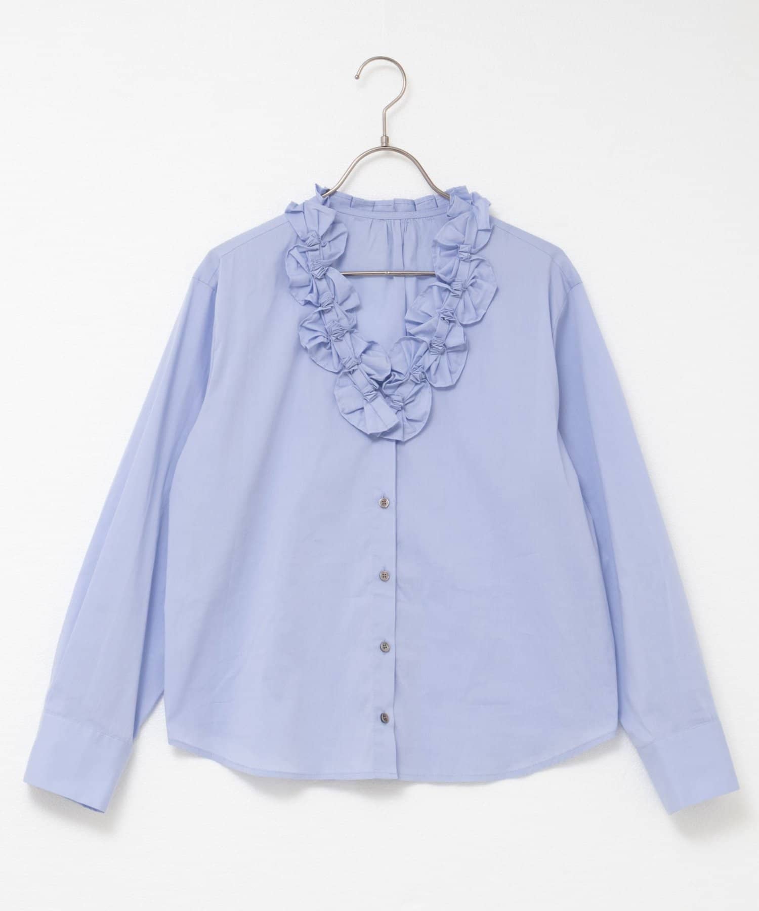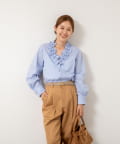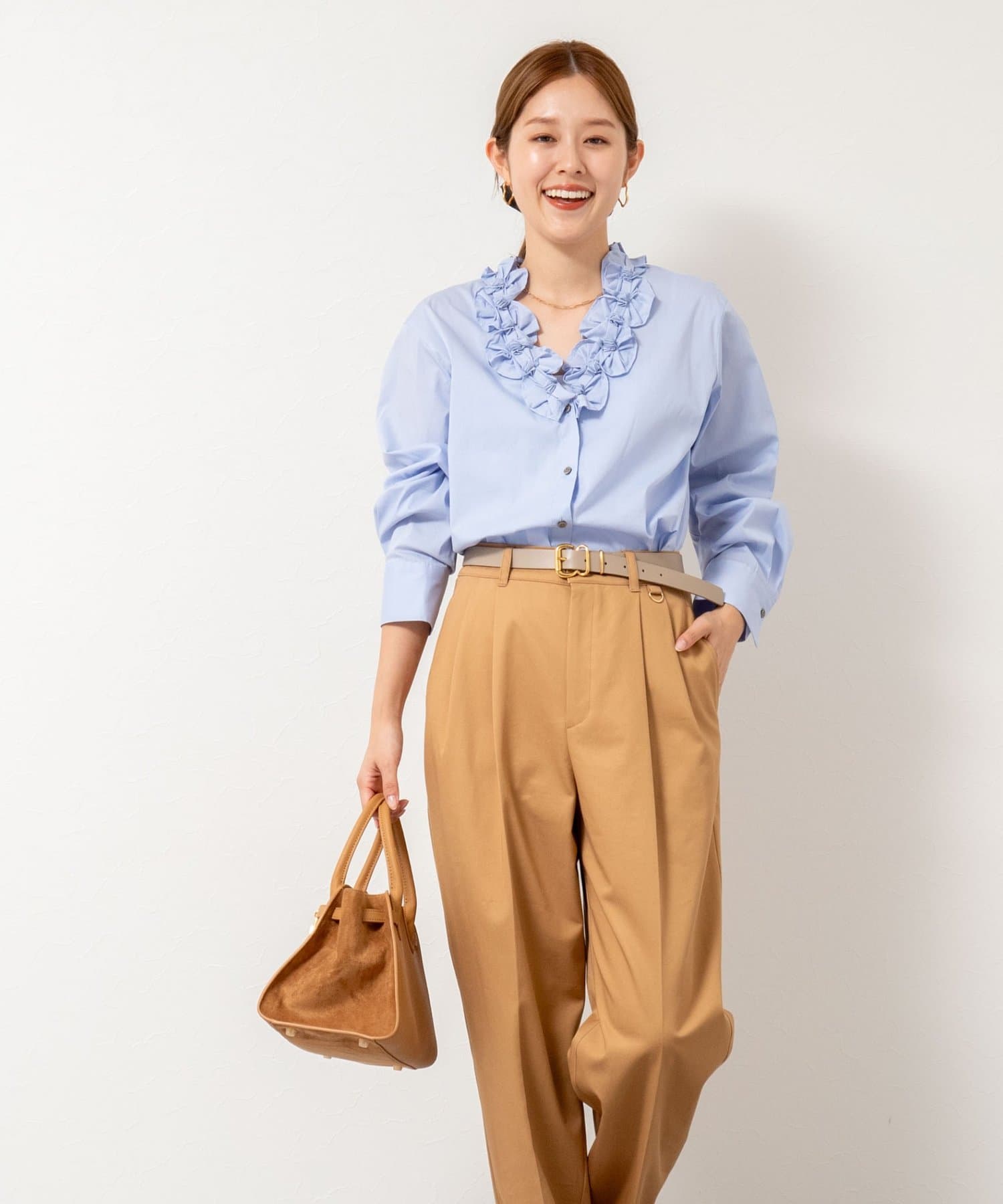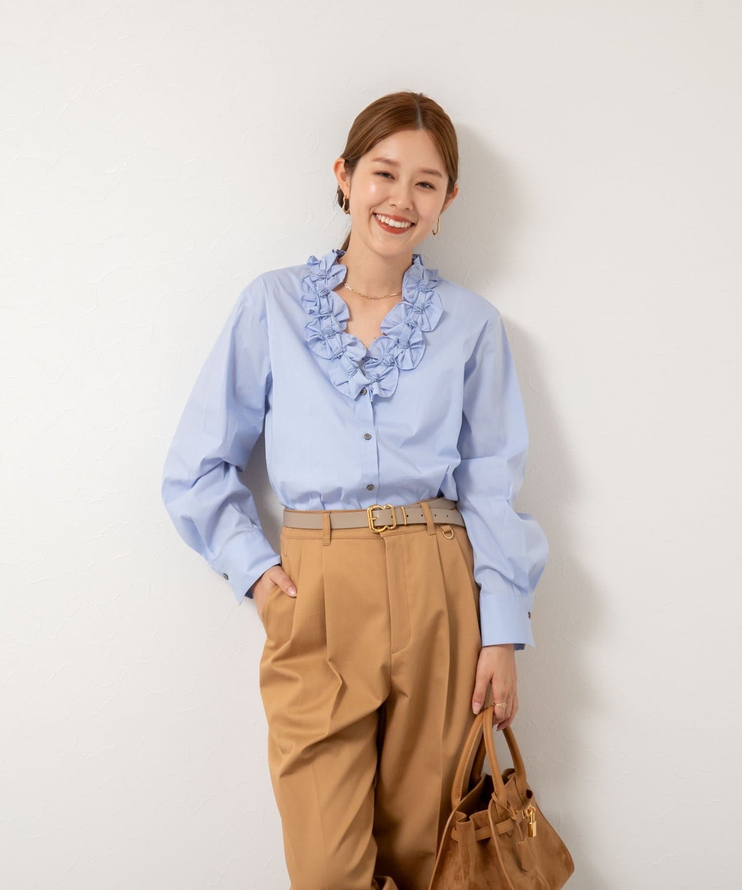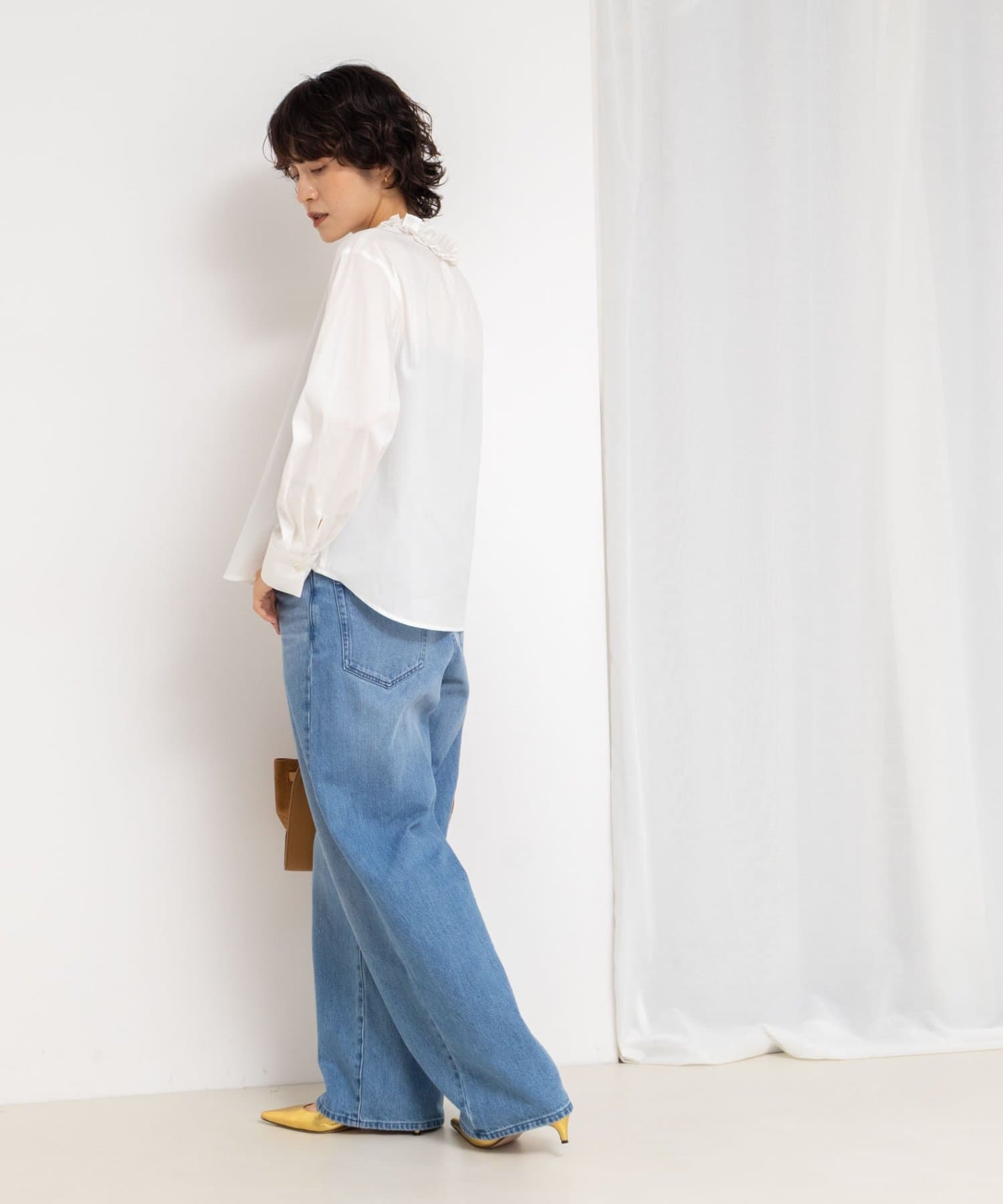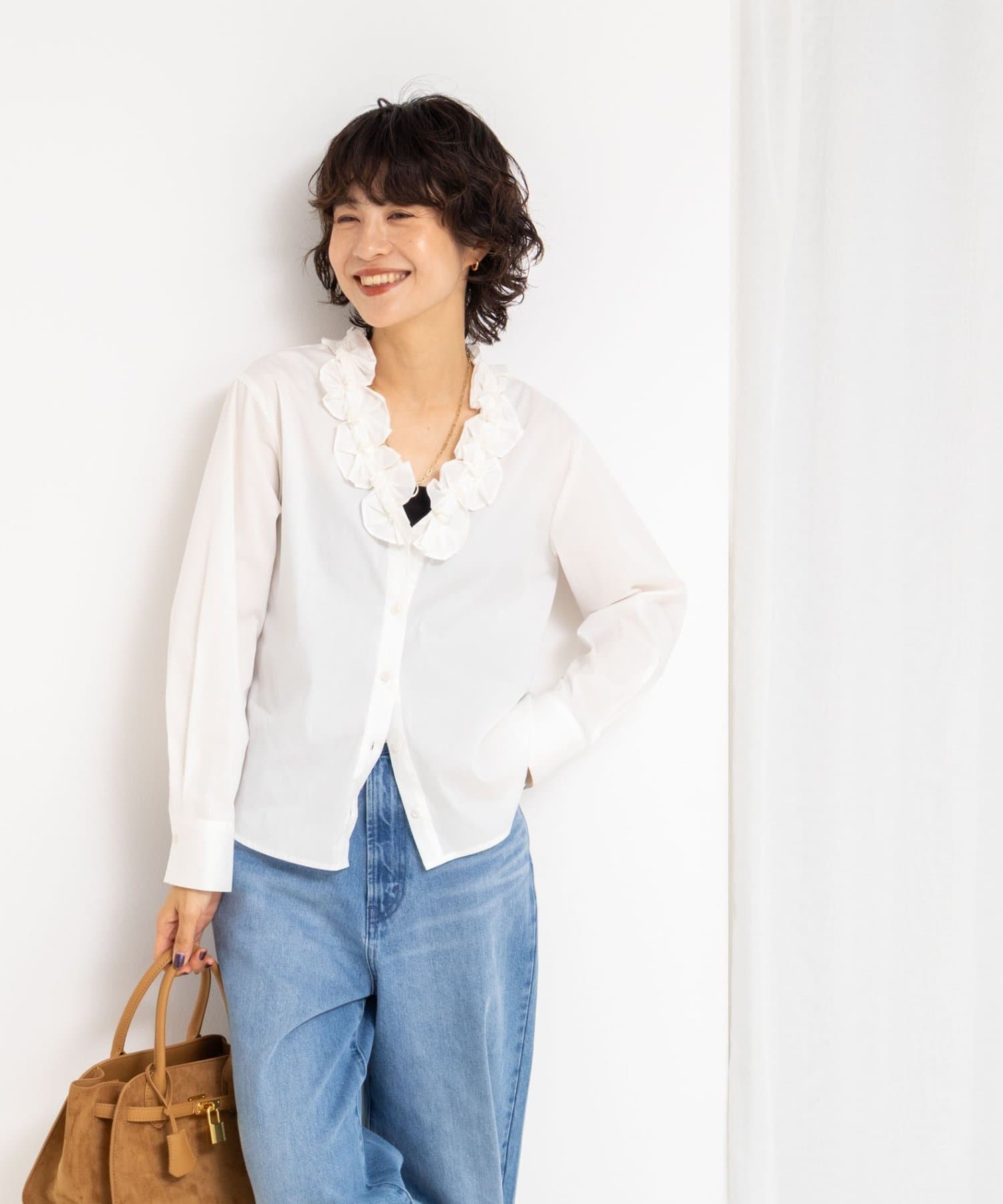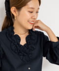 ・フラワーモチーフのようなネックデザインがポイントのブラウス