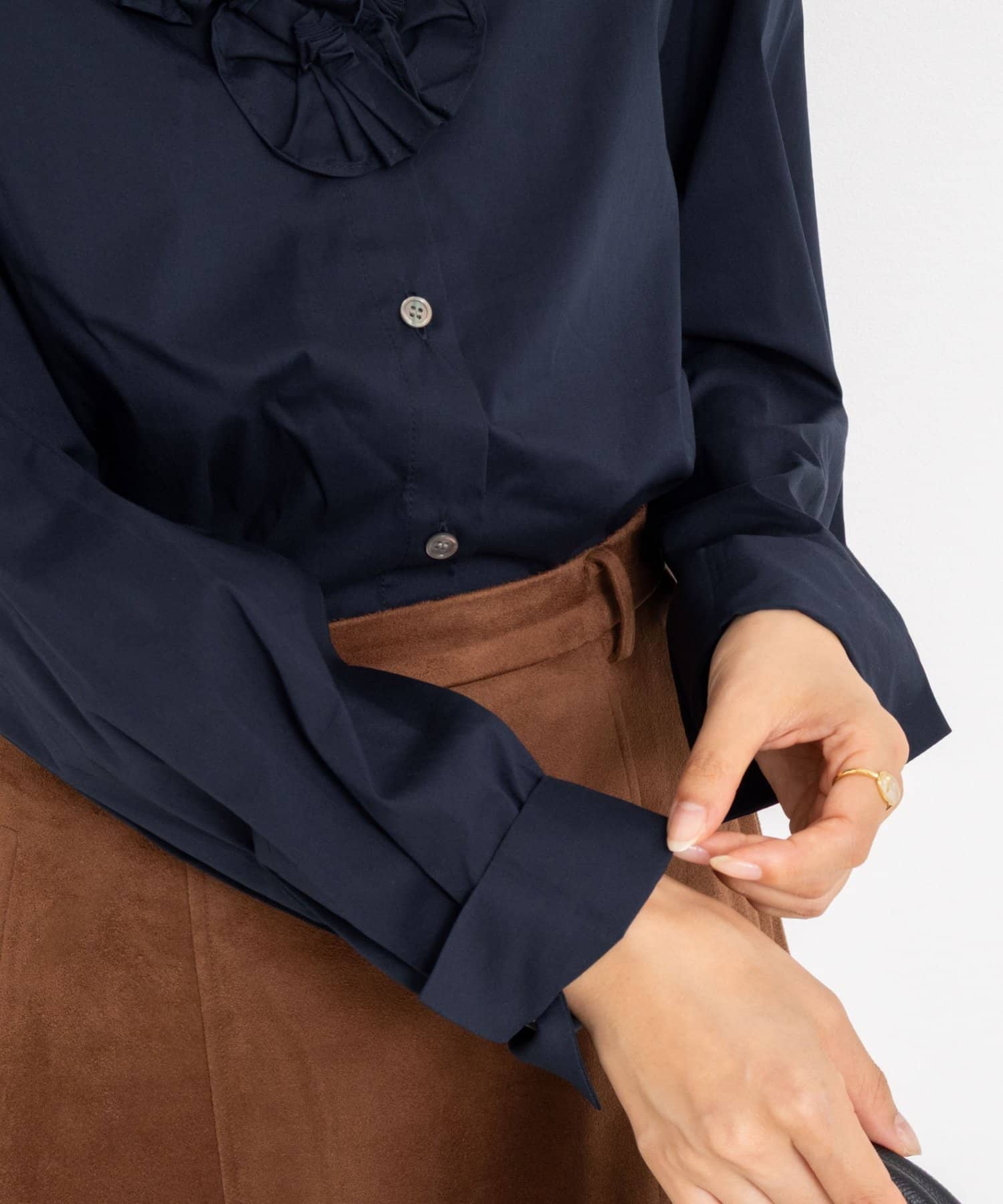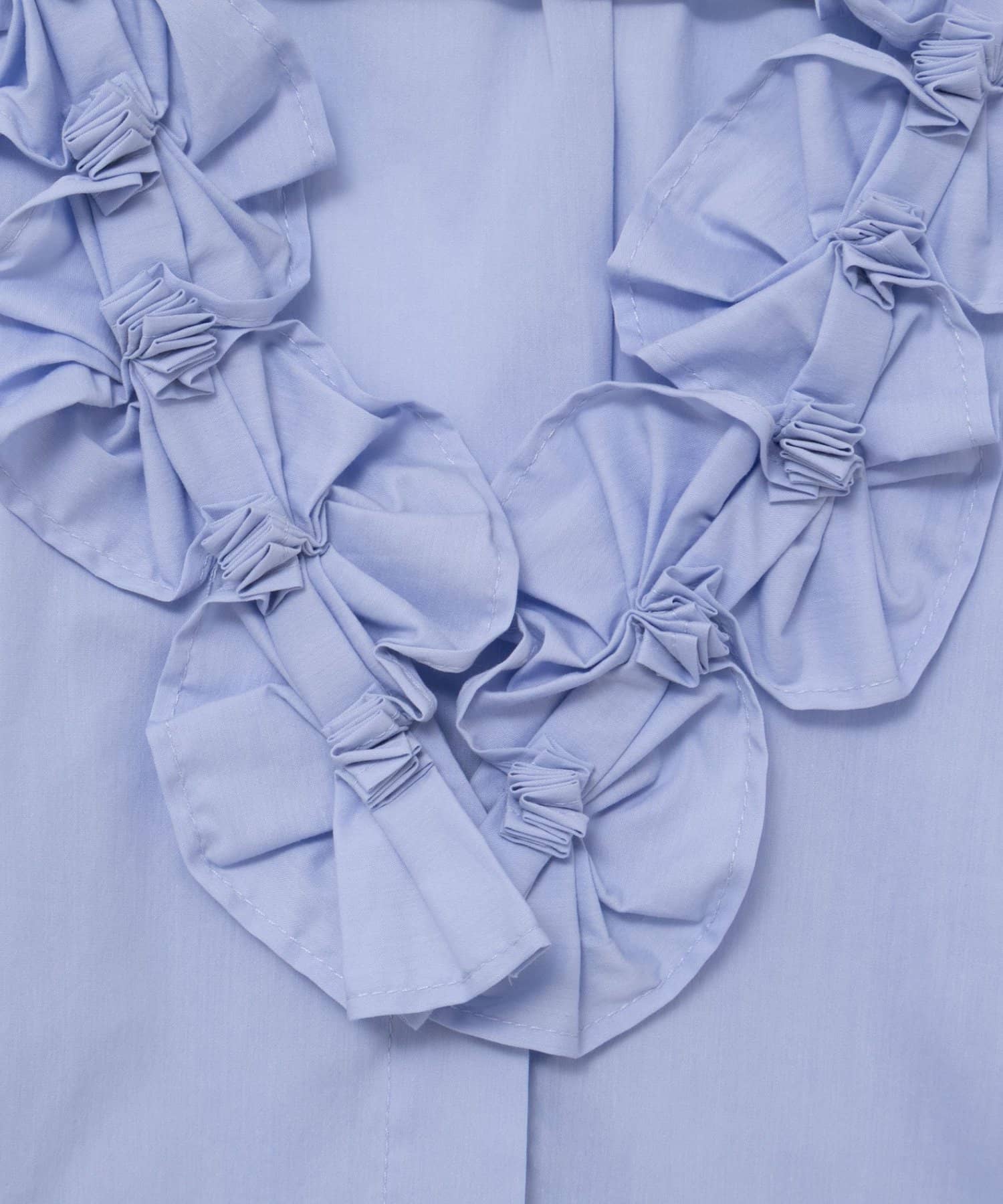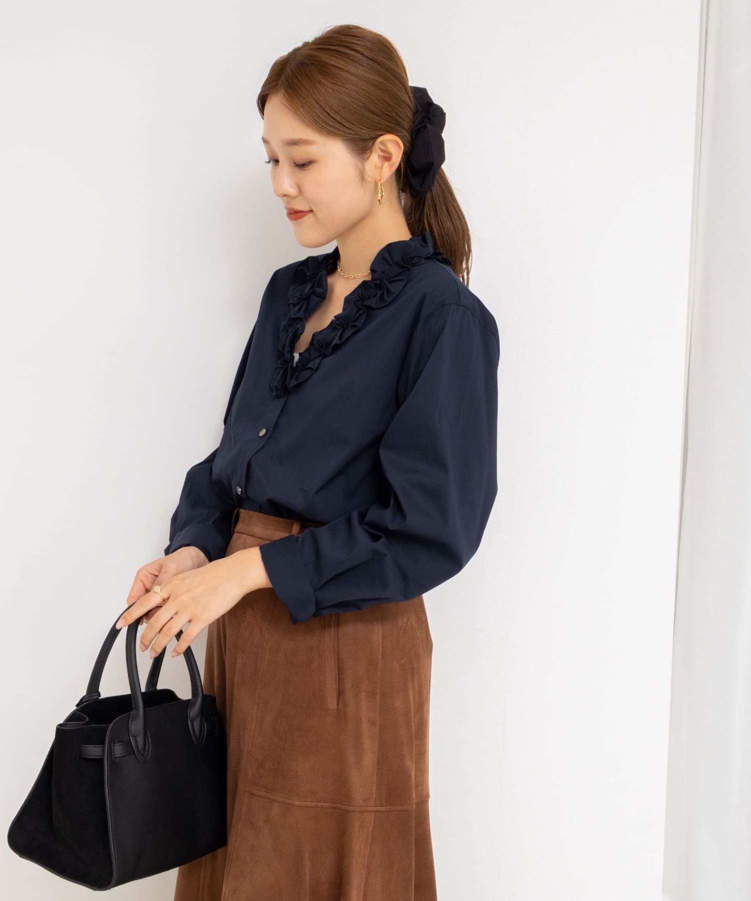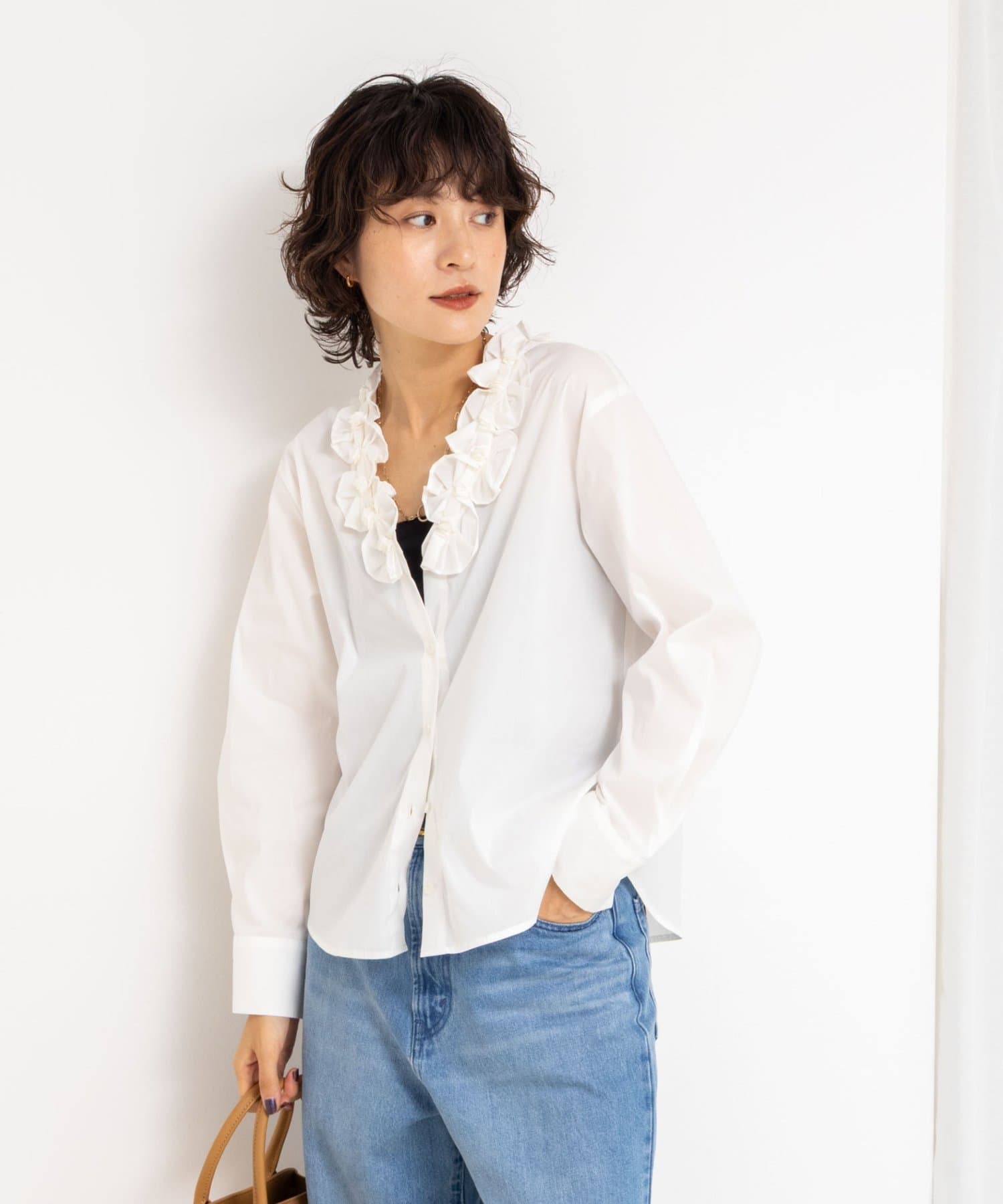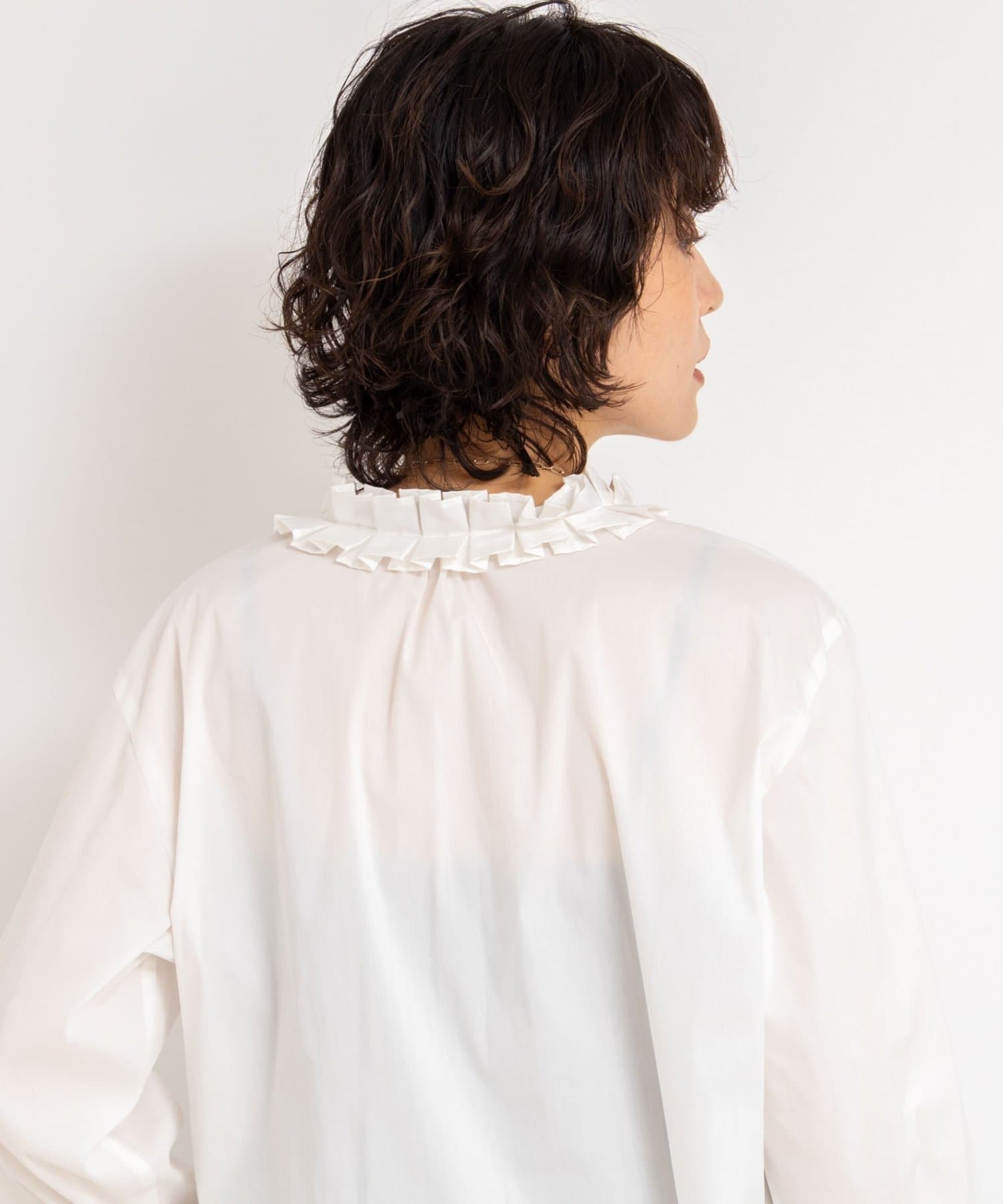 ・フラワーモチーフのようなネックデザインがポイントのブラウス