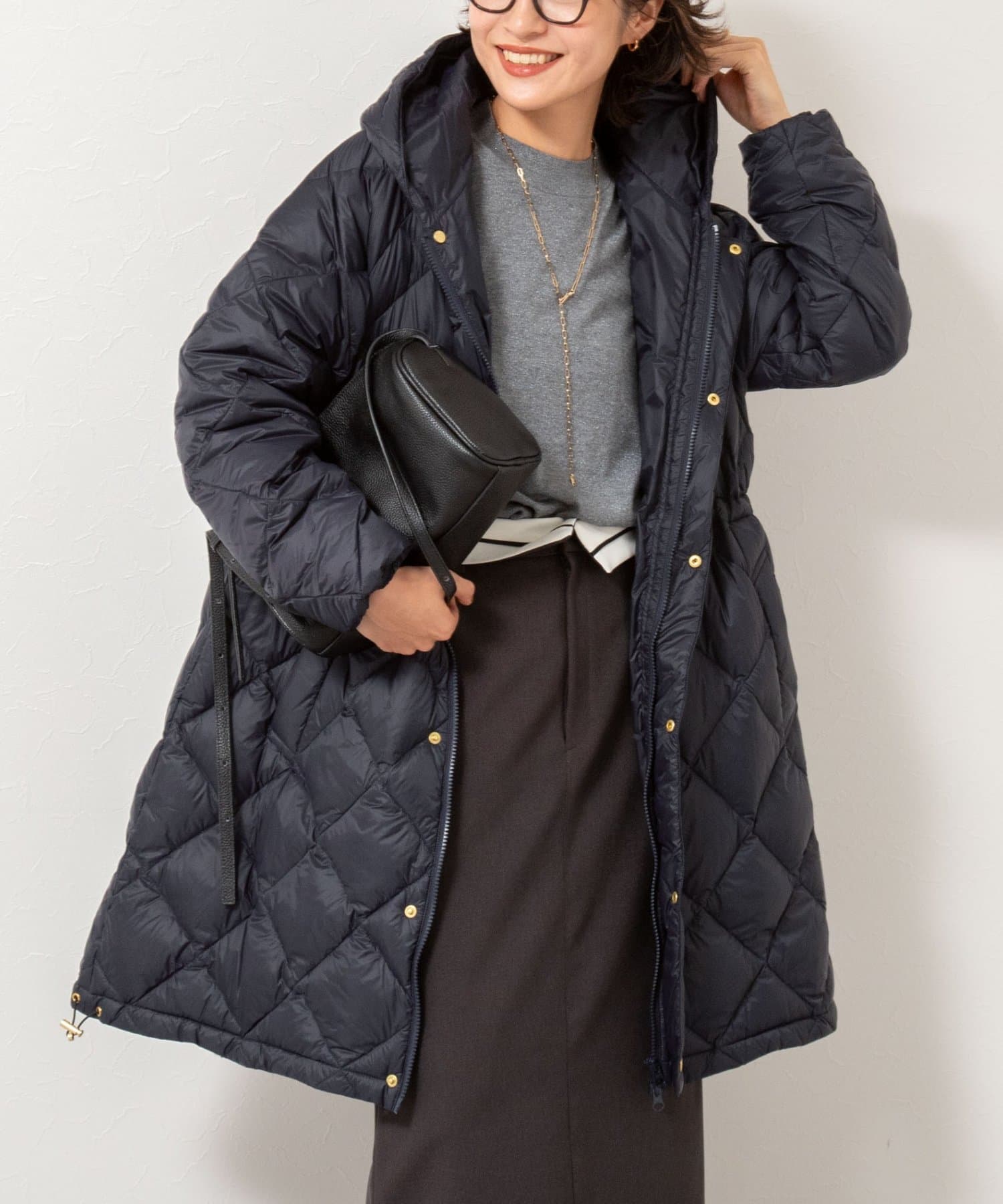 ・程よいボリューム感とAラインシルエットが特徴のミドル丈ダウン