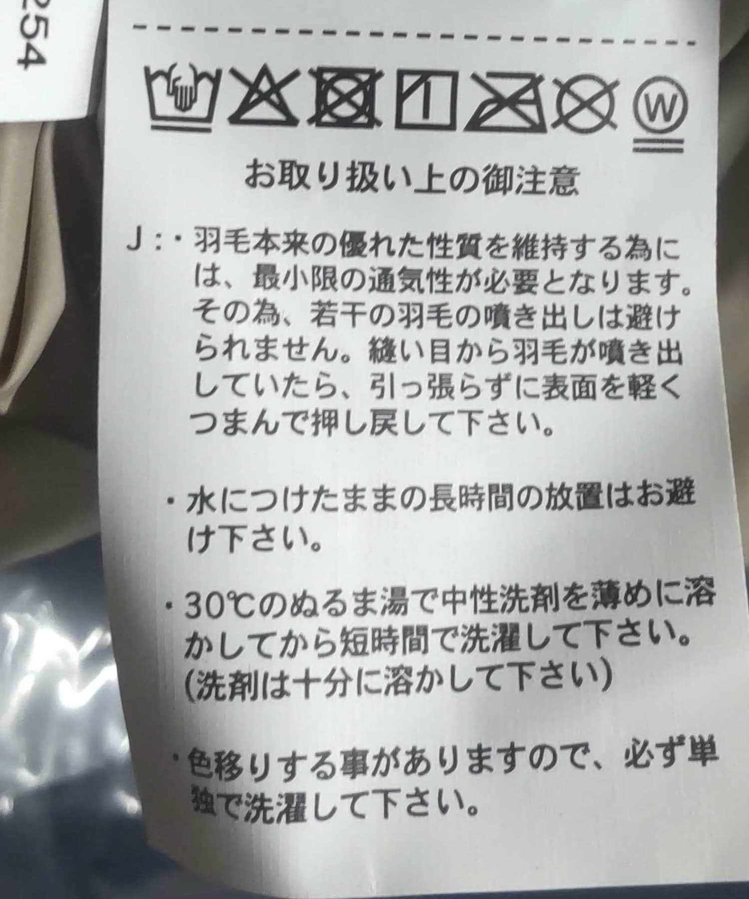 ダウンは天然由来の素材であるため、稀に濃い色の羽が混入することがございます。