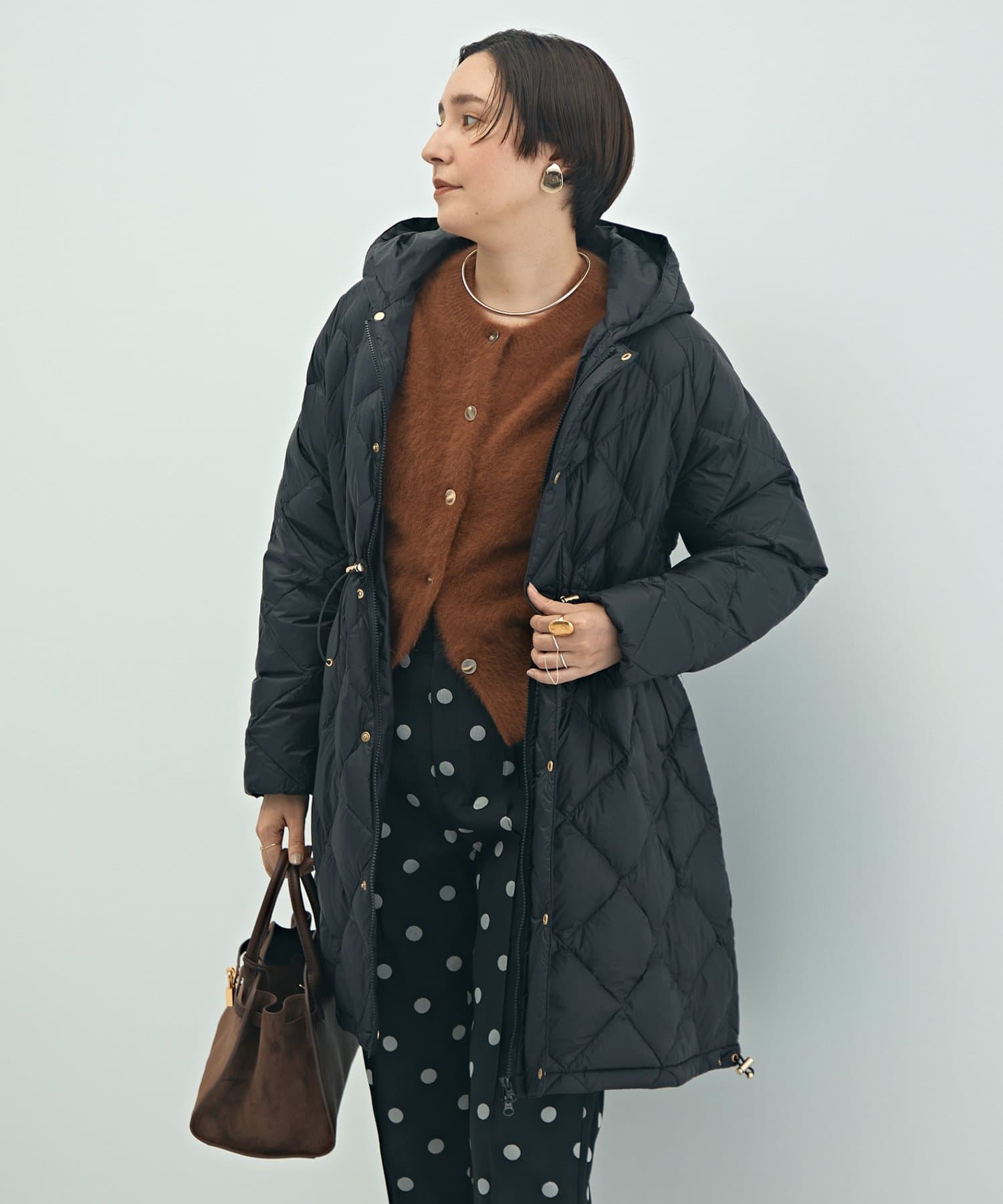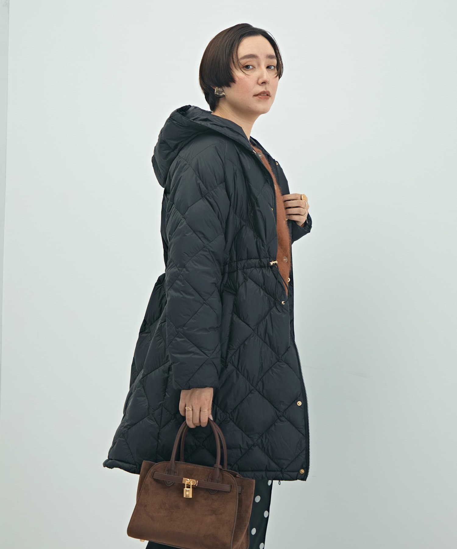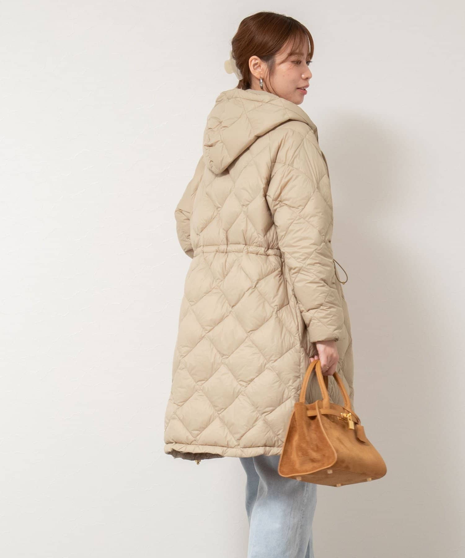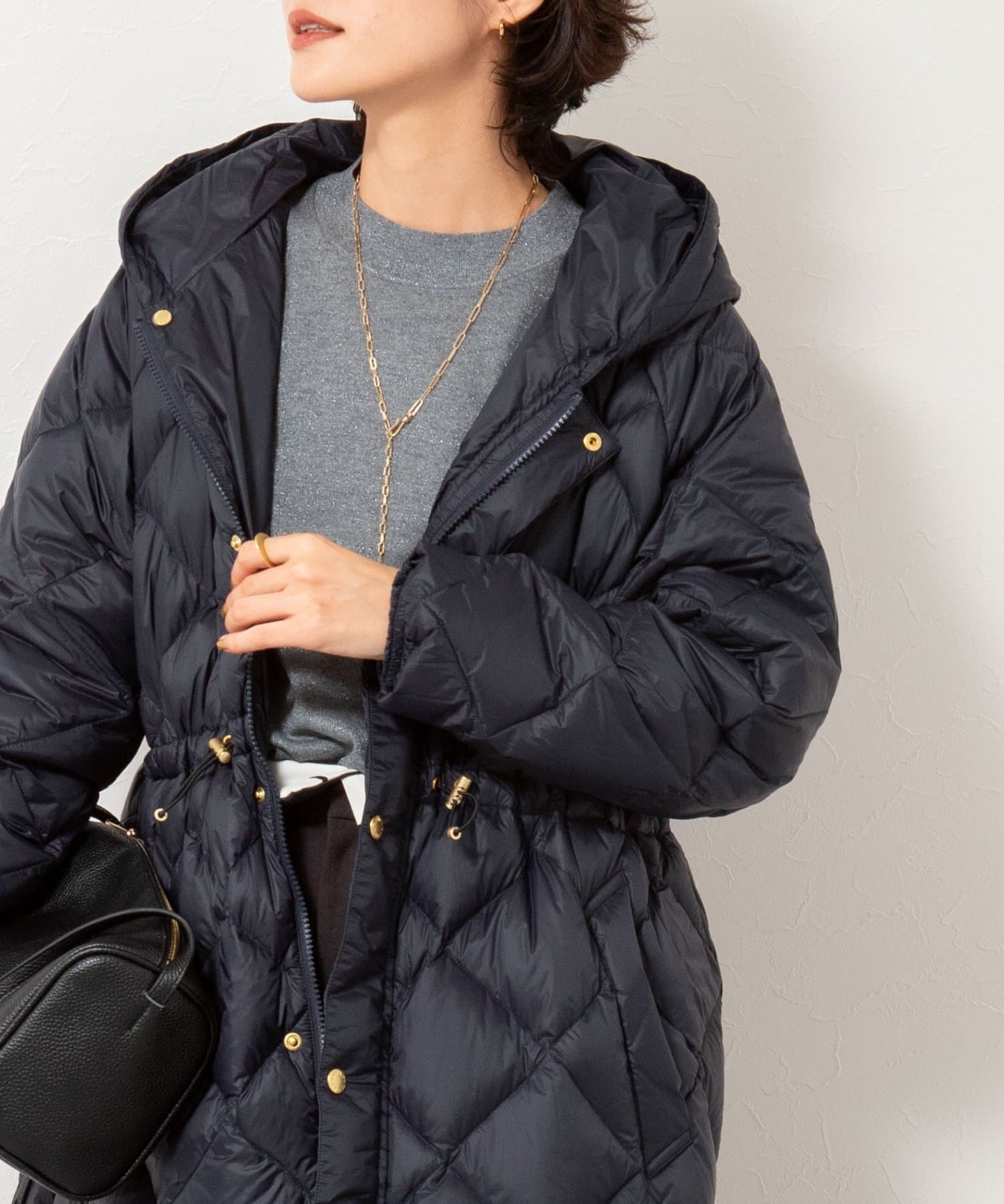 ・程よいボリューム感とAラインシルエットが特徴のミドル丈ダウン