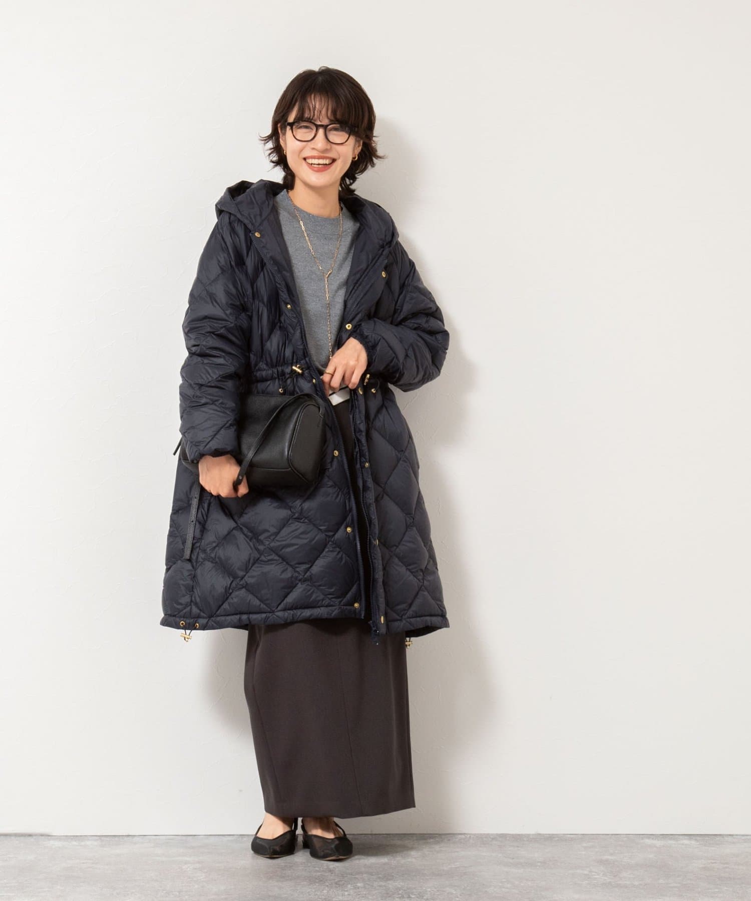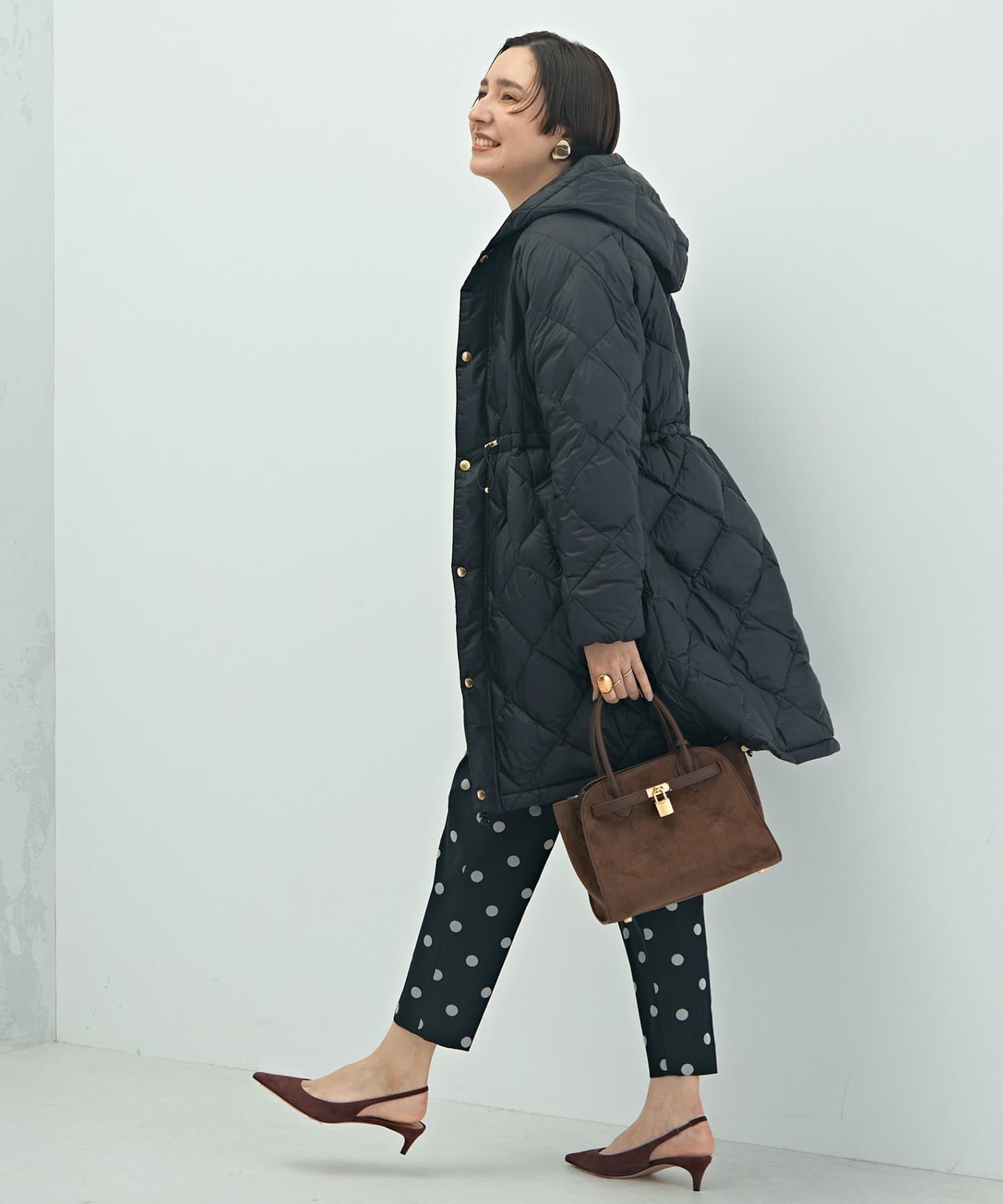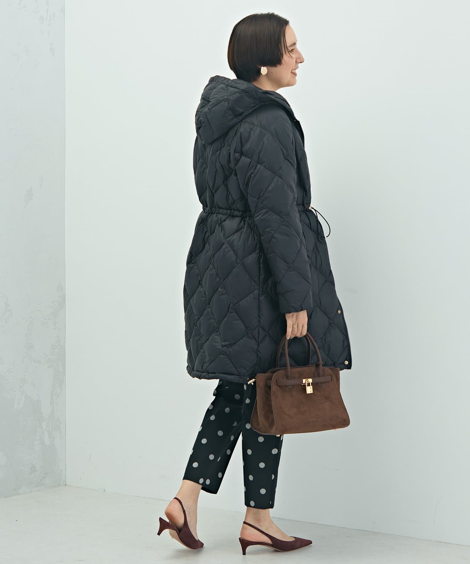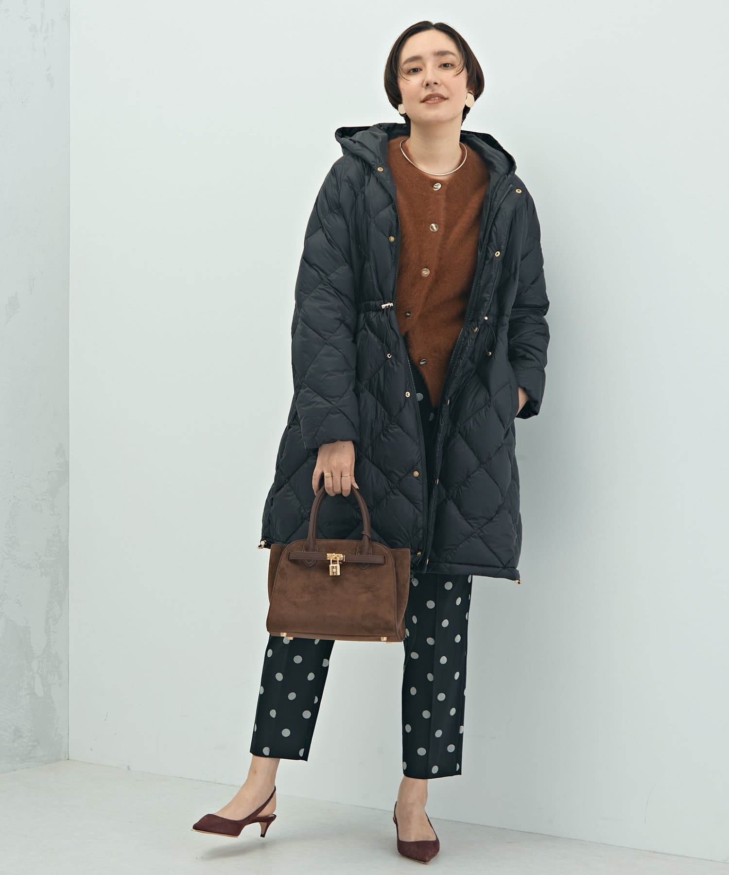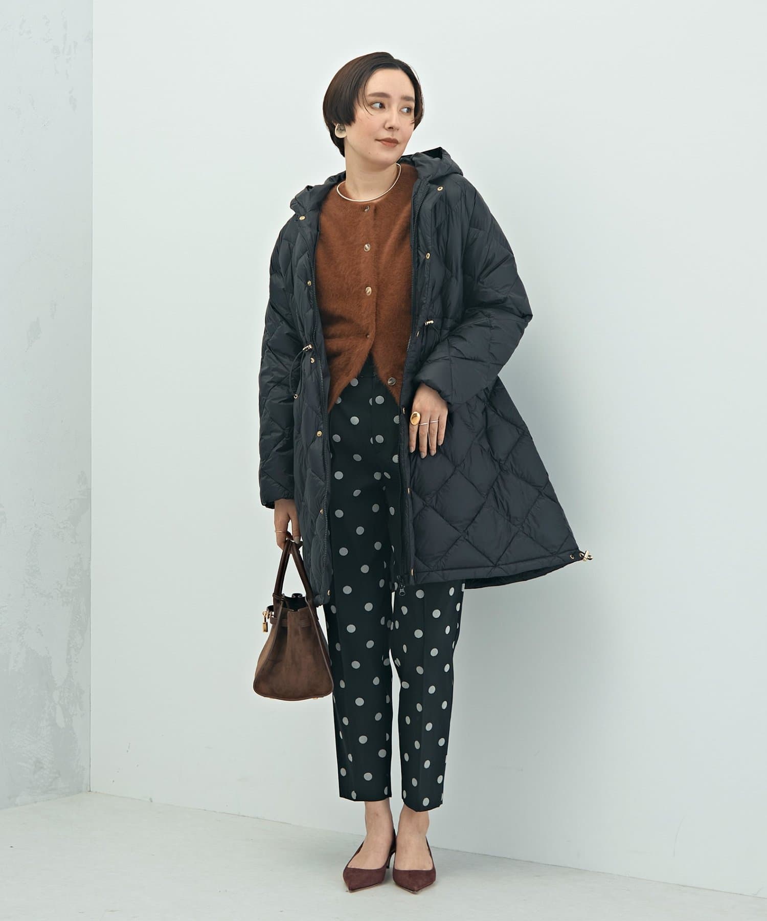 ・程よいボリューム感とAラインシルエットが特徴のミドル丈ダウン