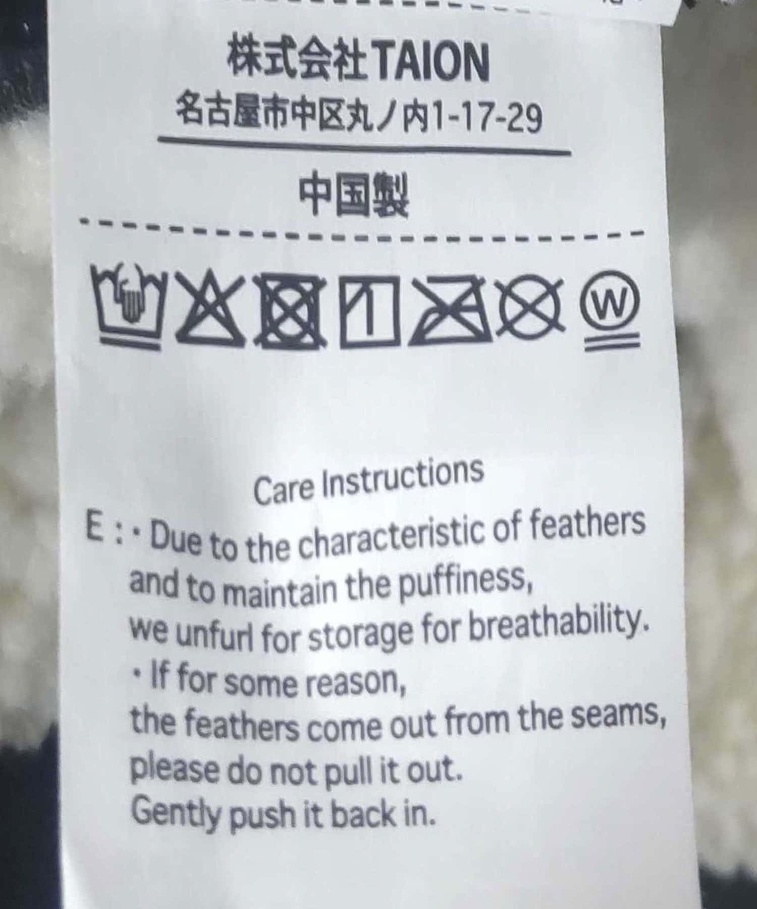 ダウンは天然由来の素材であるため、稀に濃い色の羽が混入することがございます。