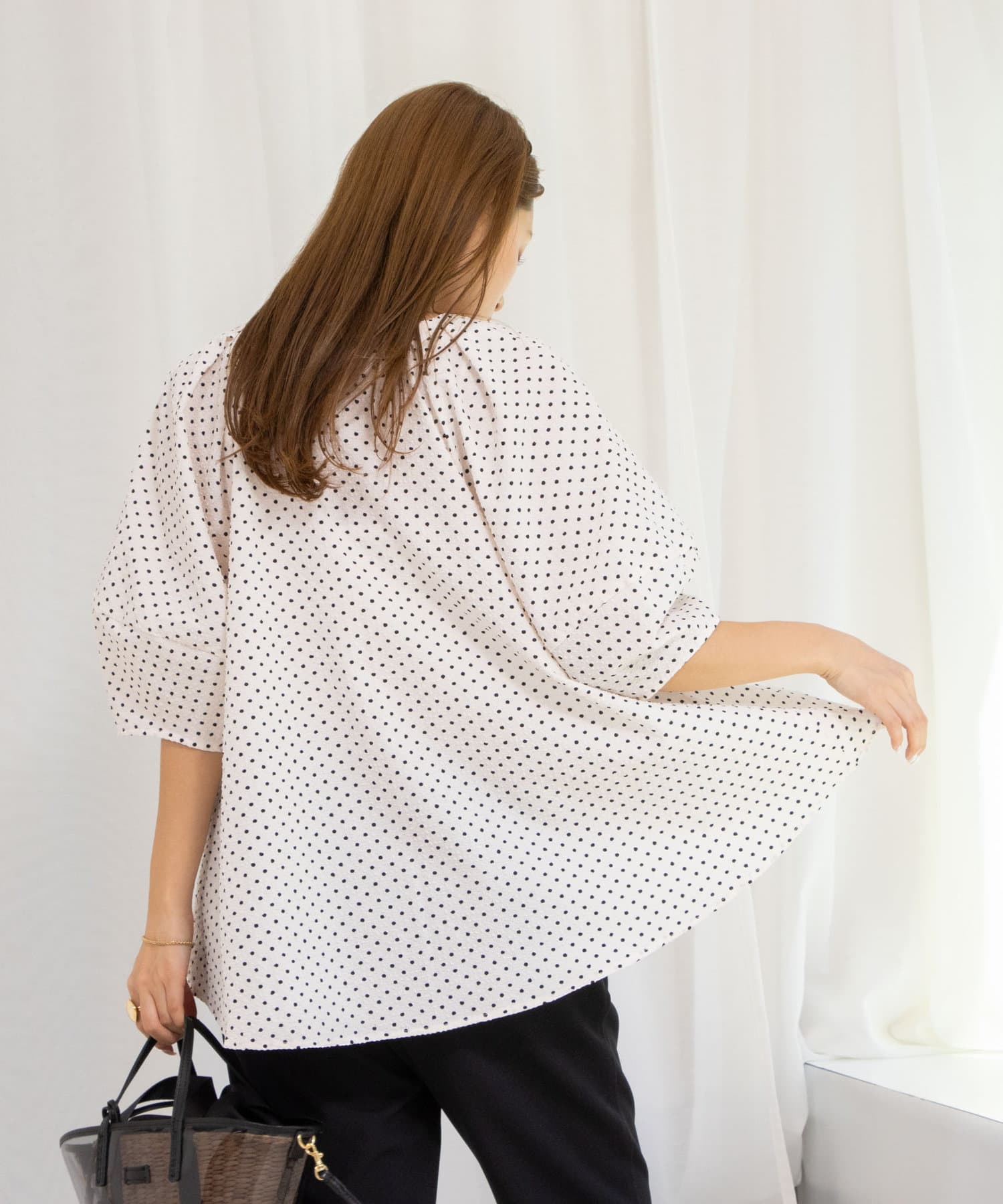 TOP > NOLLEY'S > レディース > トップス > シャツ/ブラウス(プルオーバー) > 【WEB限定】サッカードット5分袖タックブラウス
