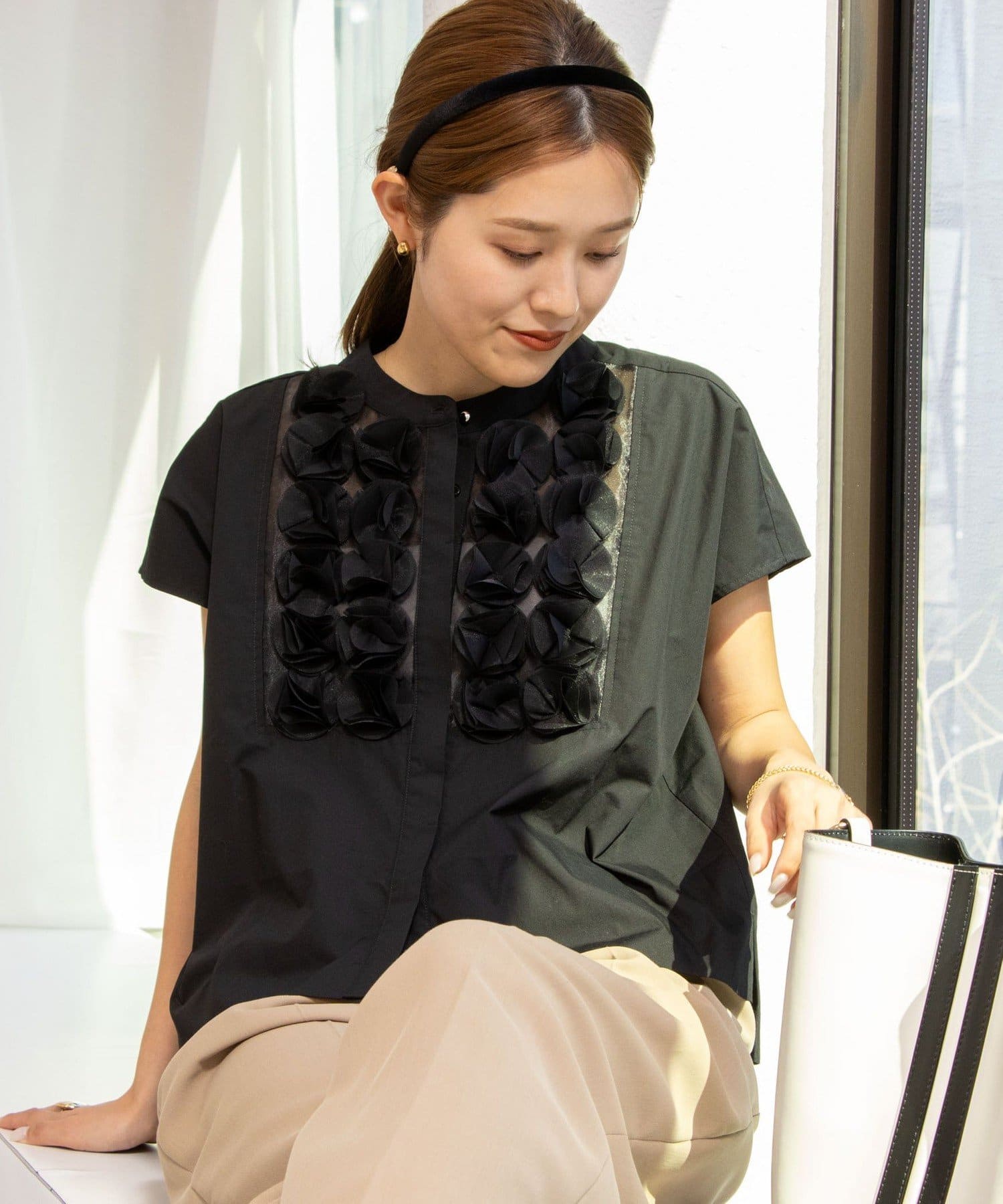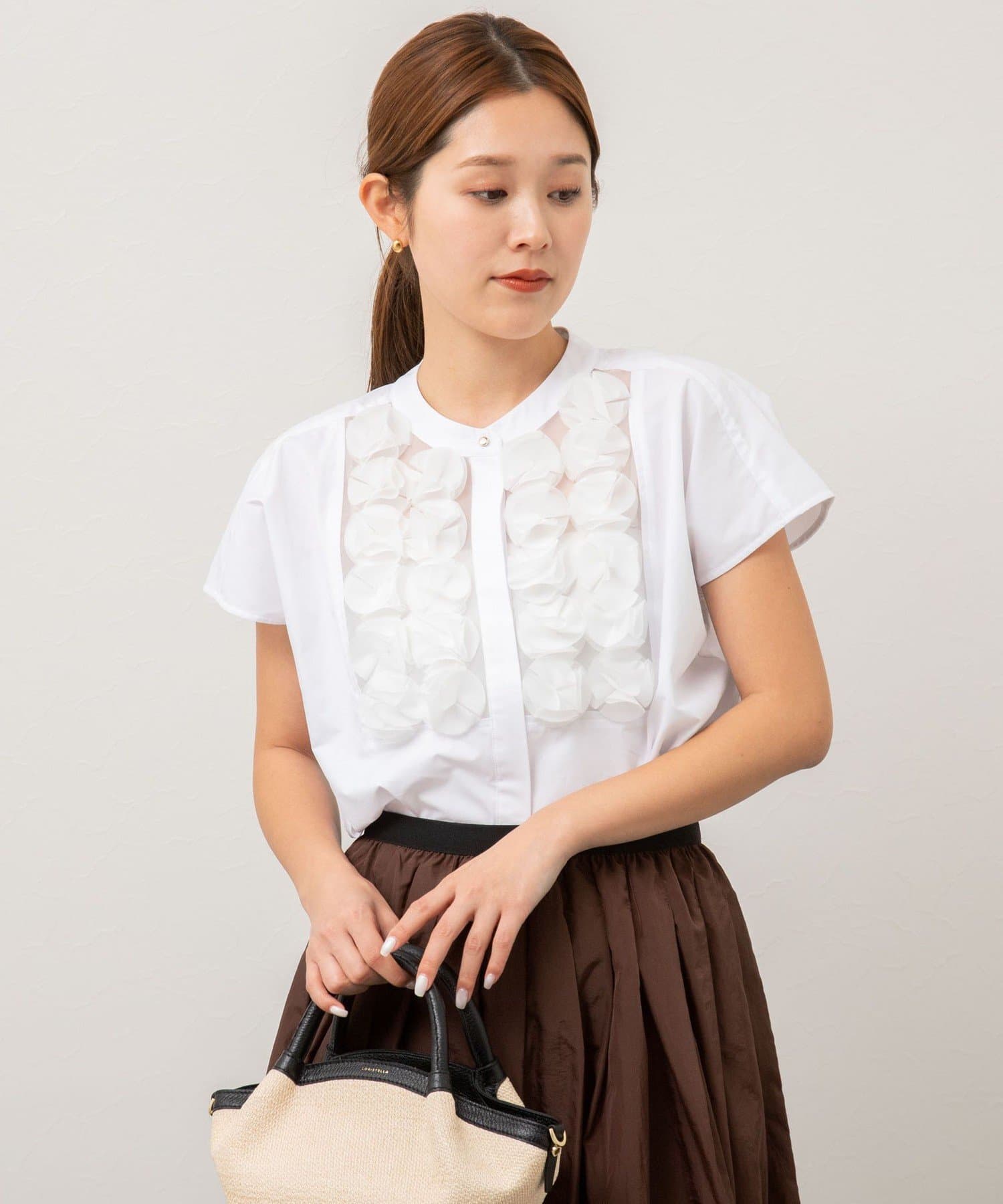 ・フロントのフラワーモチーフが可愛いブラウス