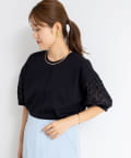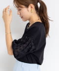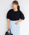 ・袖がシアーなドット柄の上品なパフスリーブカットソー
