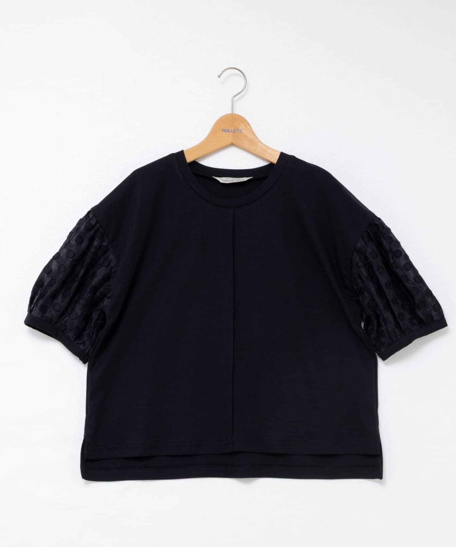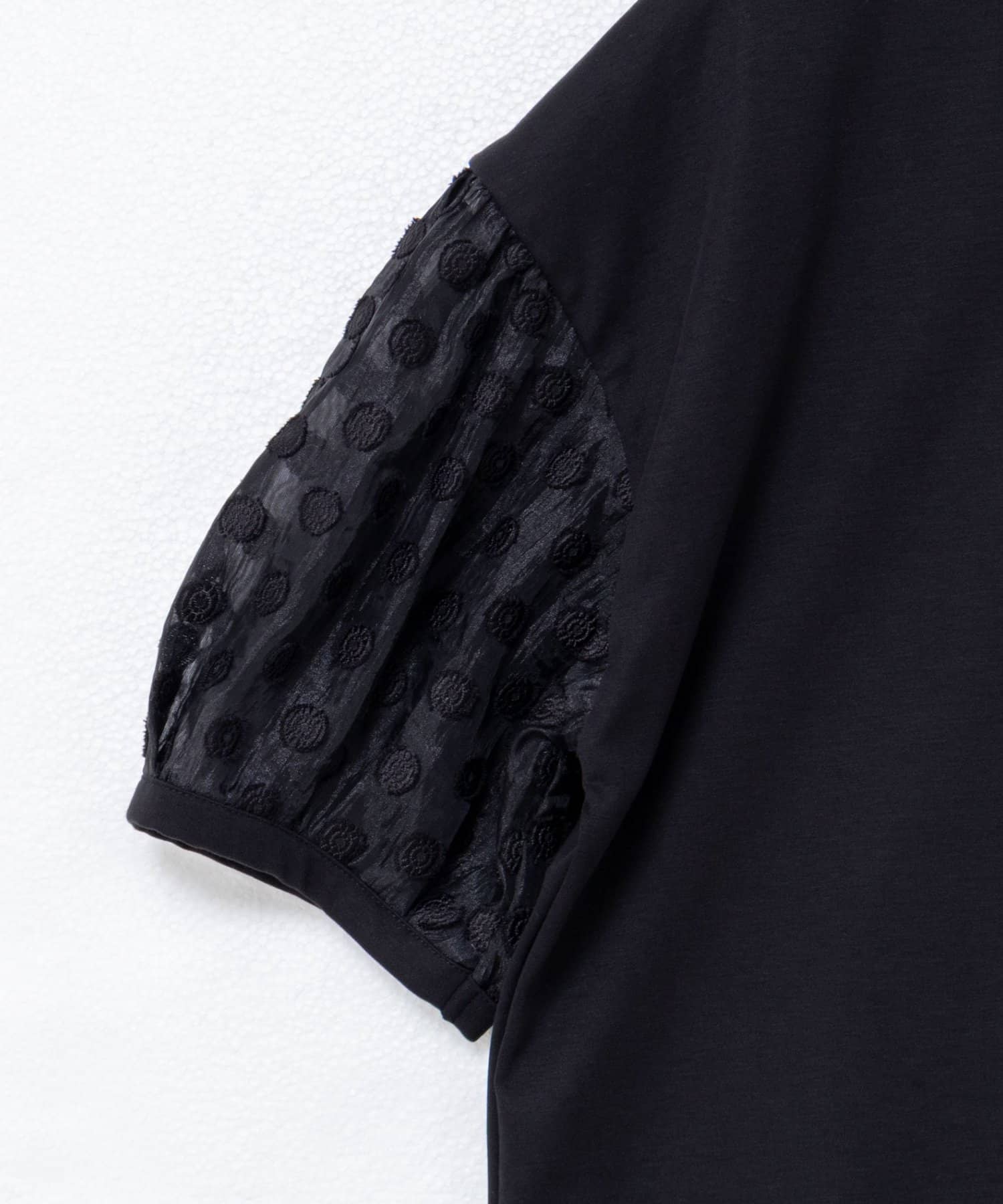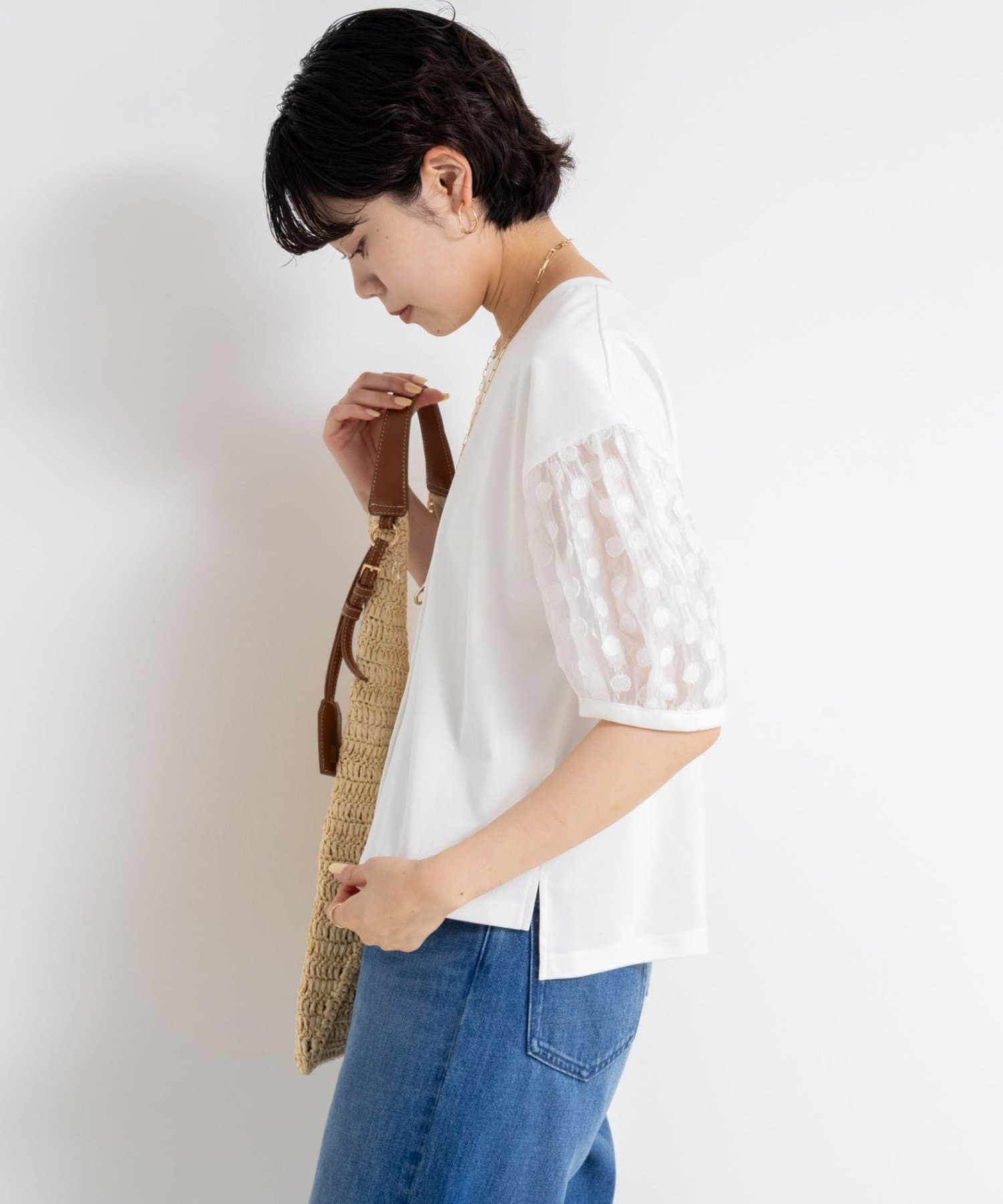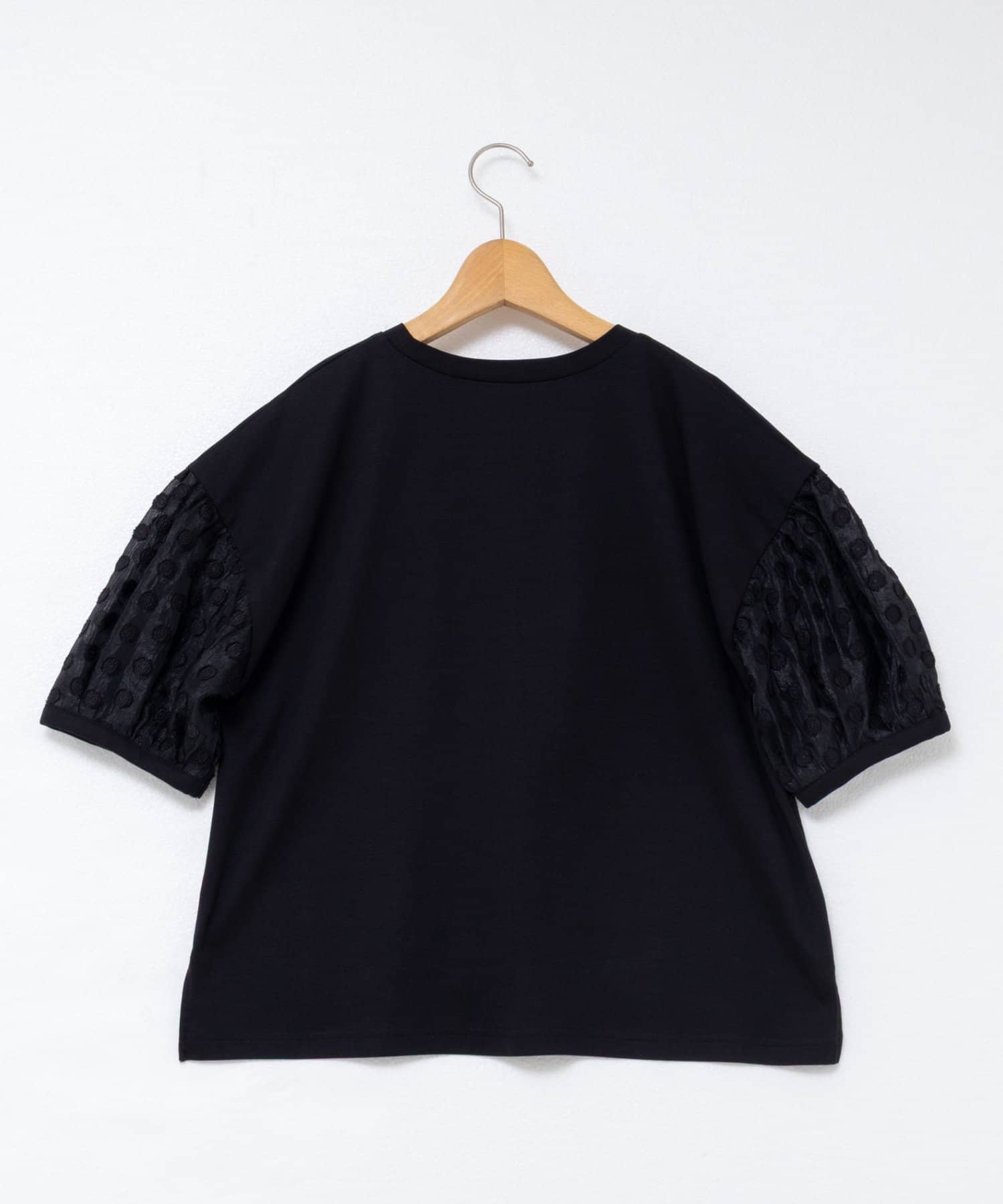 ・袖がシアーなドット柄の上品なパフスリーブカットソー