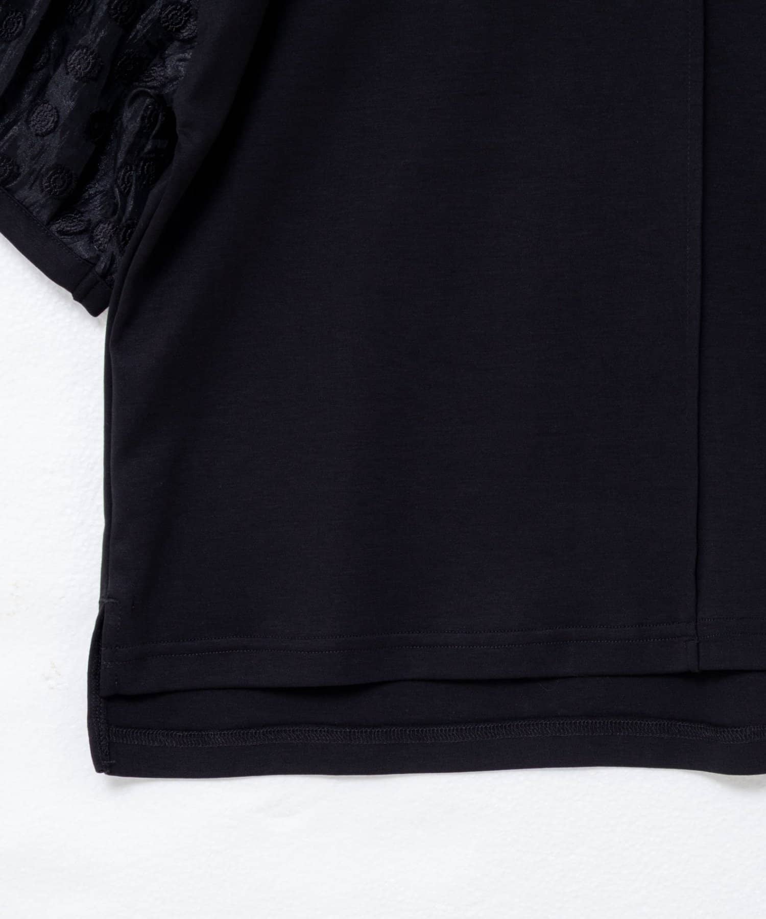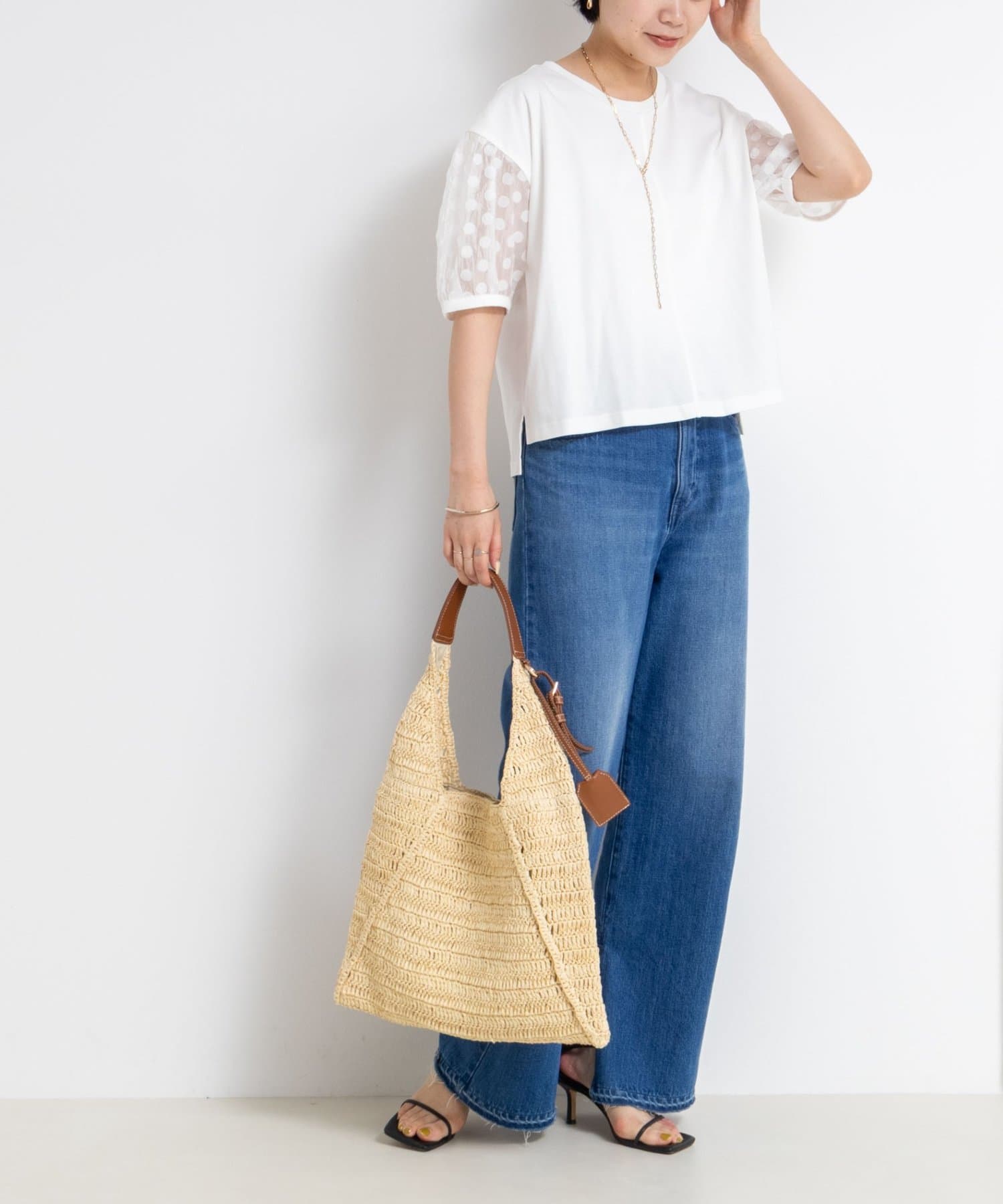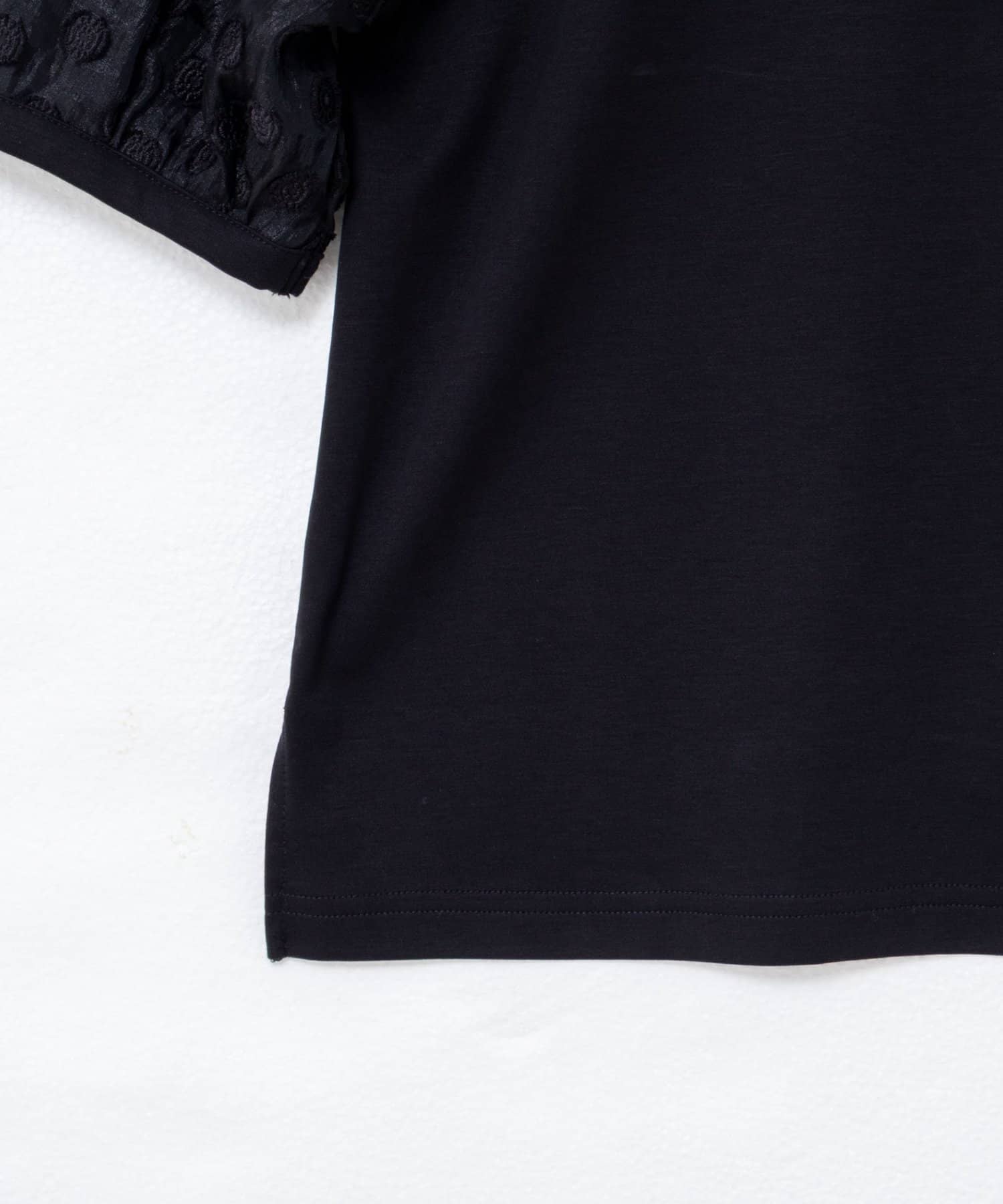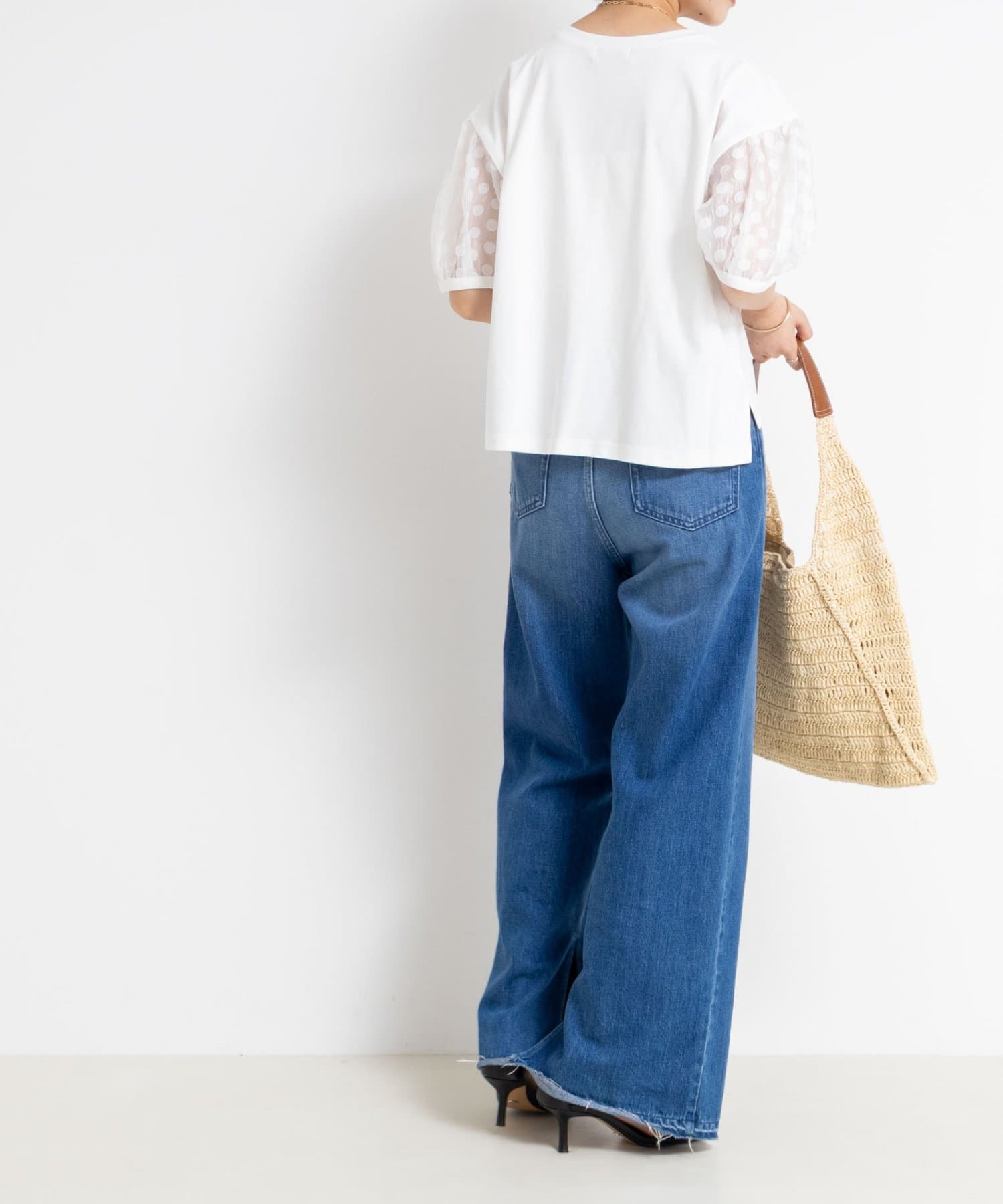 ・袖がシアーなドット柄の上品なパフスリーブカットソー