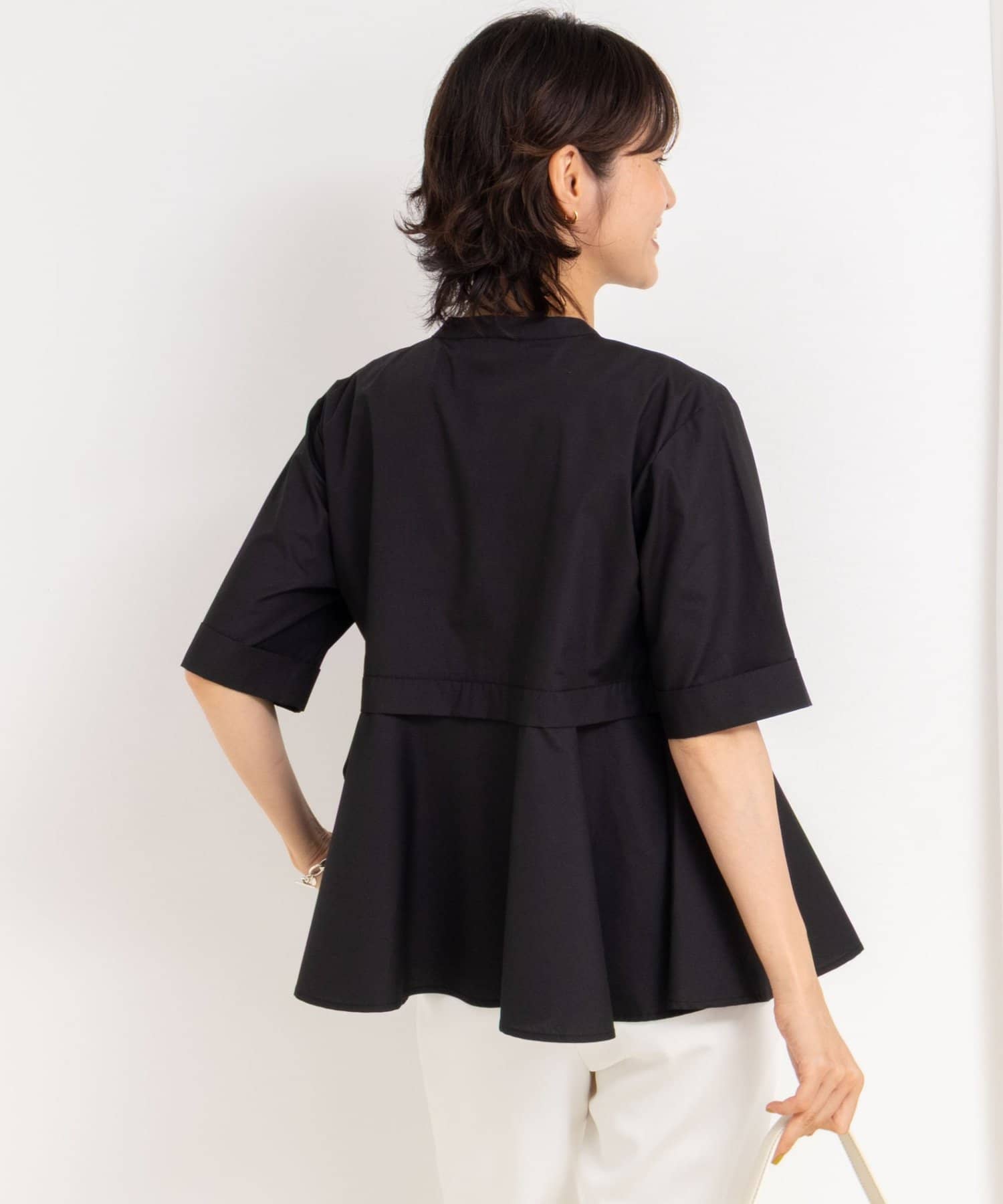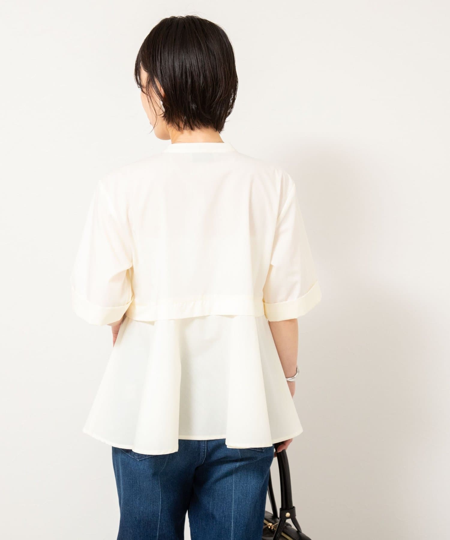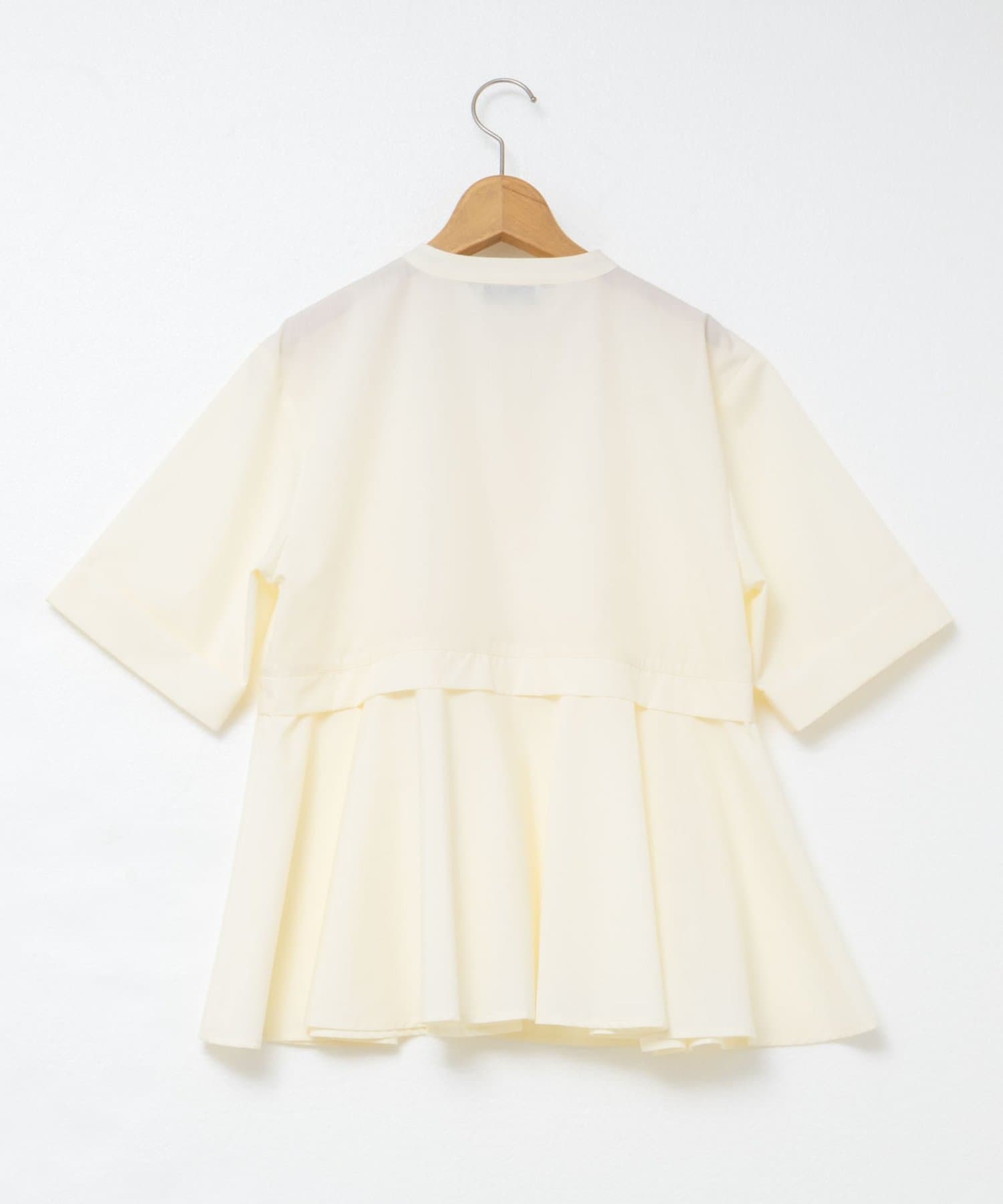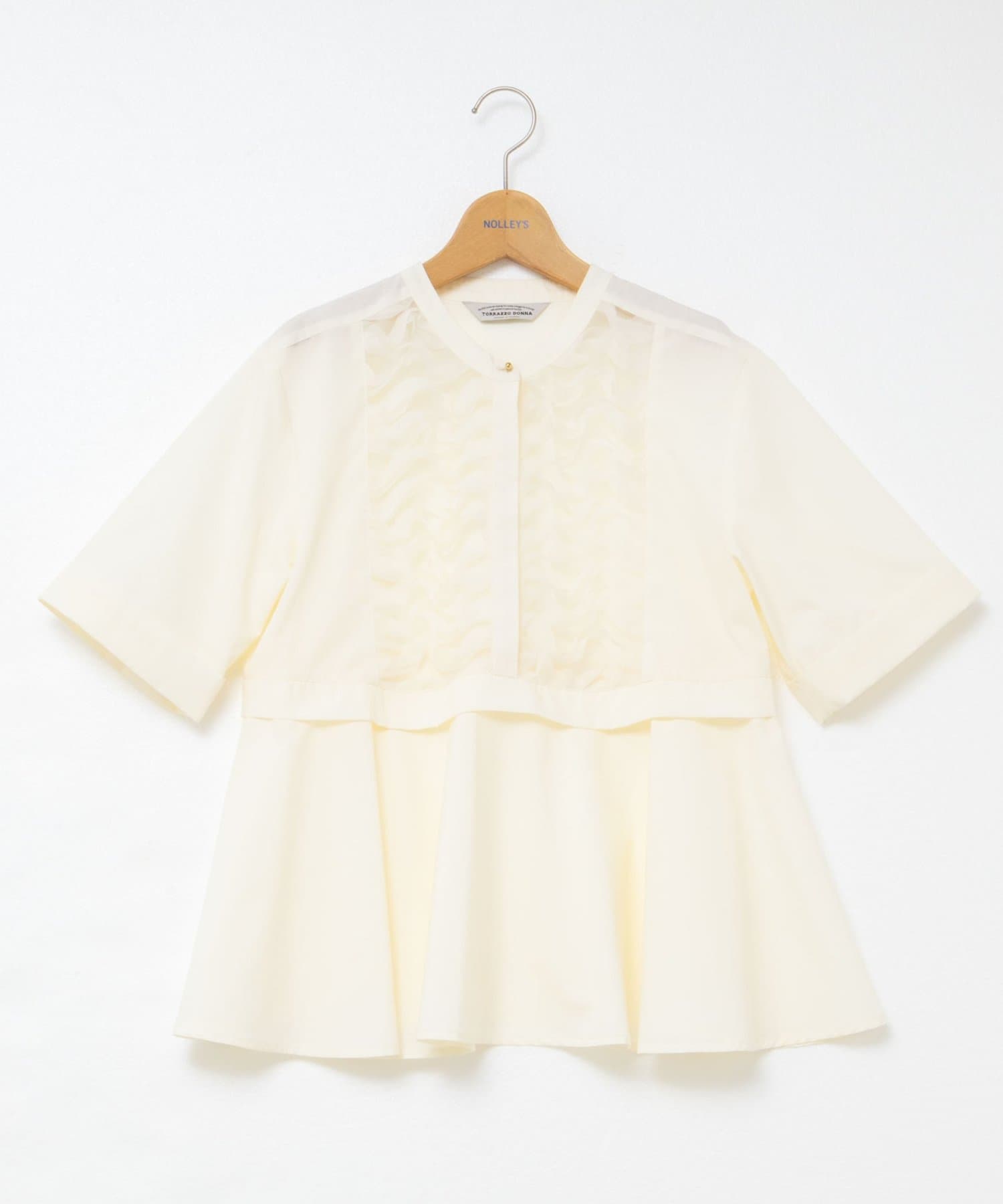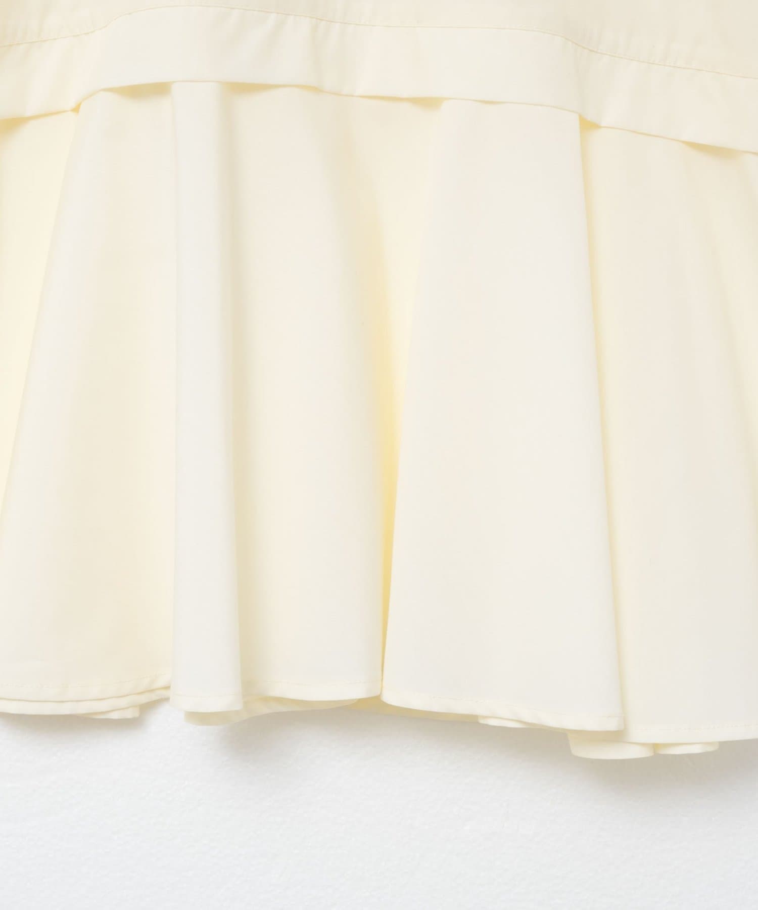 ・フロントのチュールフリルがポイントのペプラムブラウス