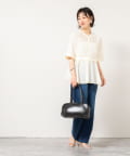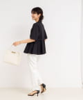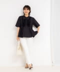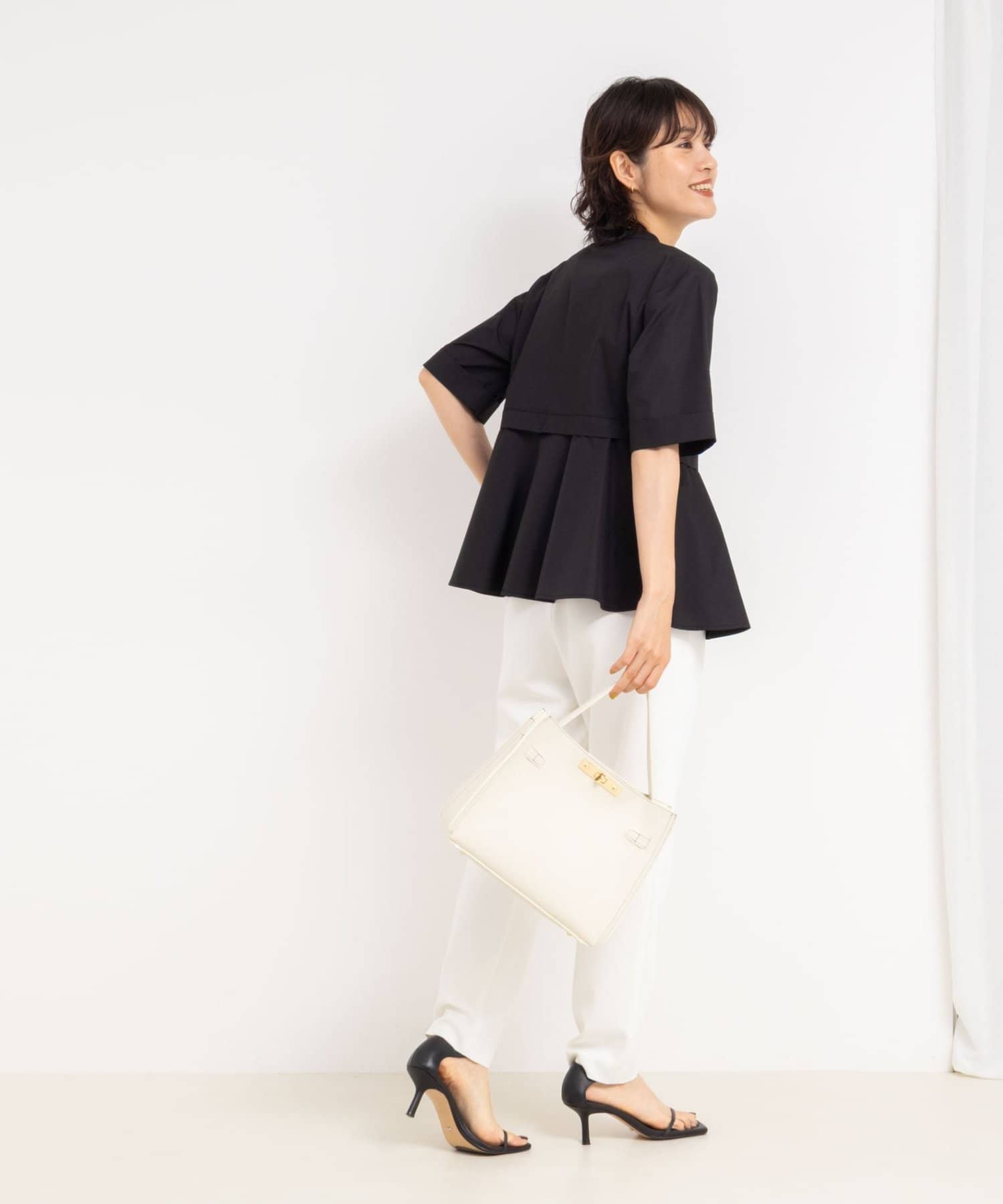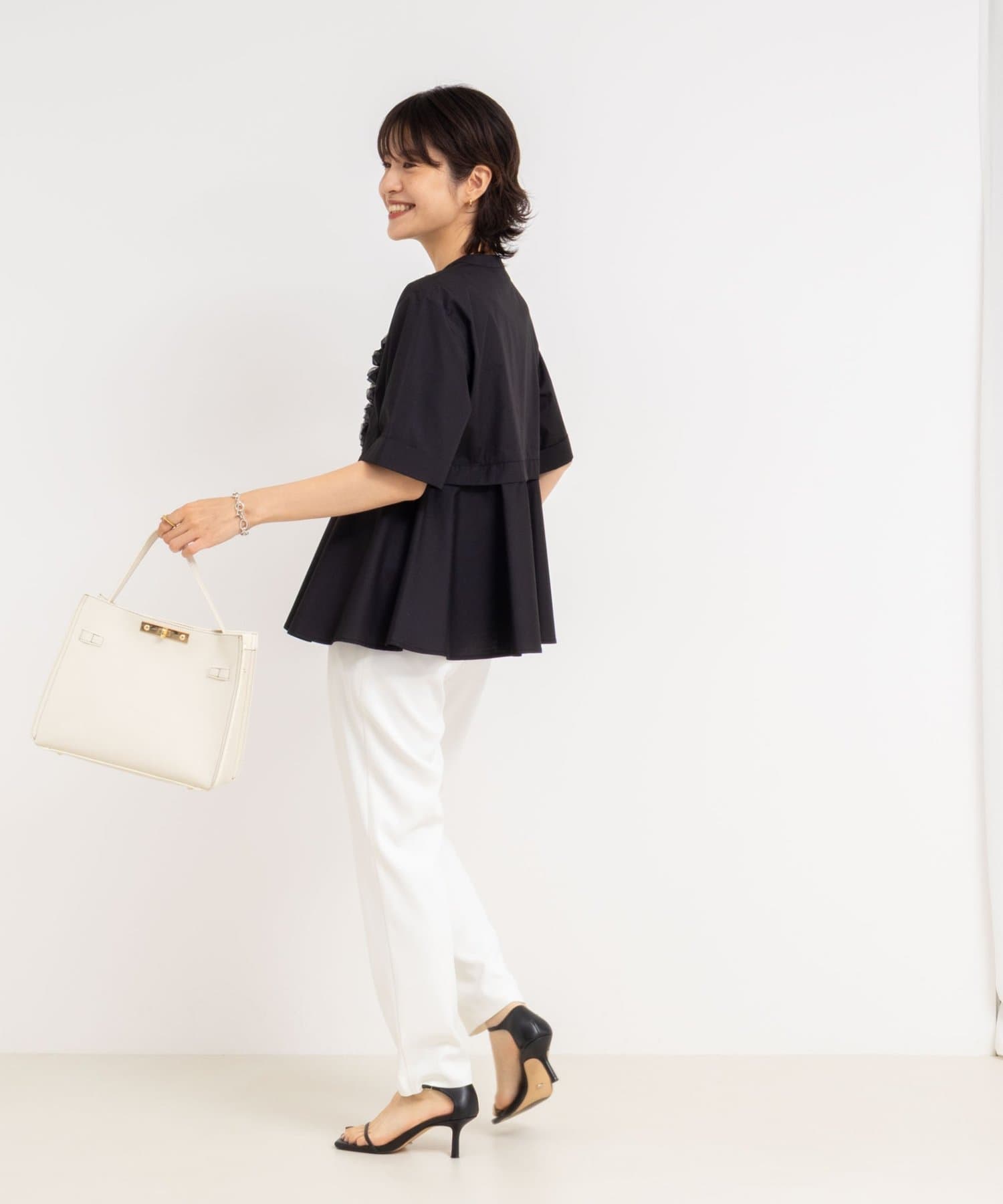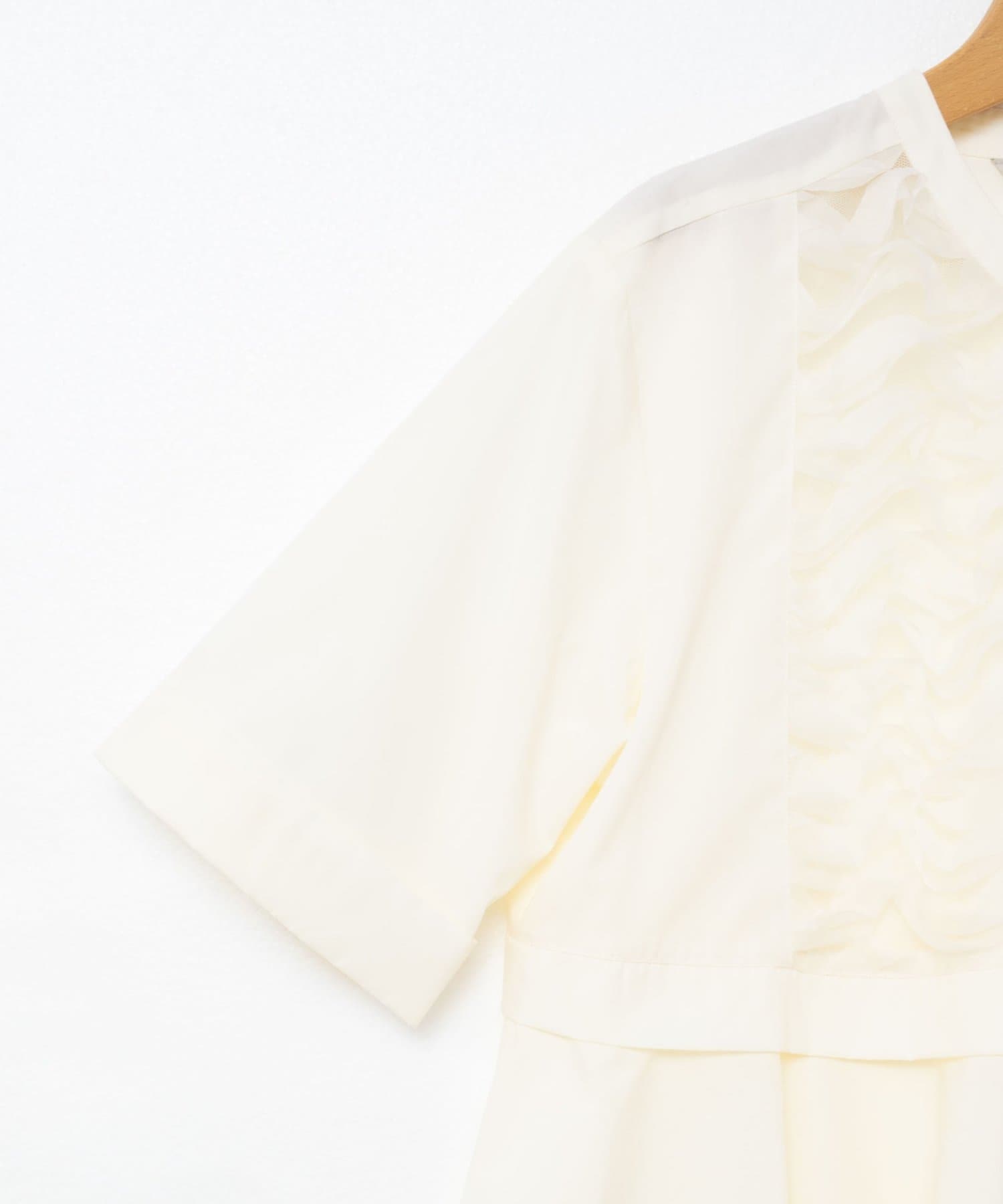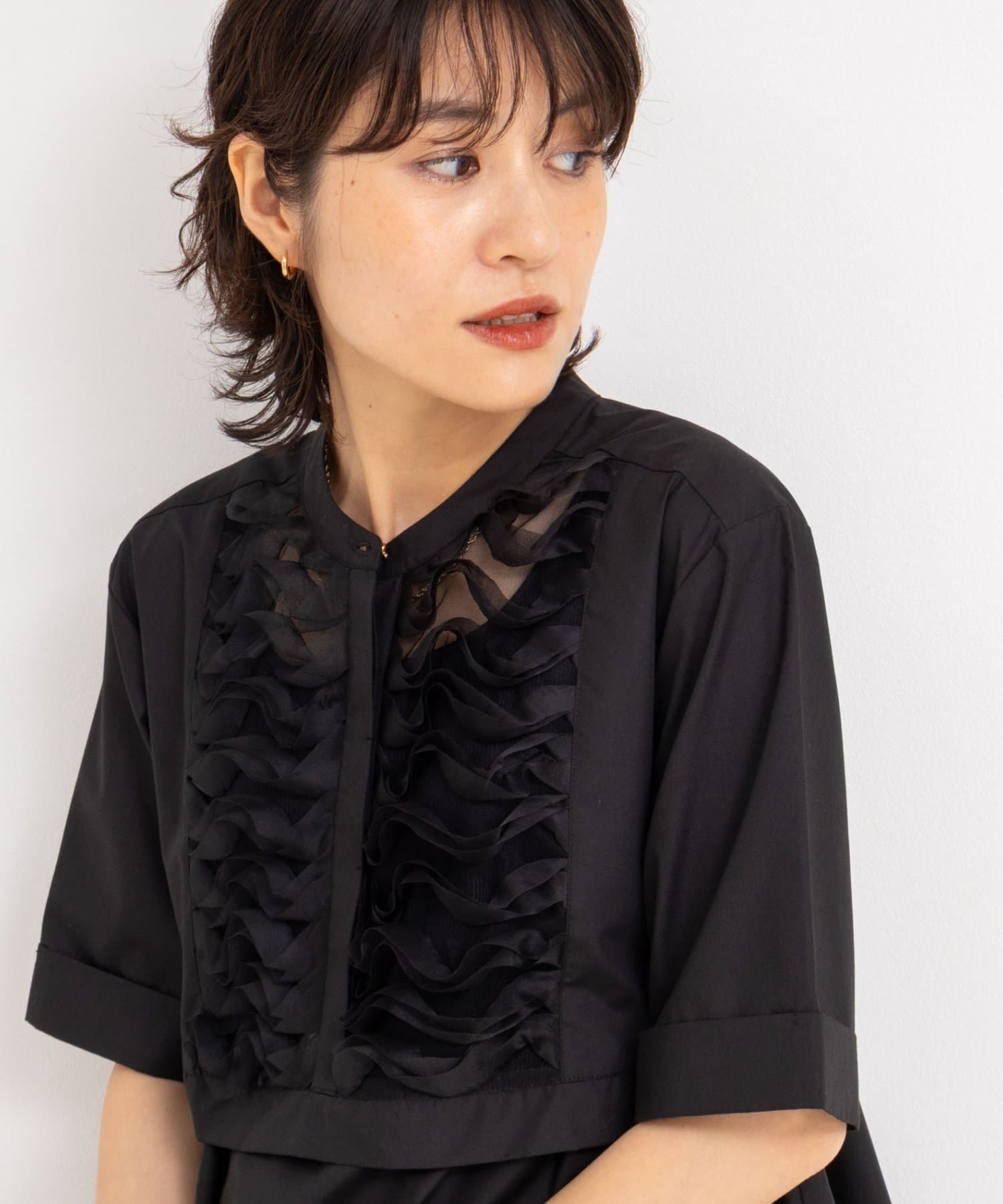 ・フロントのチュールフリルがポイントのペプラムブラウス