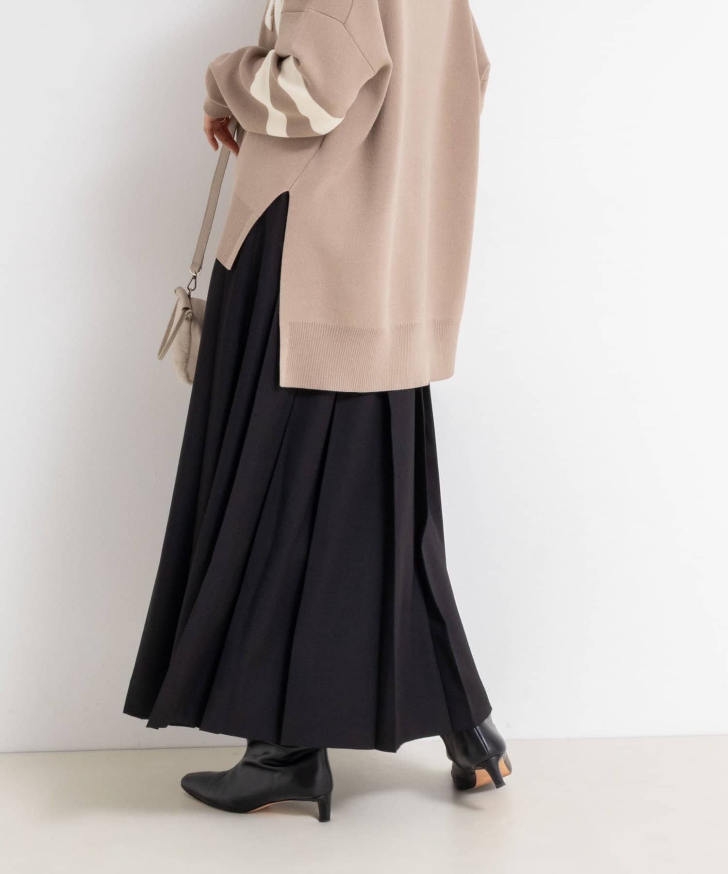 ・中ヒップまでプリーツが開かない仕様で、お腹周りスッキリ見え!
