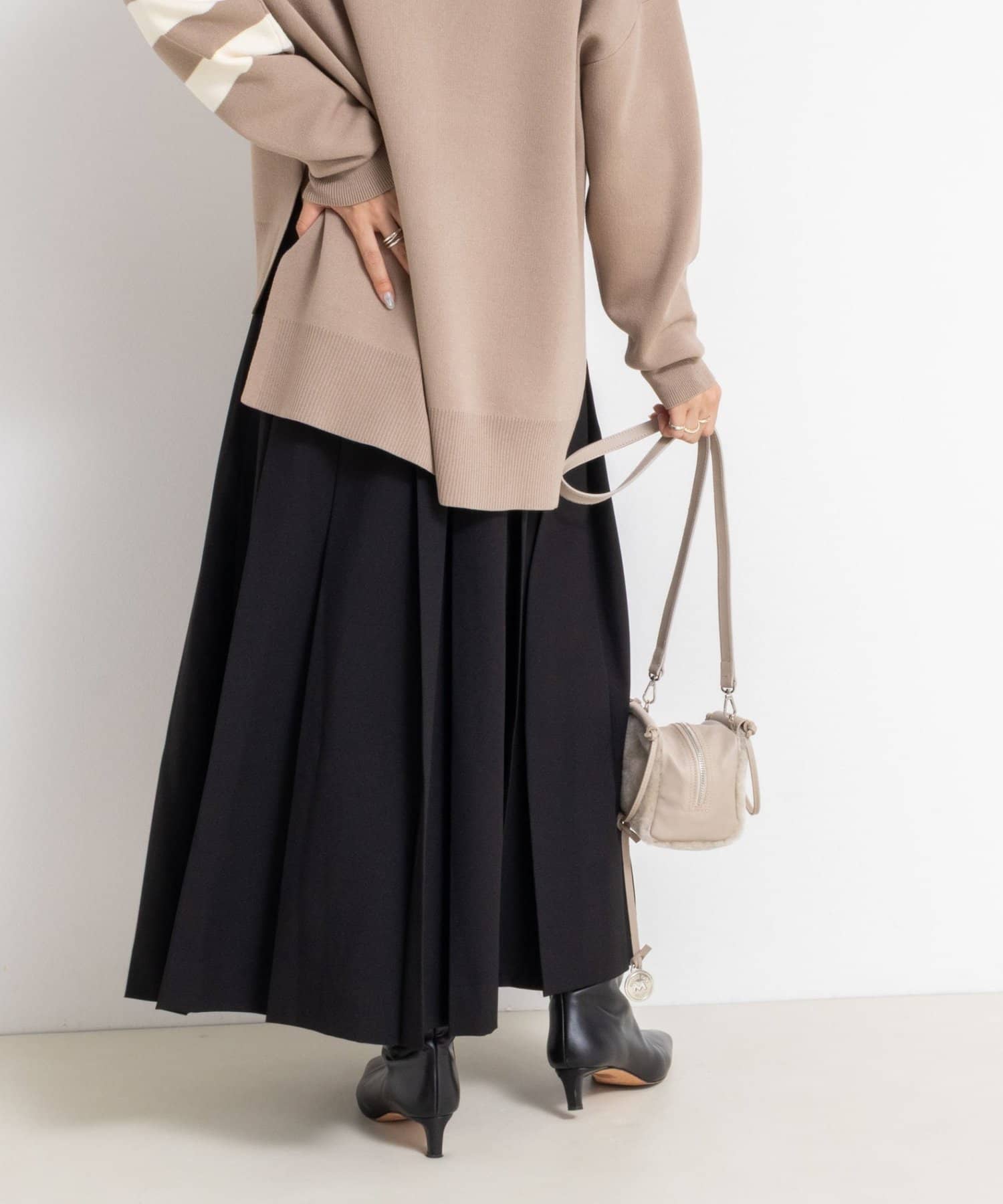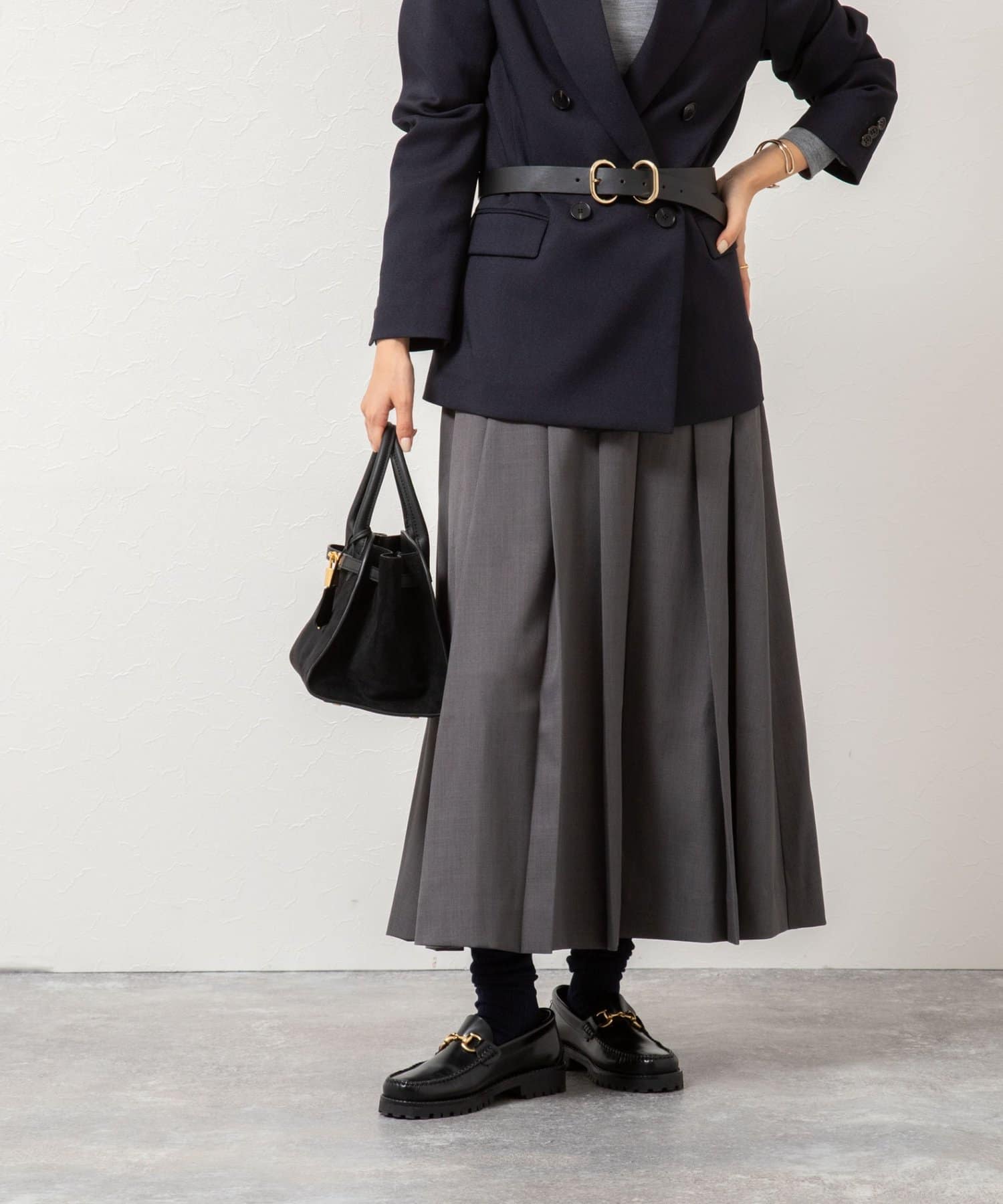・大きめなプリーツが目を引くミドル丈のプリーツスカート