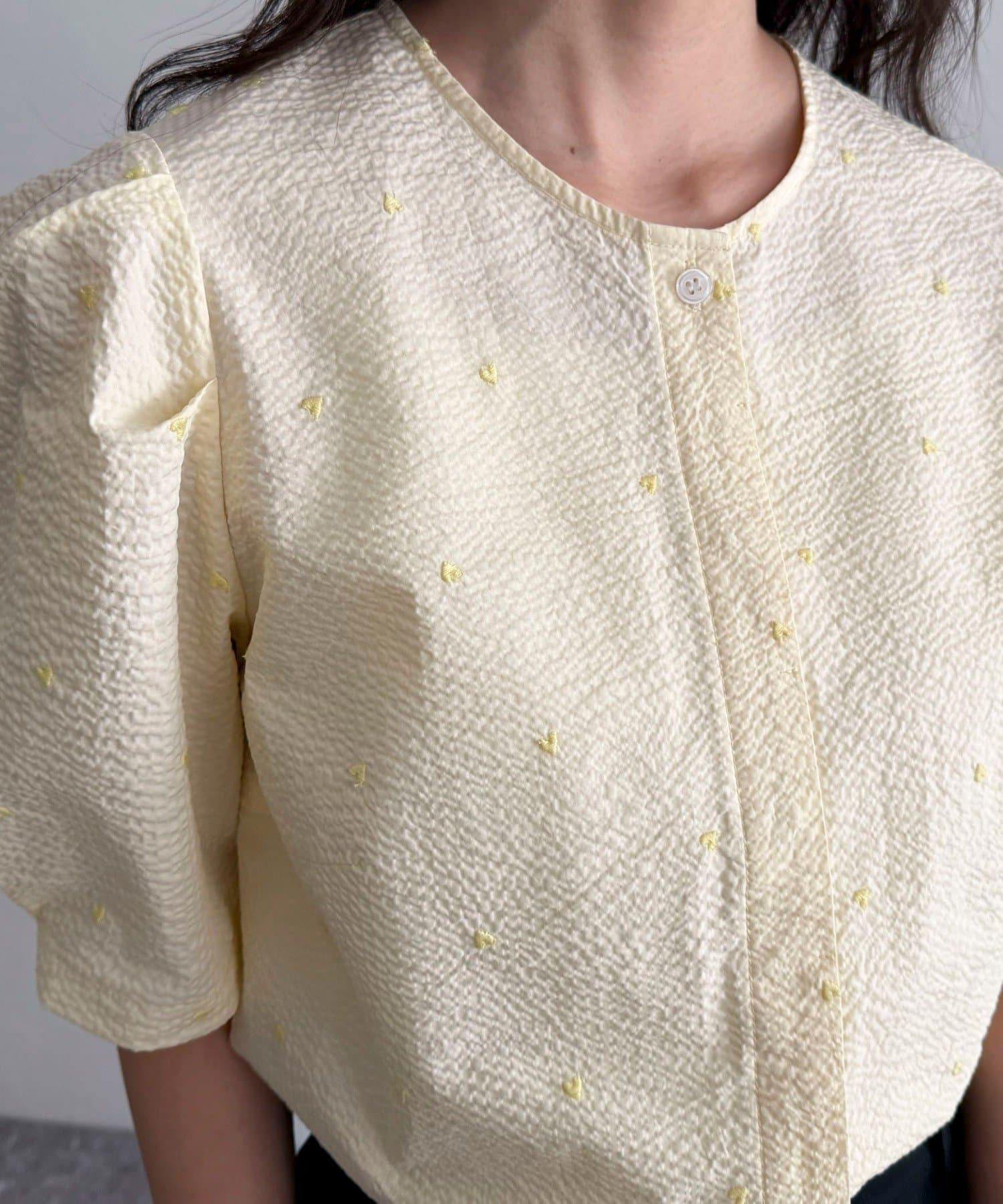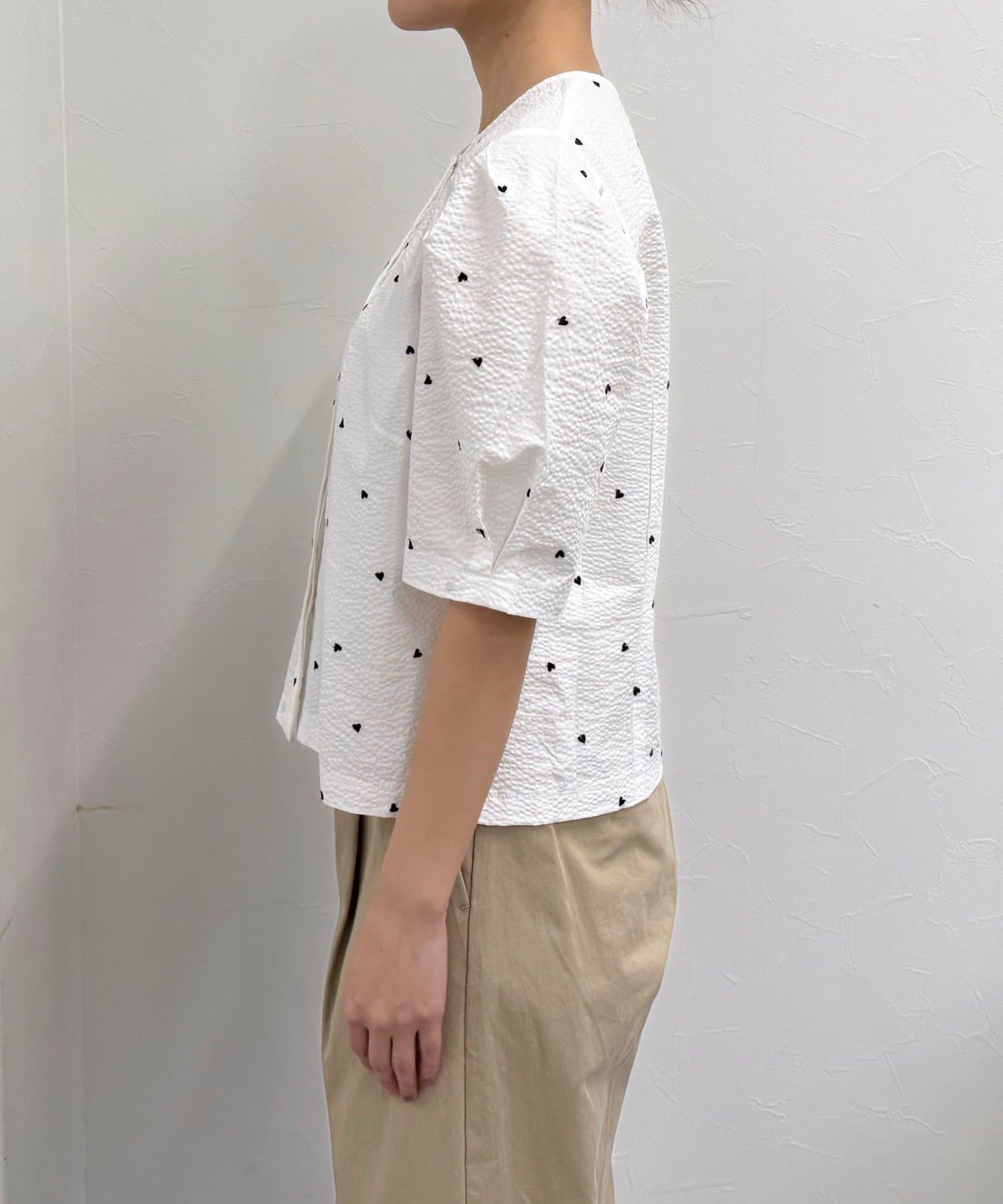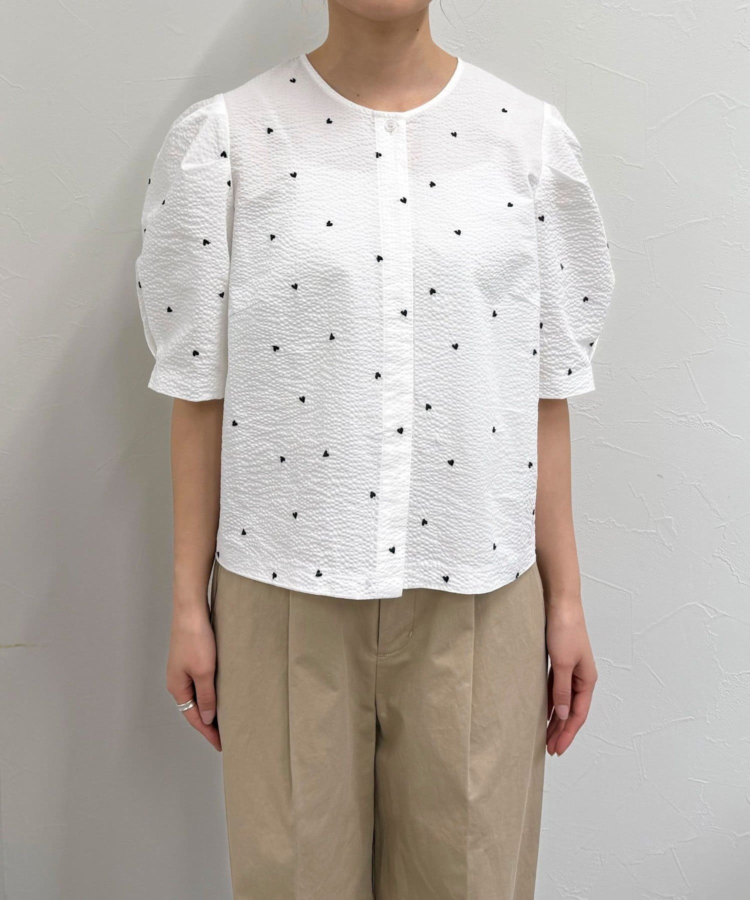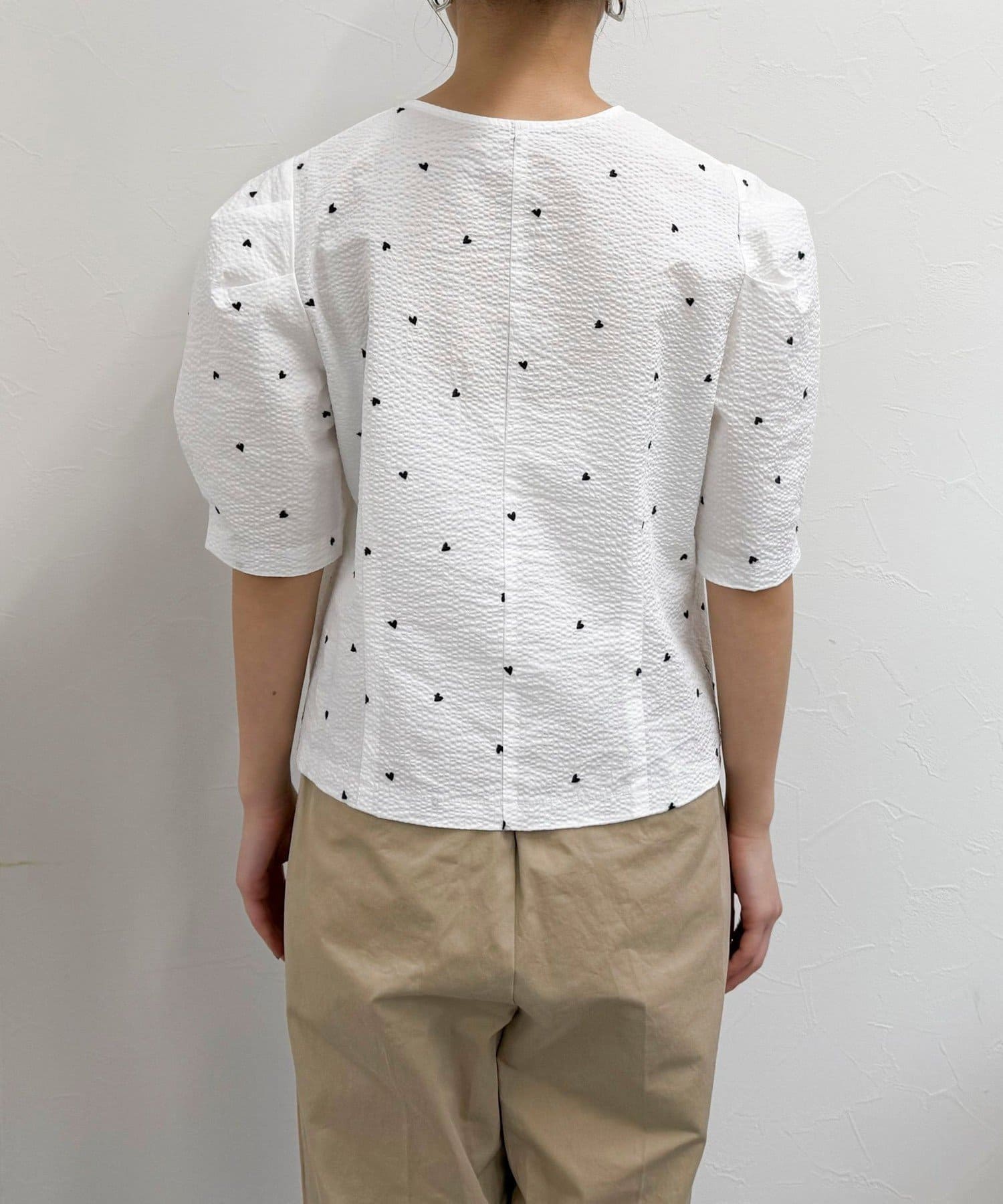 【WEB限定カラーあり】コットンリップルハート刺繍ブラウス