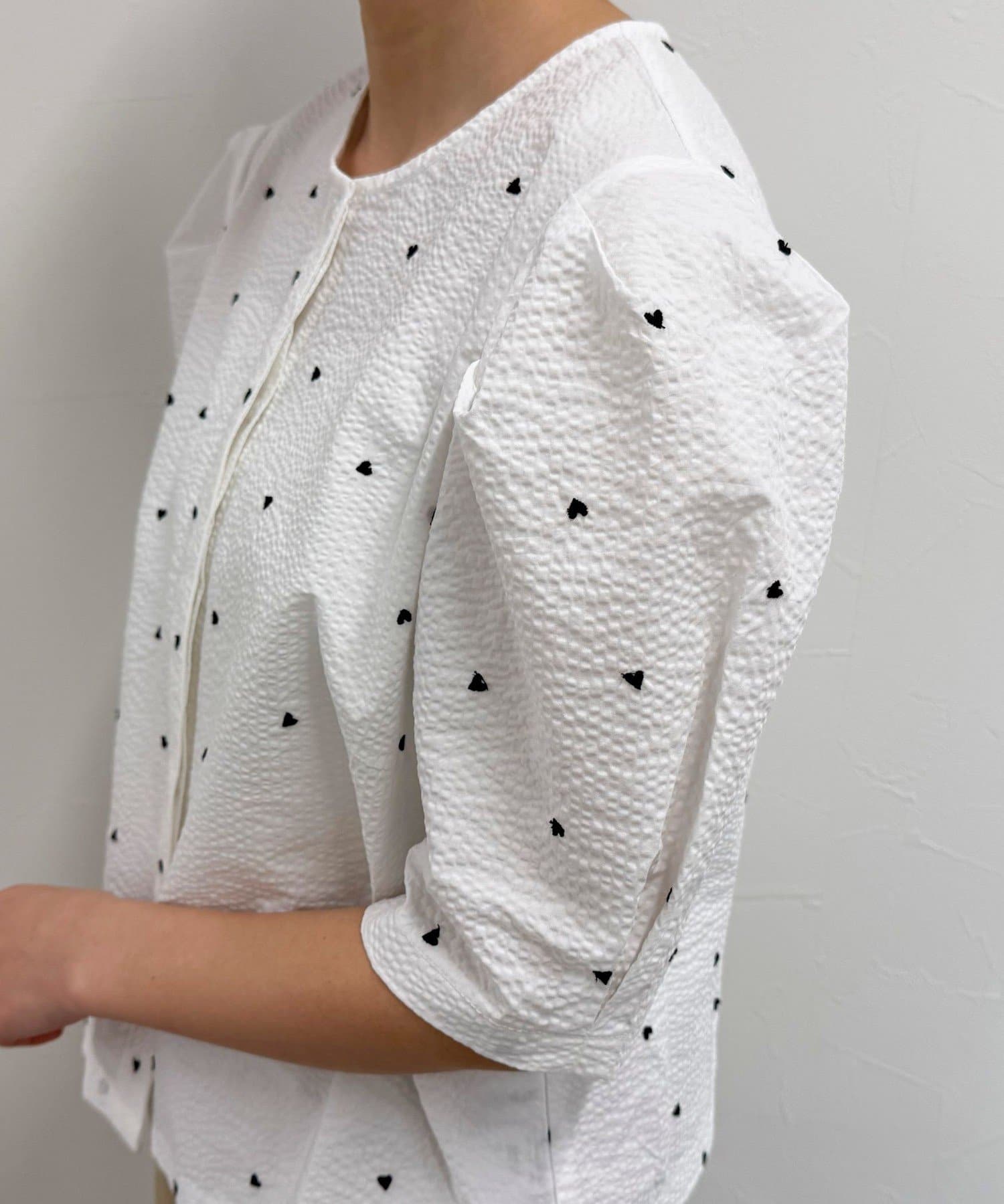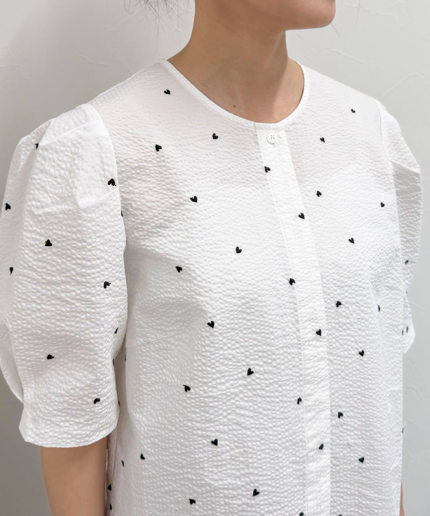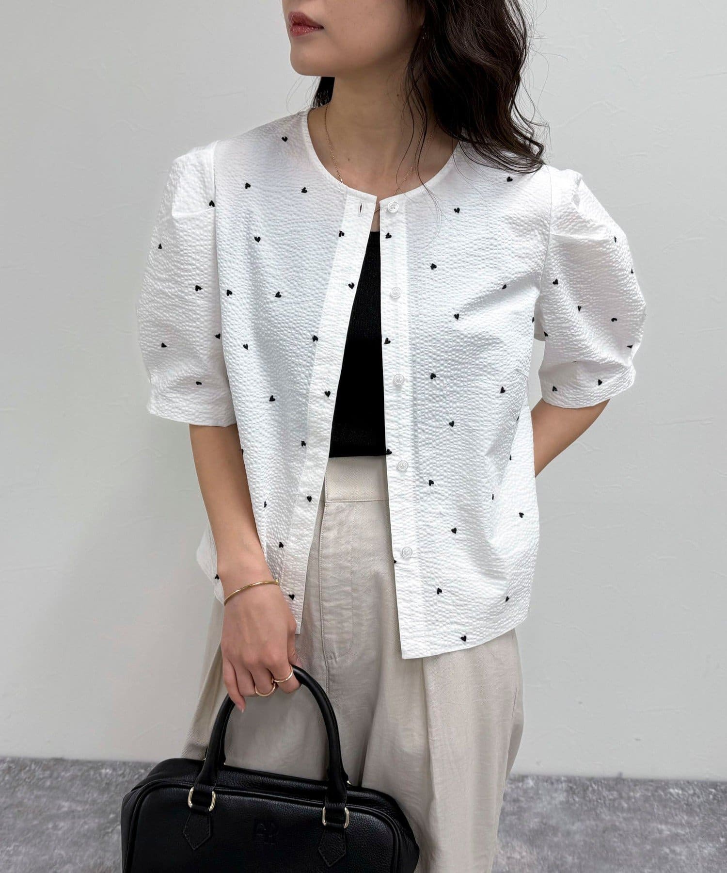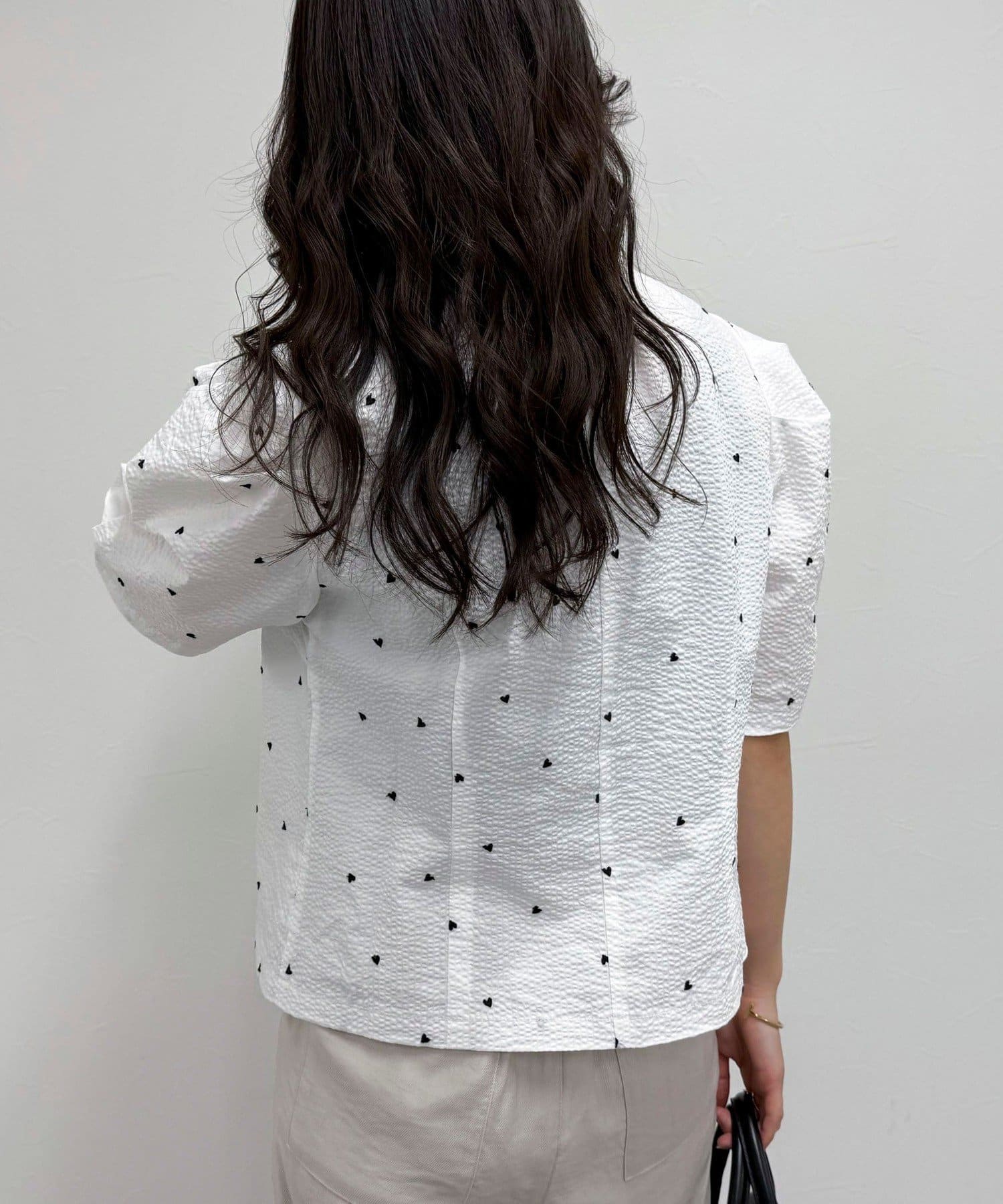 【WEB限定カラーあり】コットンリップルハート刺繍ブラウス