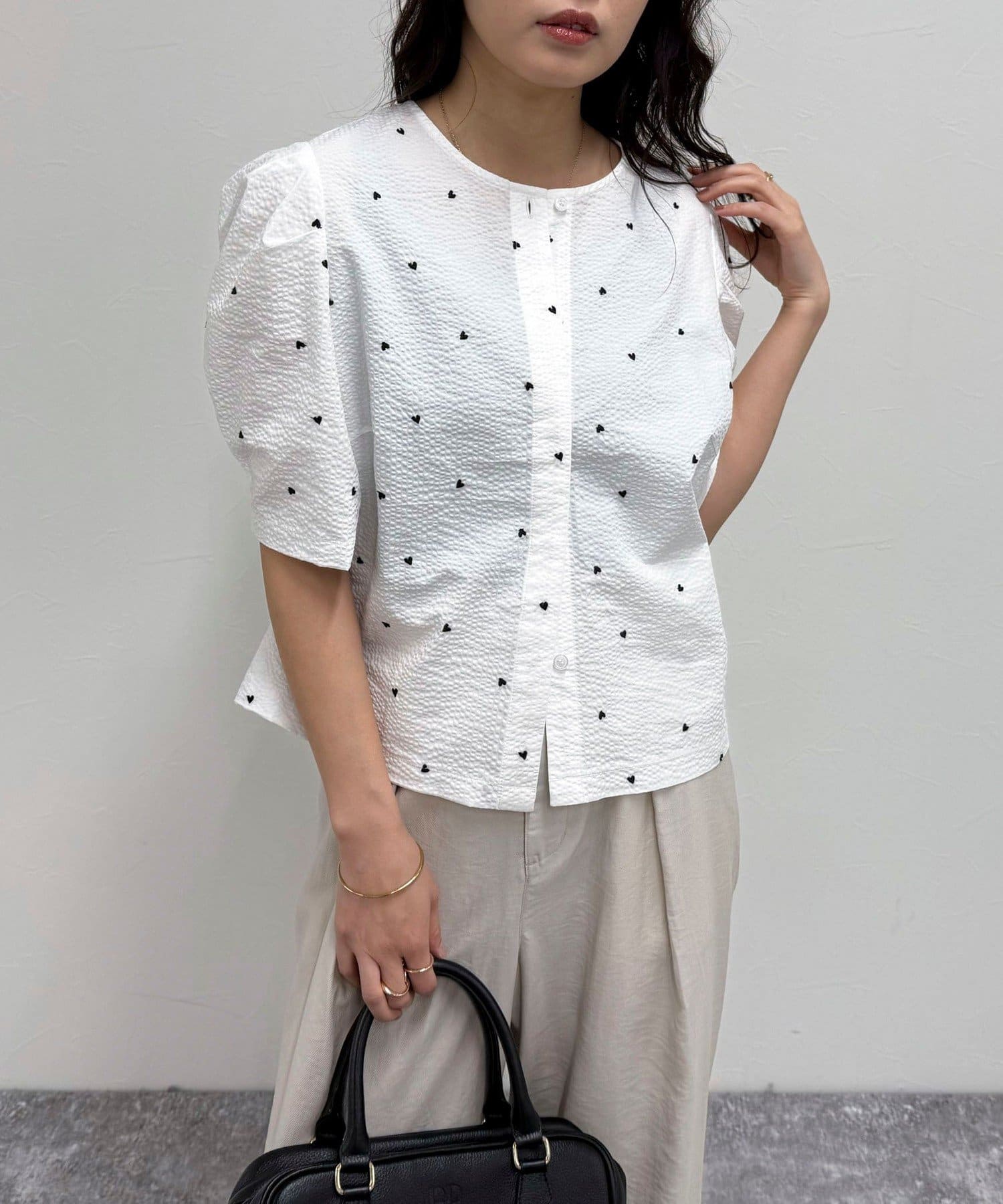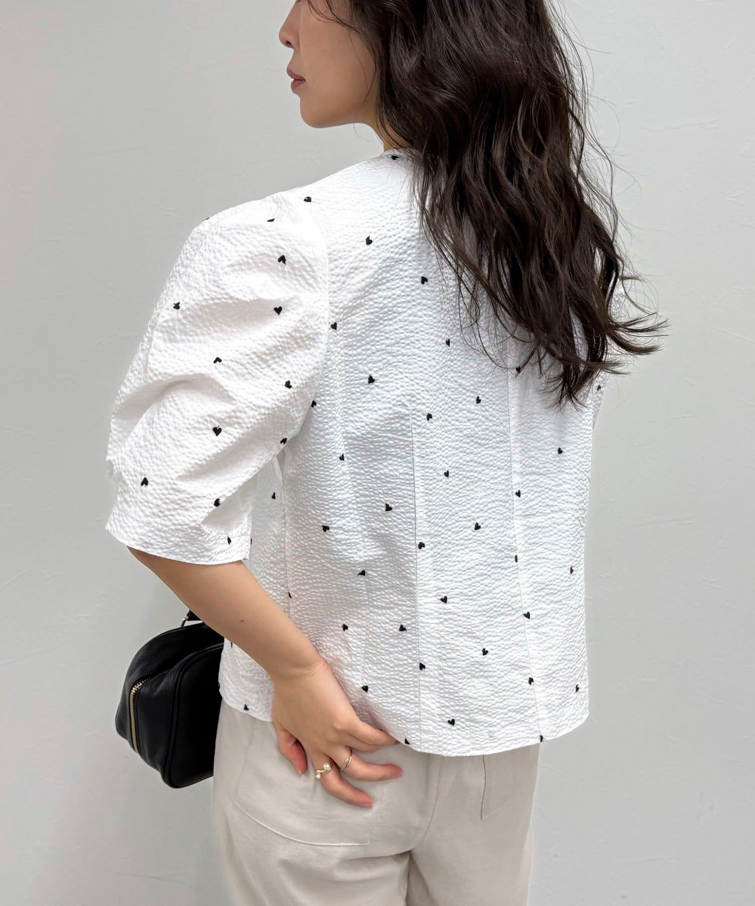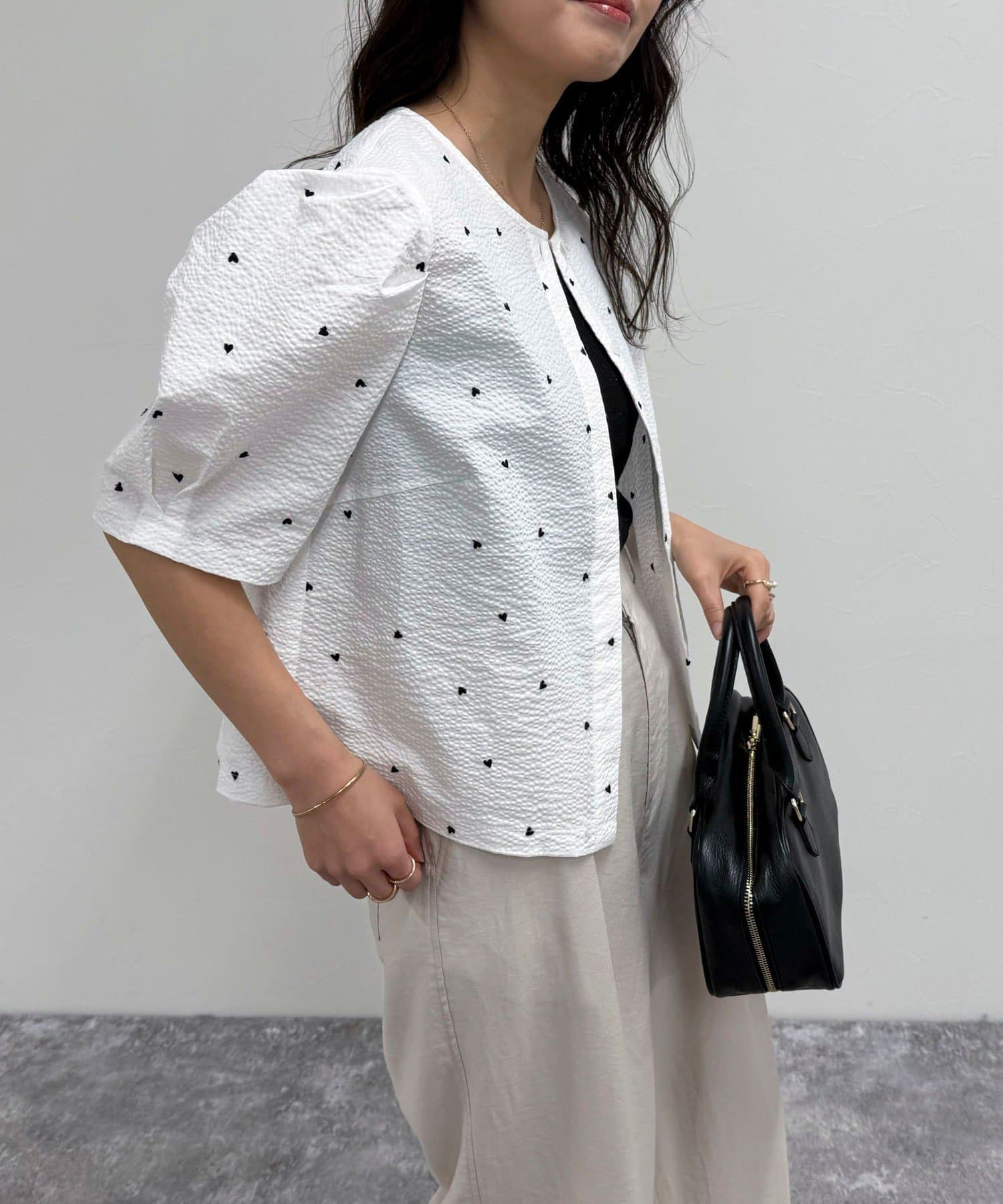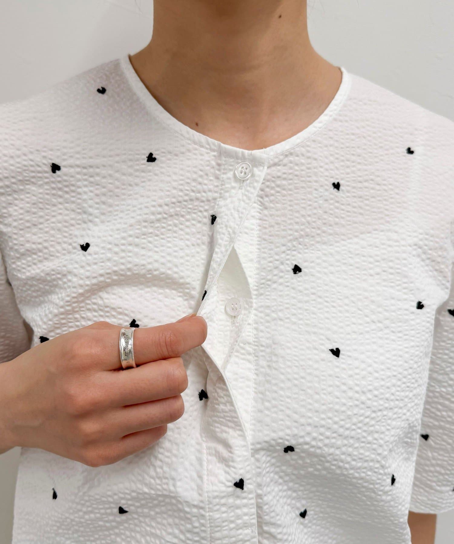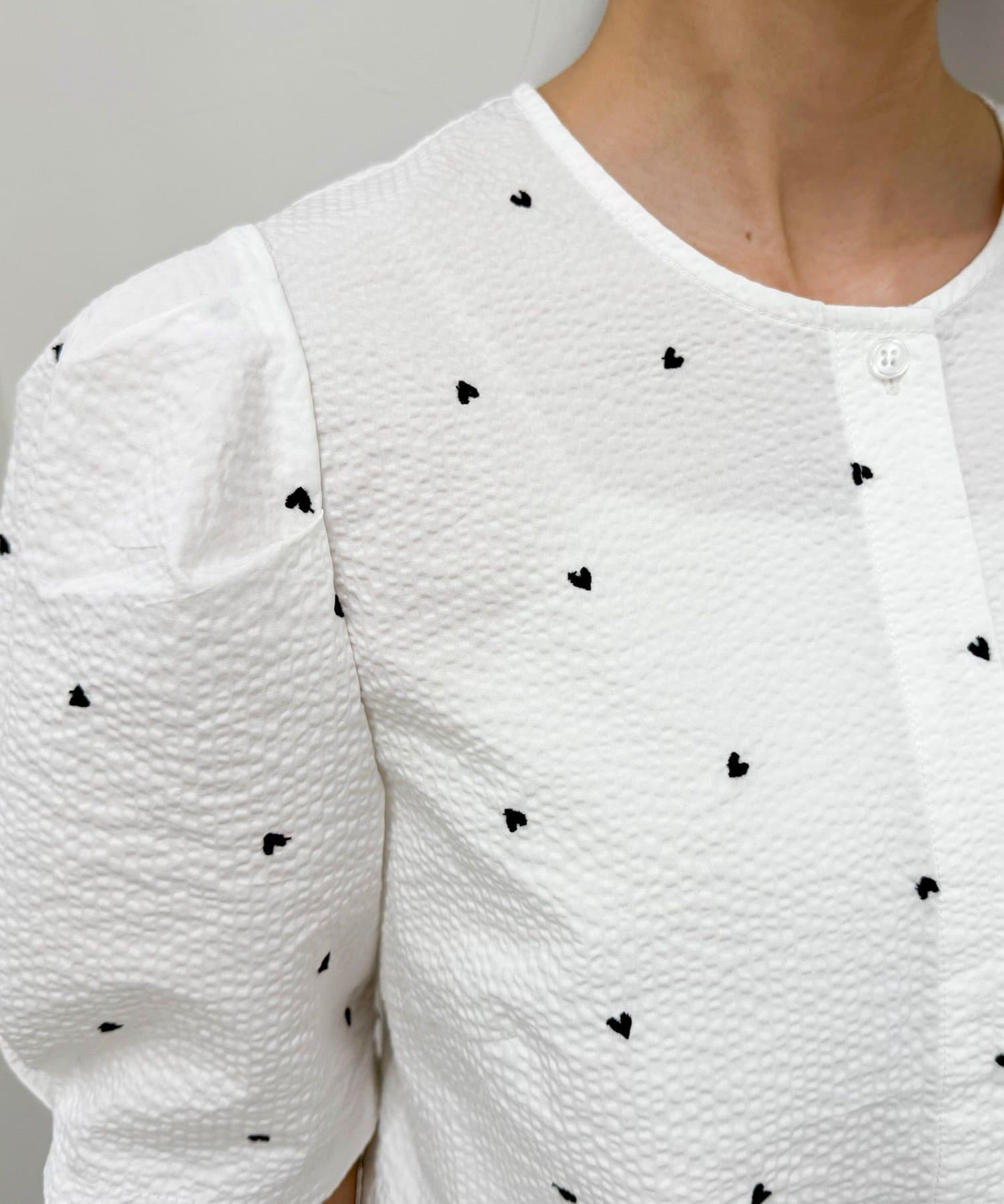 【WEB限定カラーあり】コットンリップルハート刺繍ブラウス
