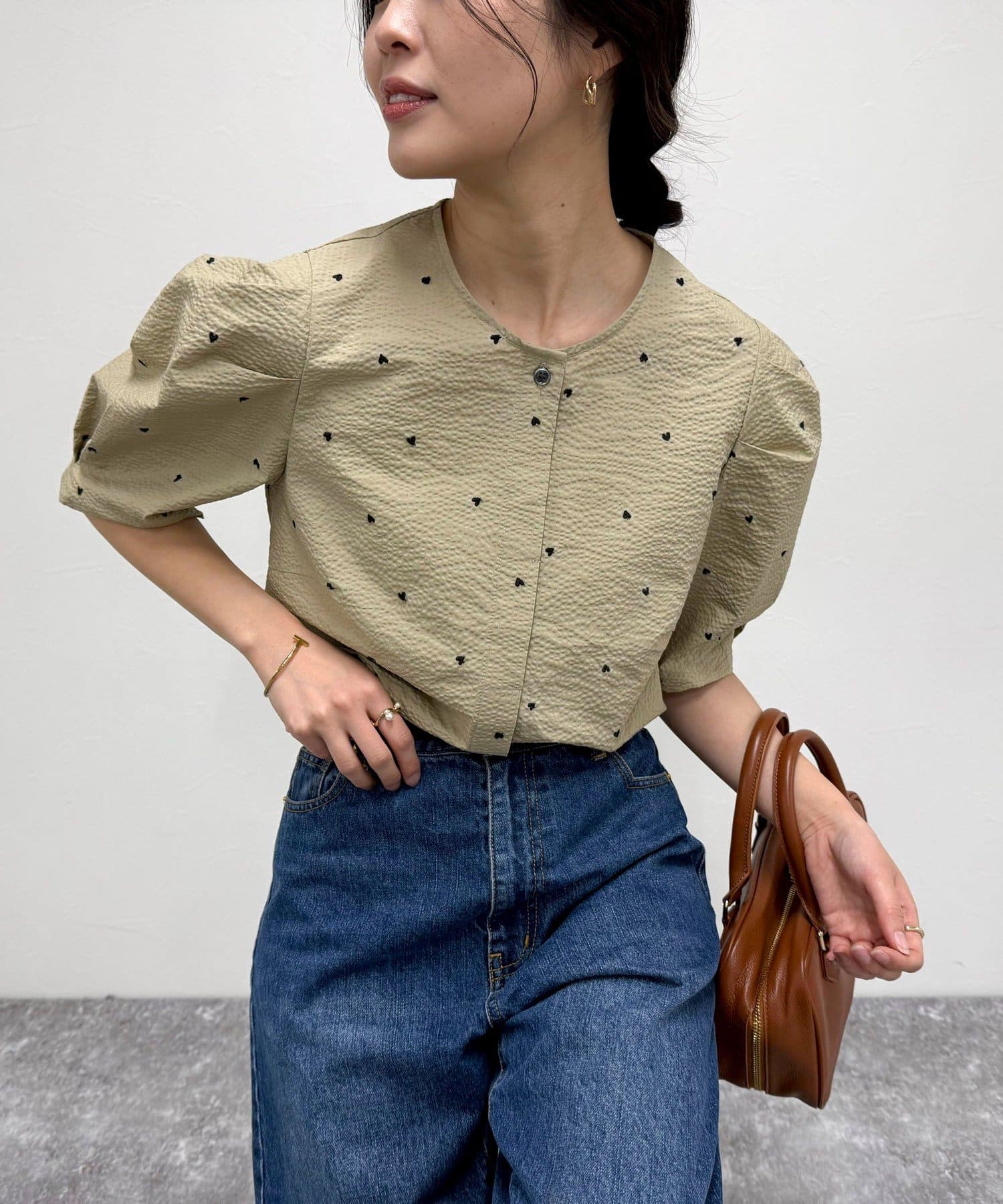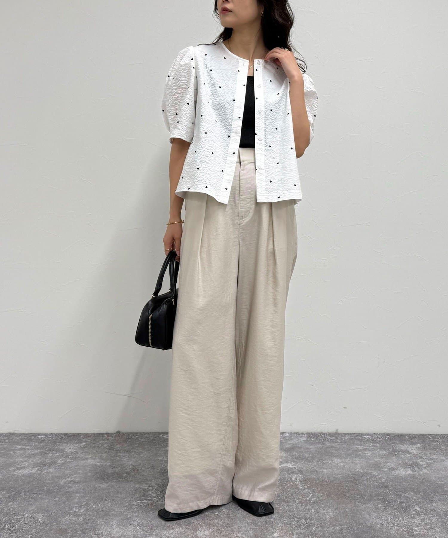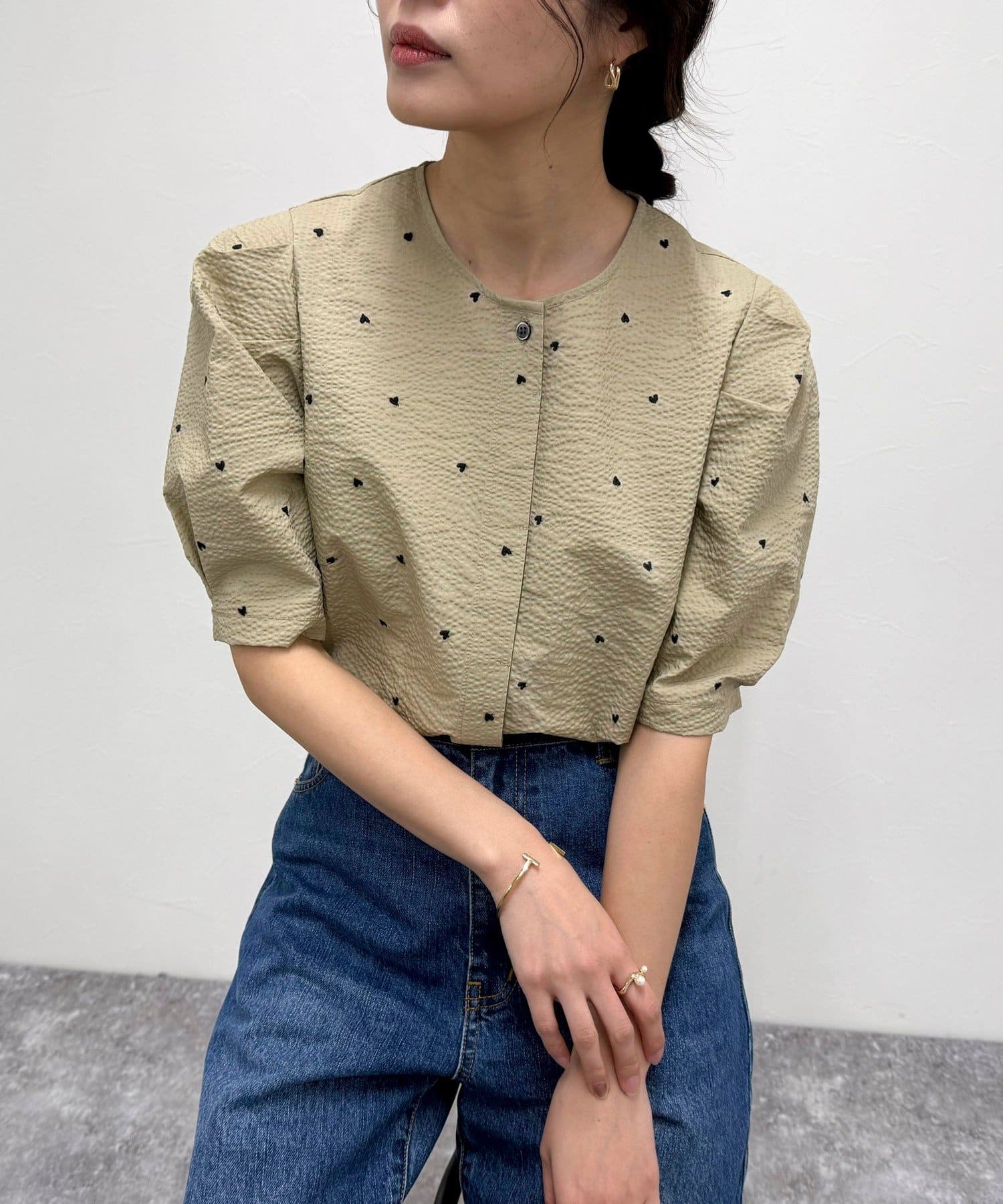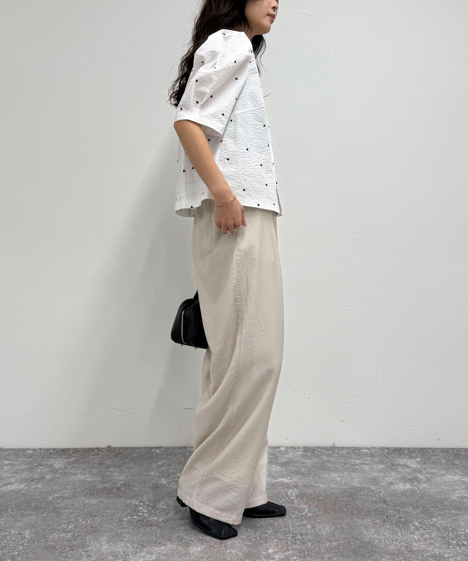 【WEB限定カラーあり】コットンリップルハート刺繍ブラウス