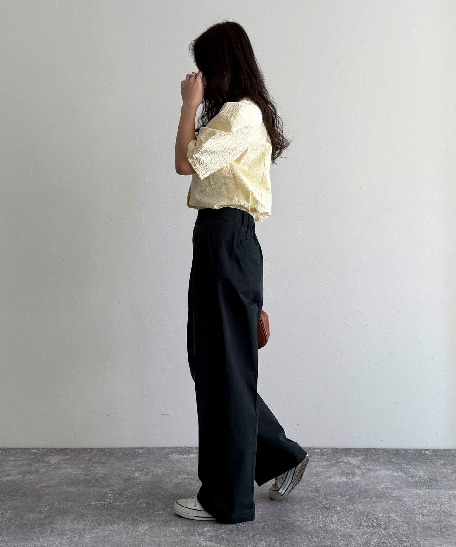 ・やや短めの丈感でパンツでもスカートでも合わせやすく幅広いテイストのコーデに合わせていただけます