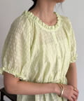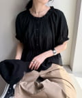・ふんわりとした袖やキュッとウエストを絞ったデザインが女性らしい1枚