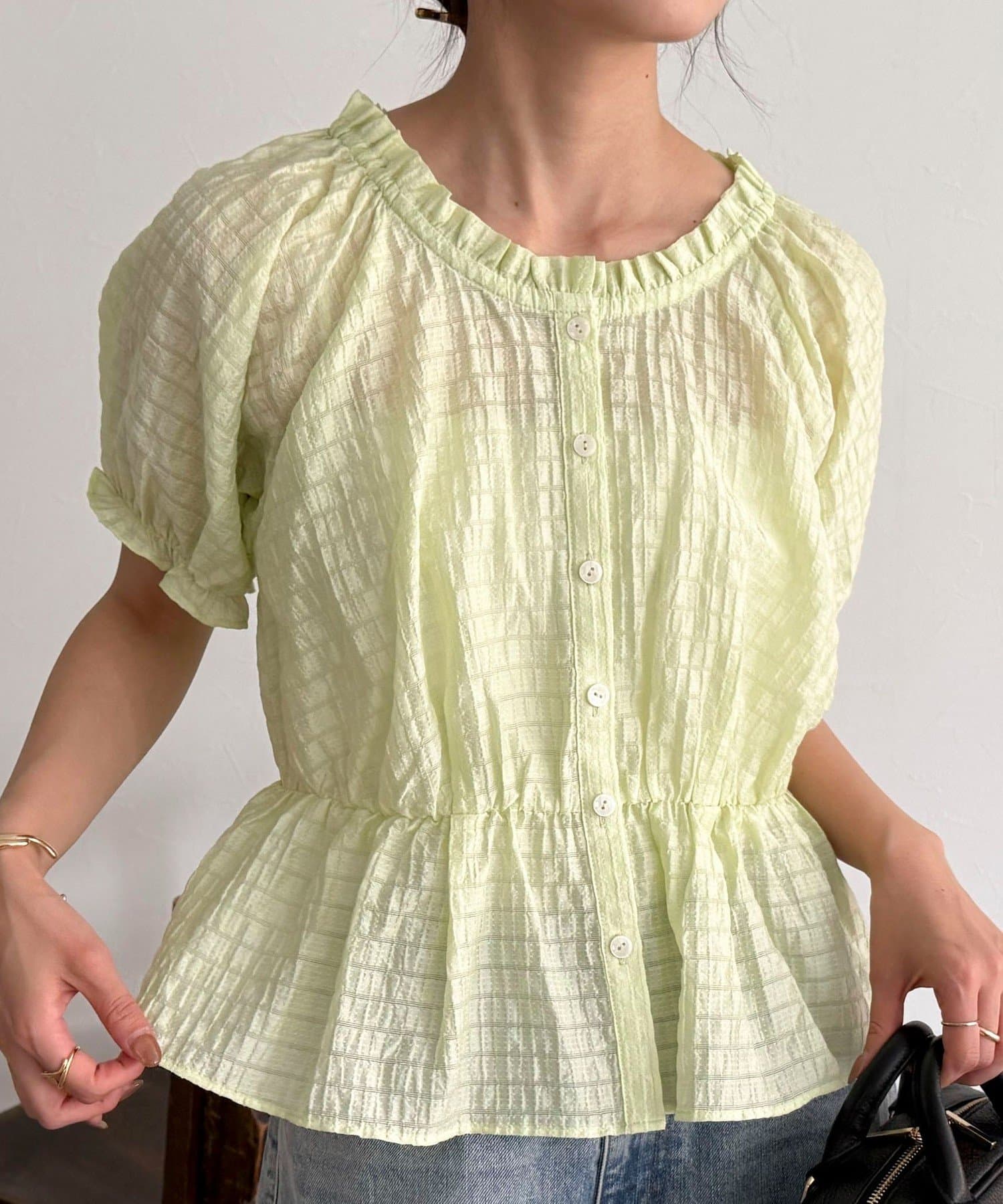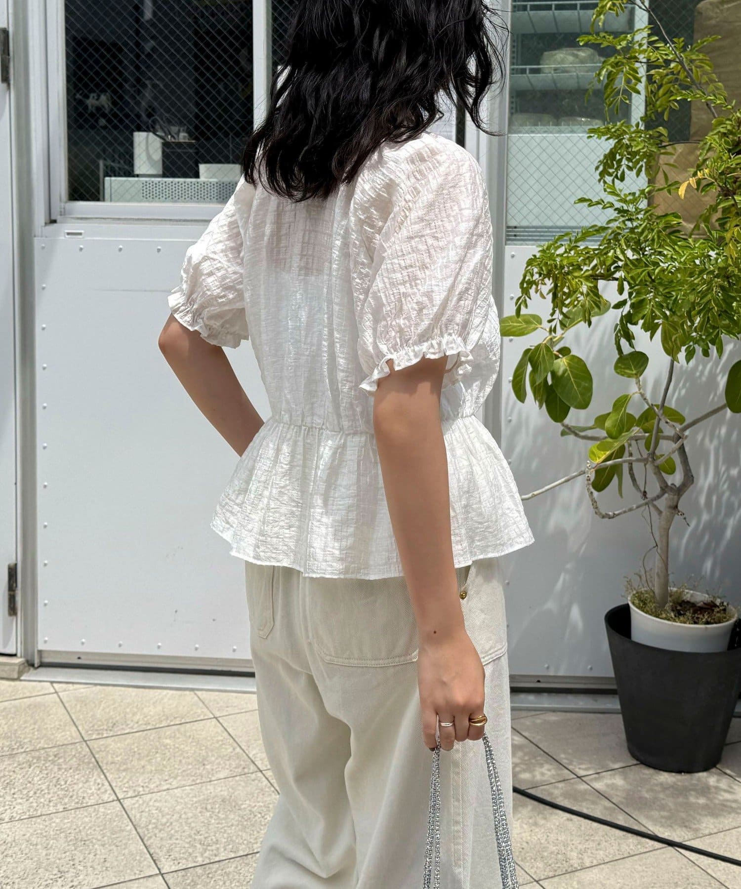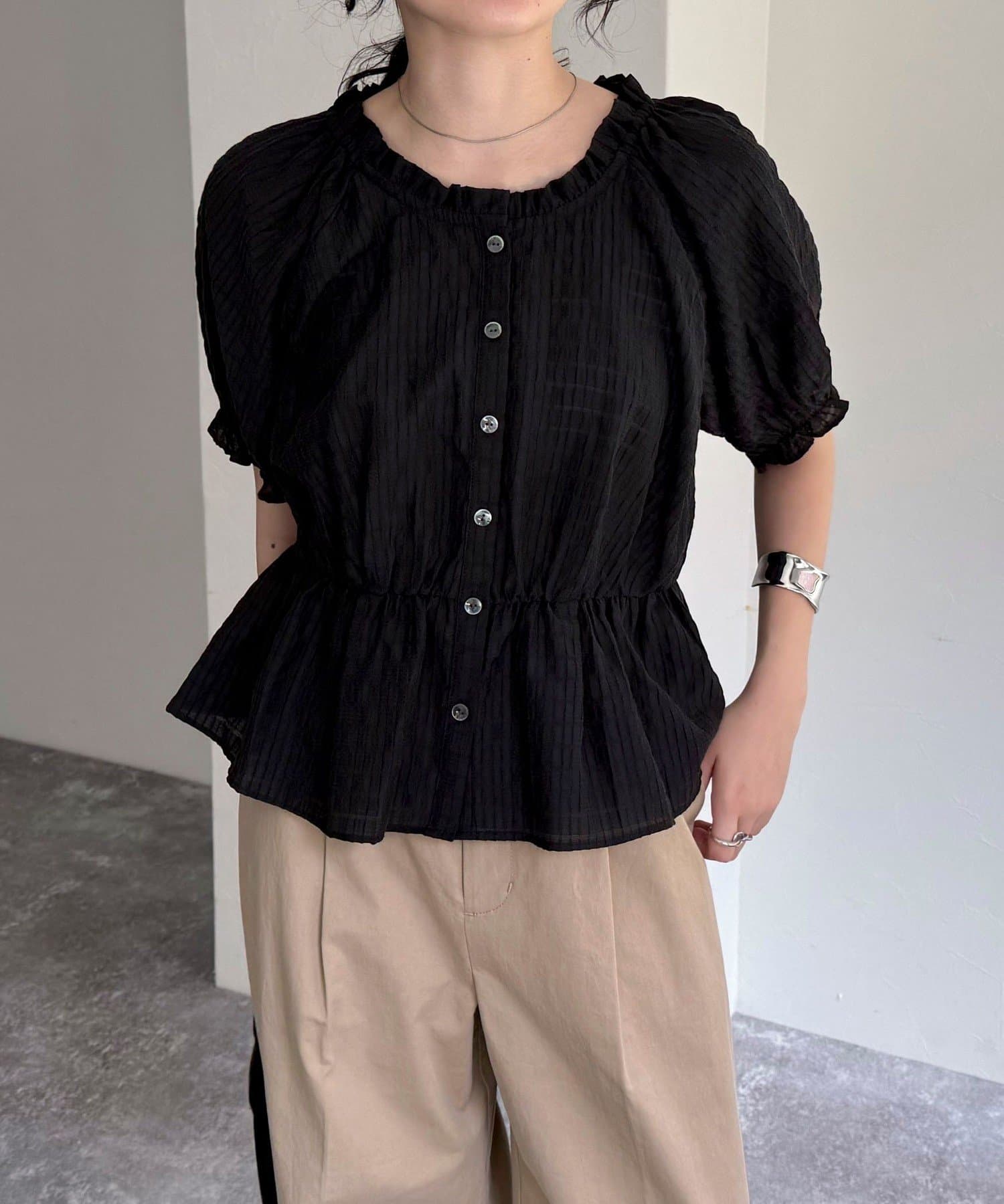 クロップドペプラムブラウス