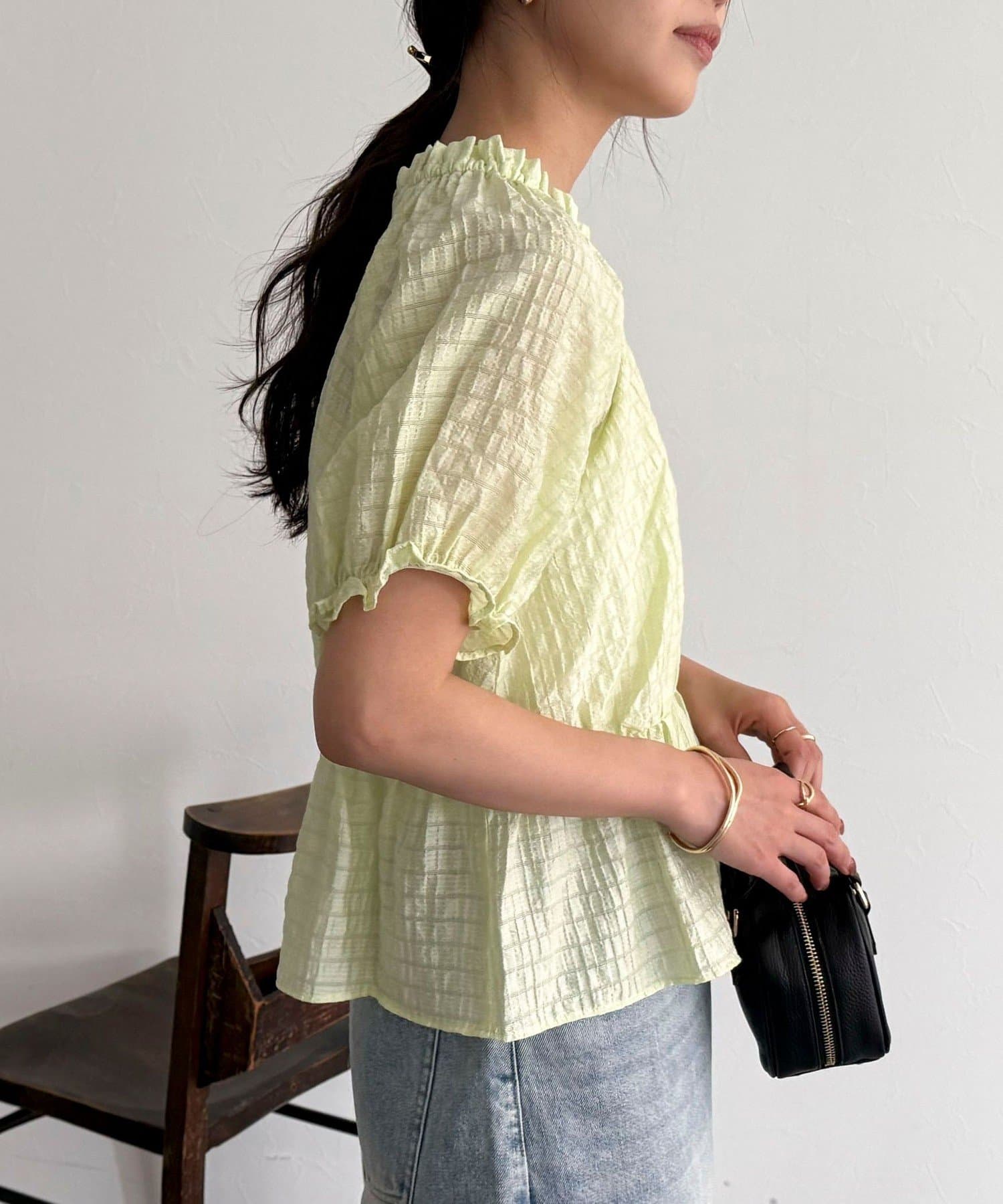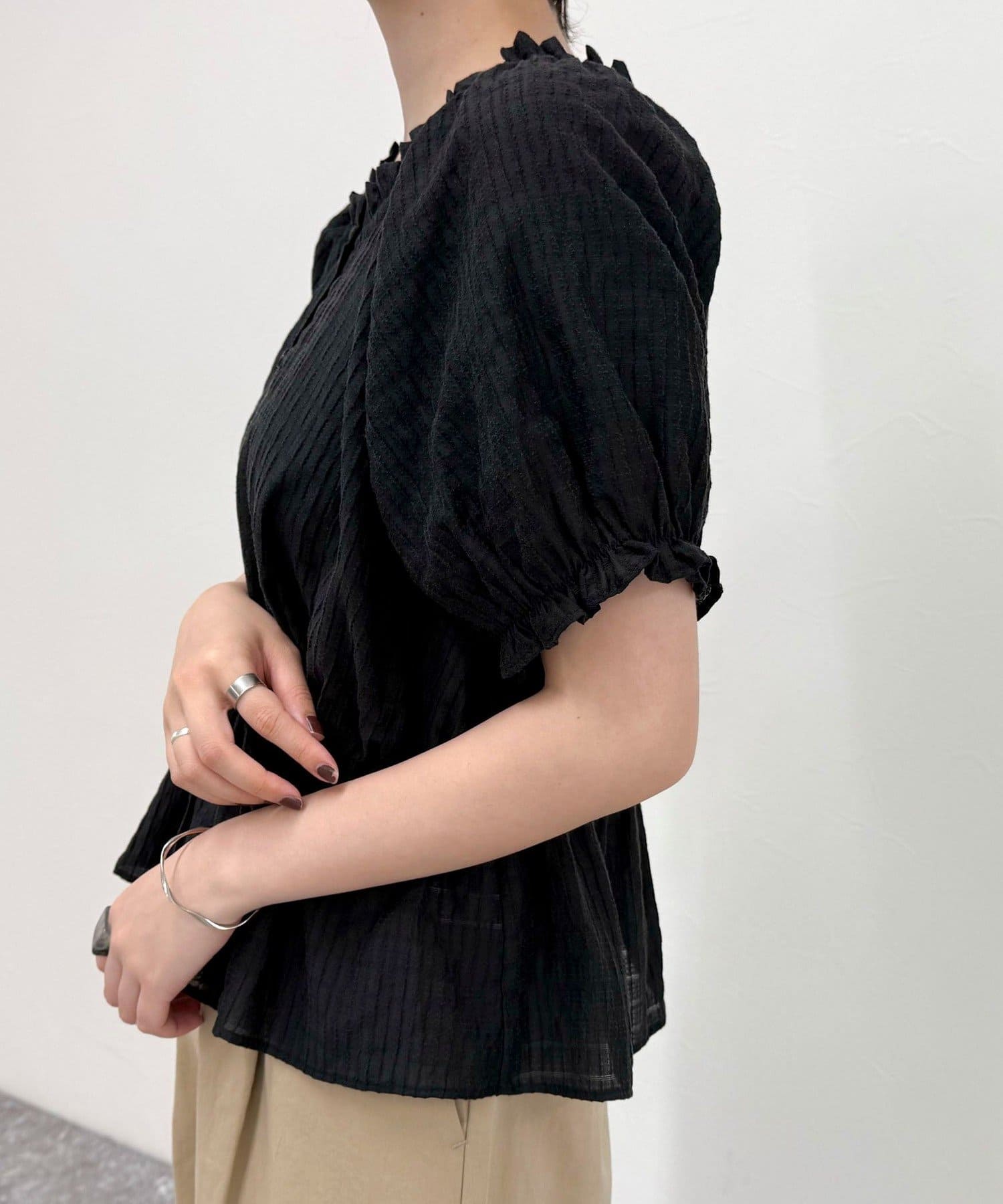・シアー感のある薄手の素材で夏でも涼しく着用していただけます