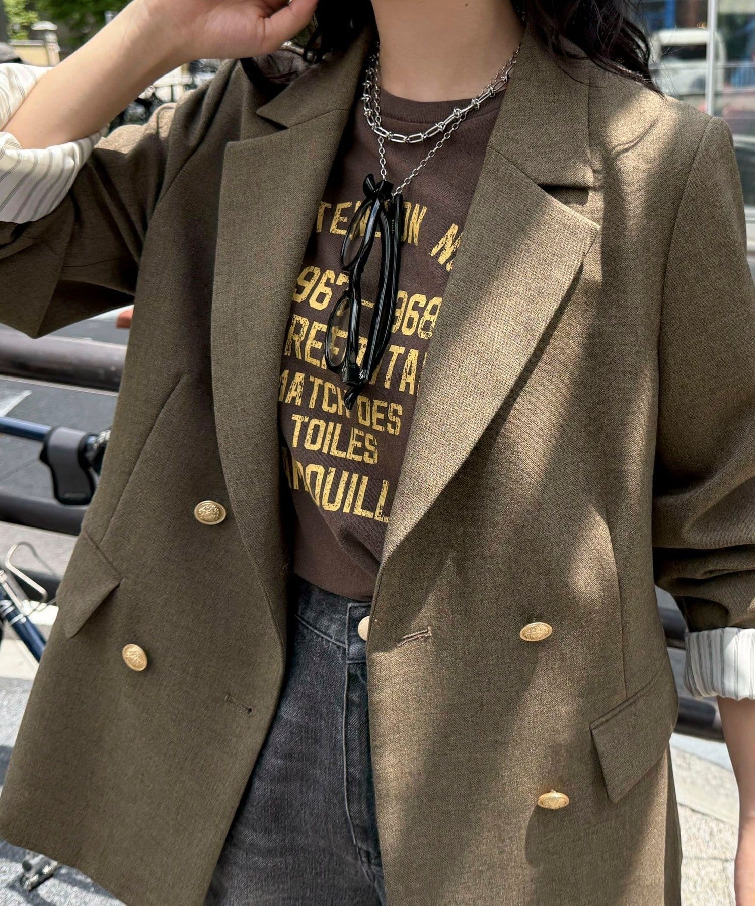・高見えするボタンがアクセントになり、王道トラッドな印象に
