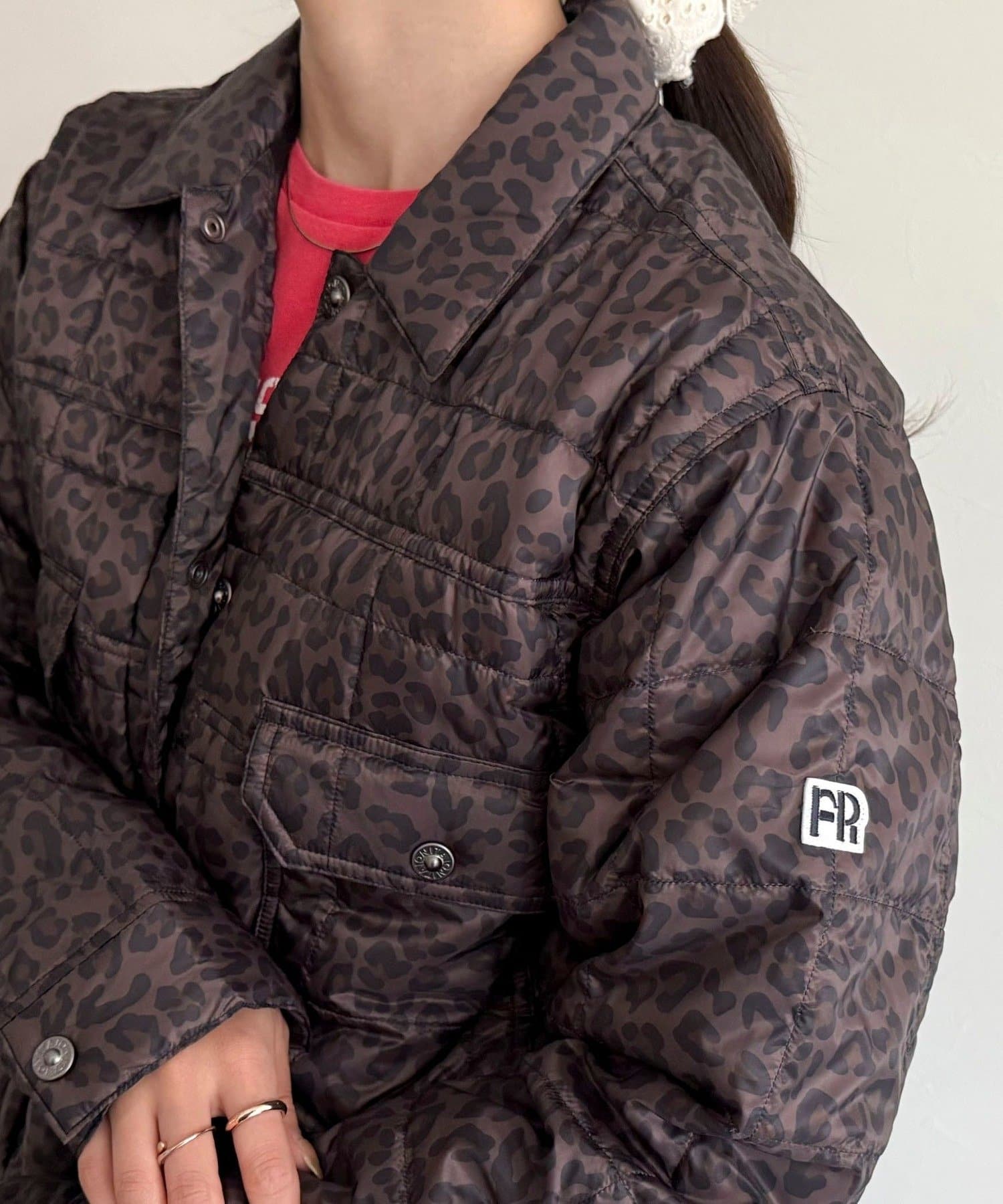 ・左腕にはFREDY限定のFRワッペン付き。レオパード柄も特別に別注した、こだわりのアイテムです。