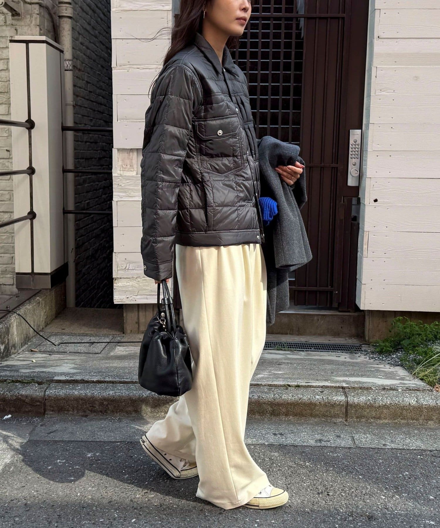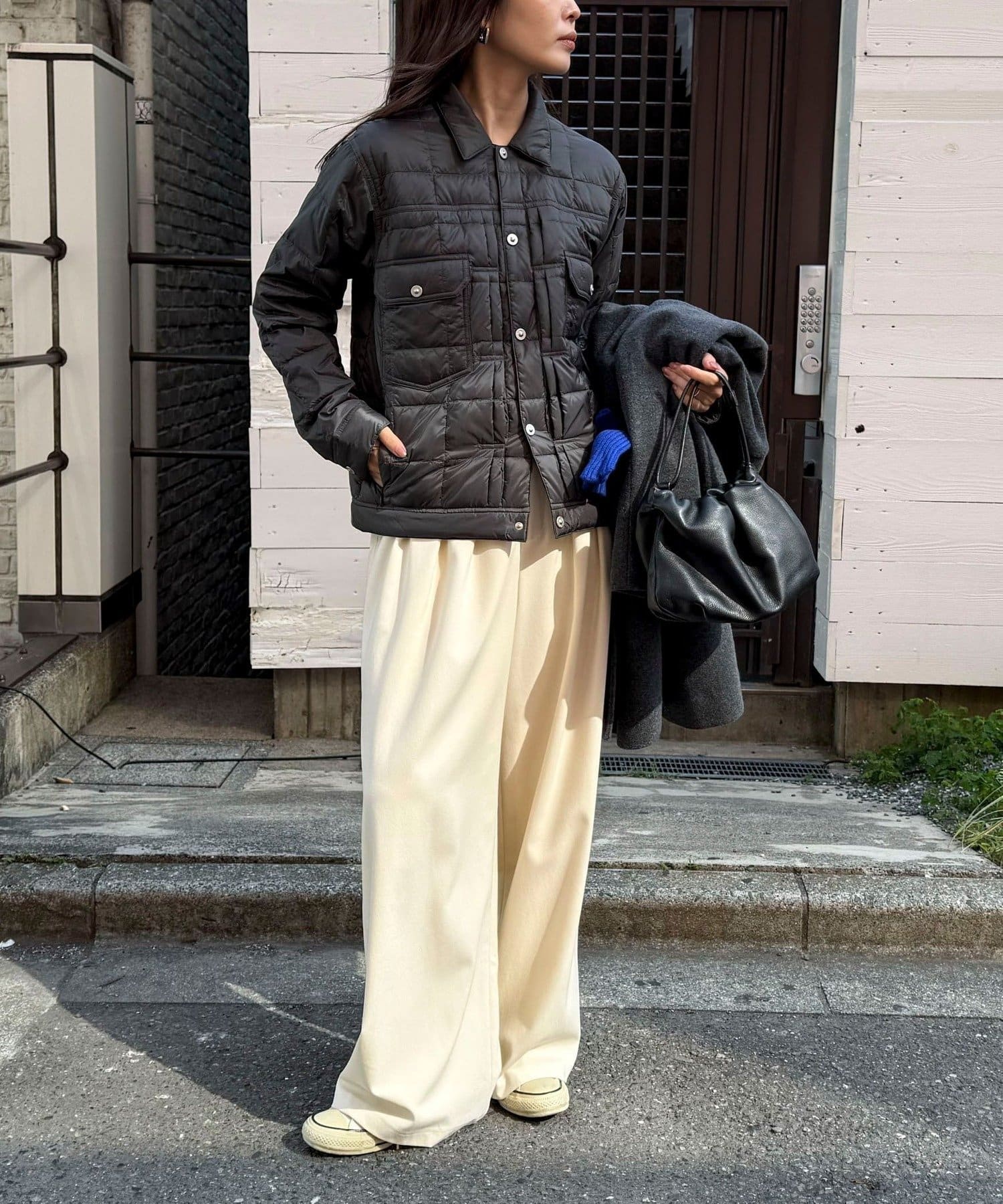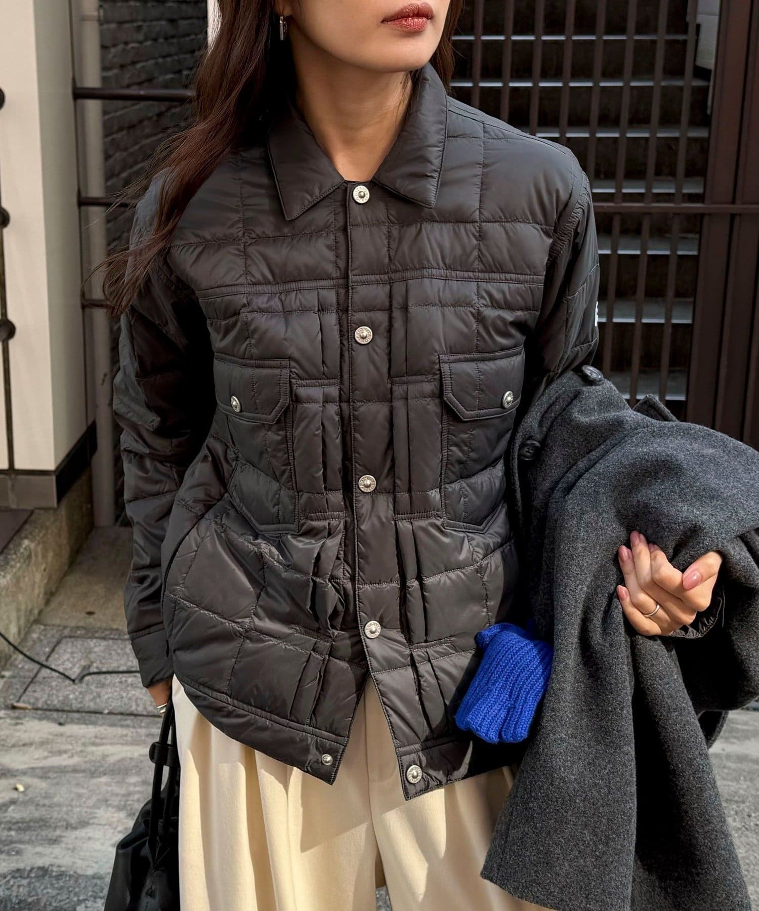 ・着脱がラクなスナップボタン仕様で、さっと羽織れるのも嬉しいポイント◎